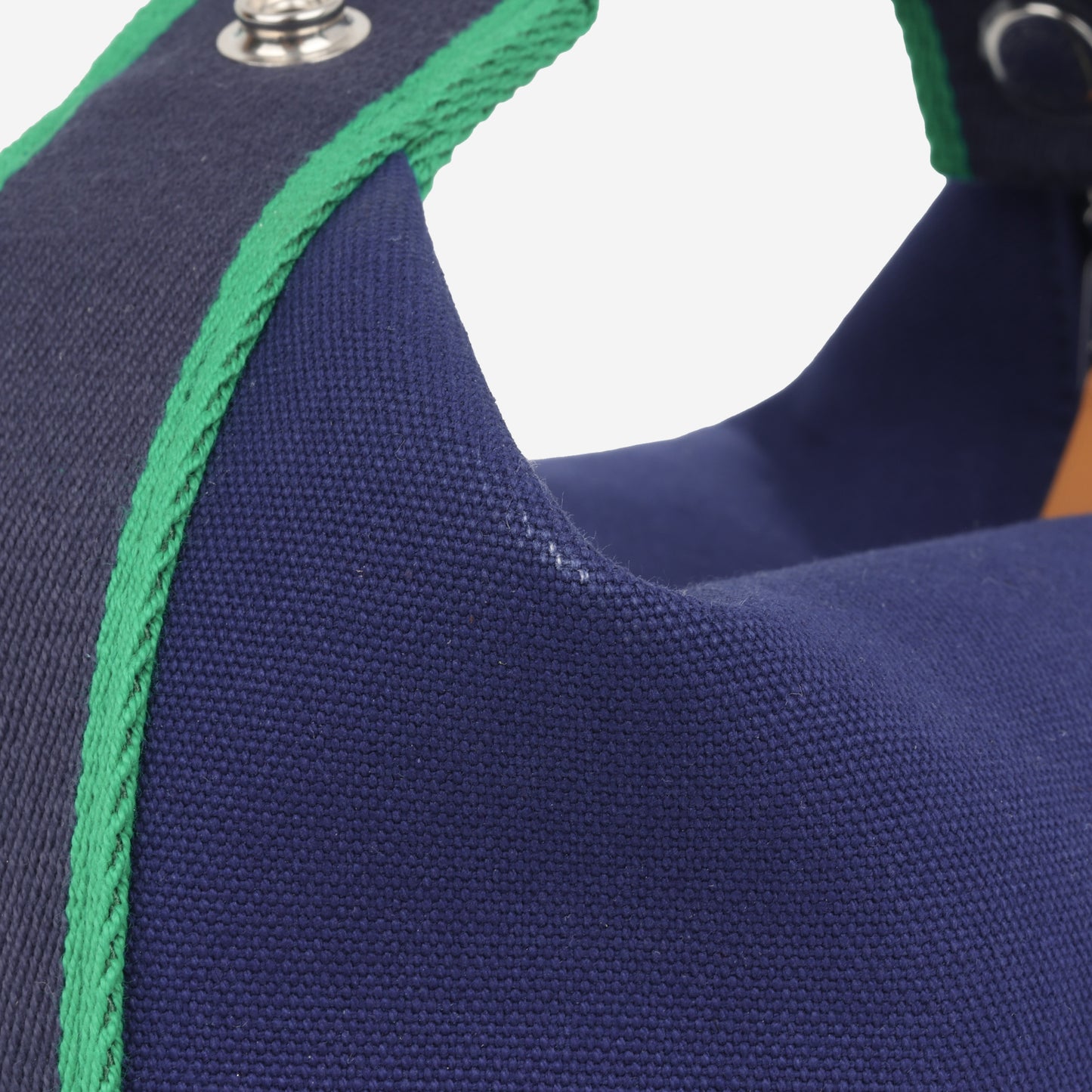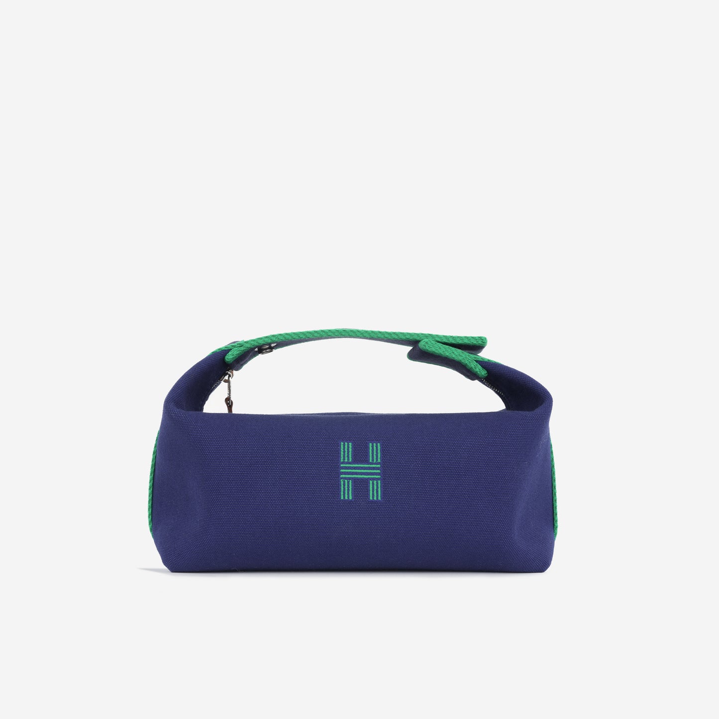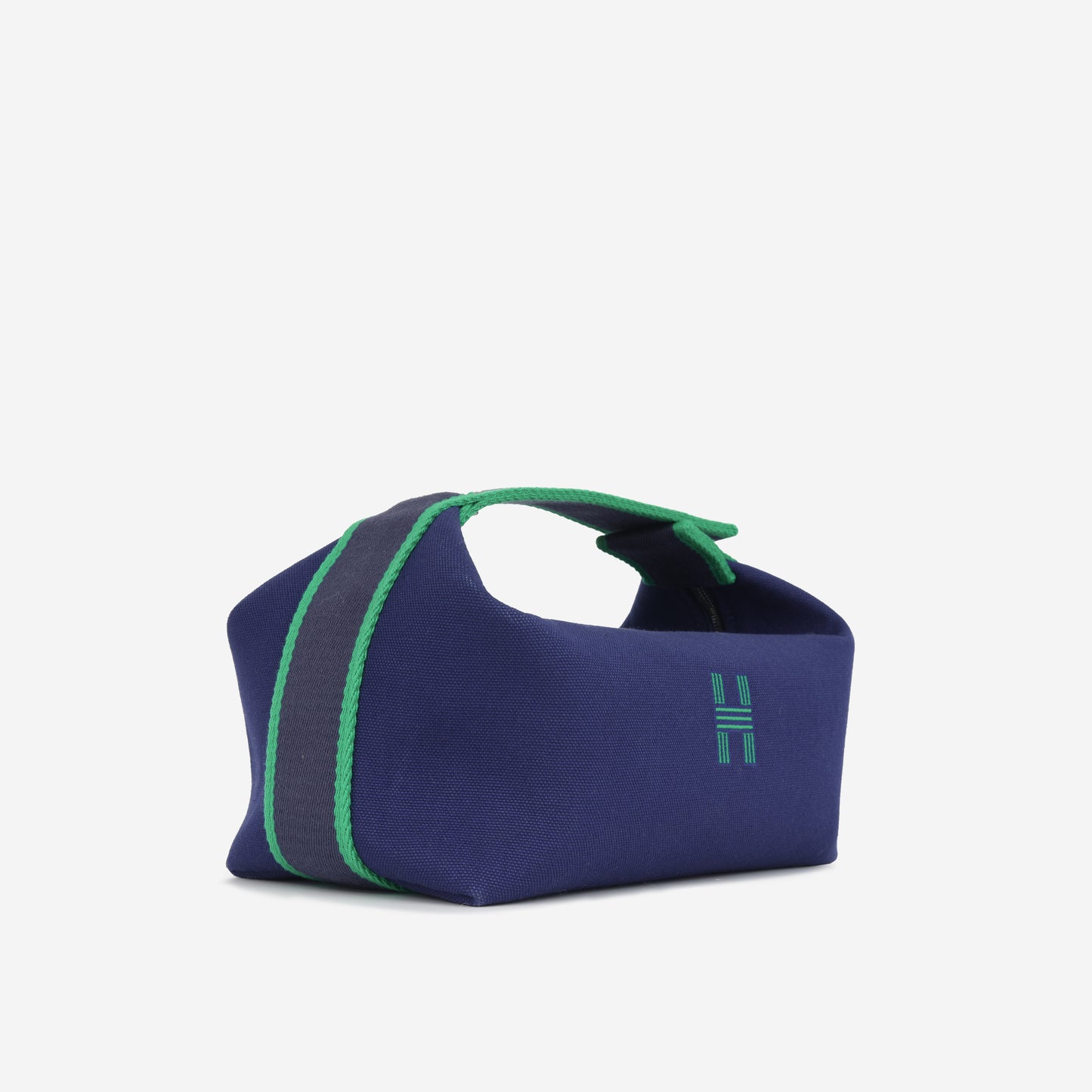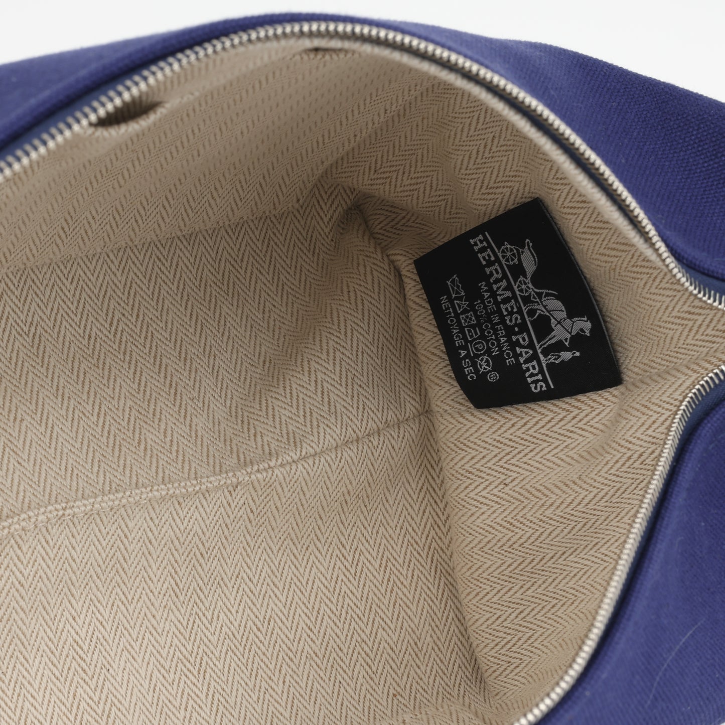 The must-have travel case from Hermès, constructed from lightweight canvas with functional hanging handle that can be closed in several ways. Available in two sizes: small and large.