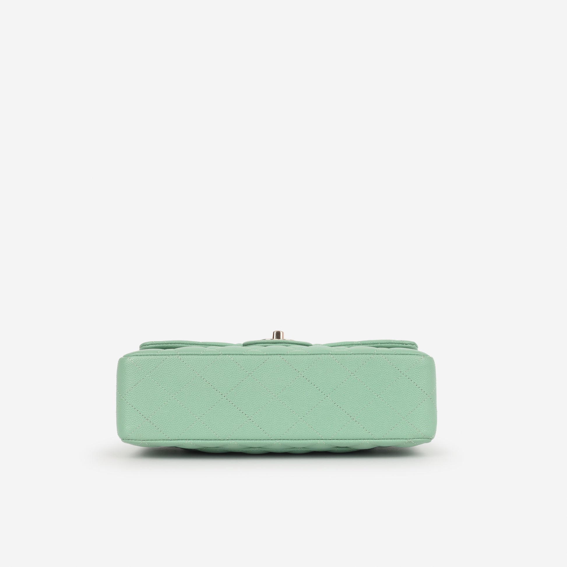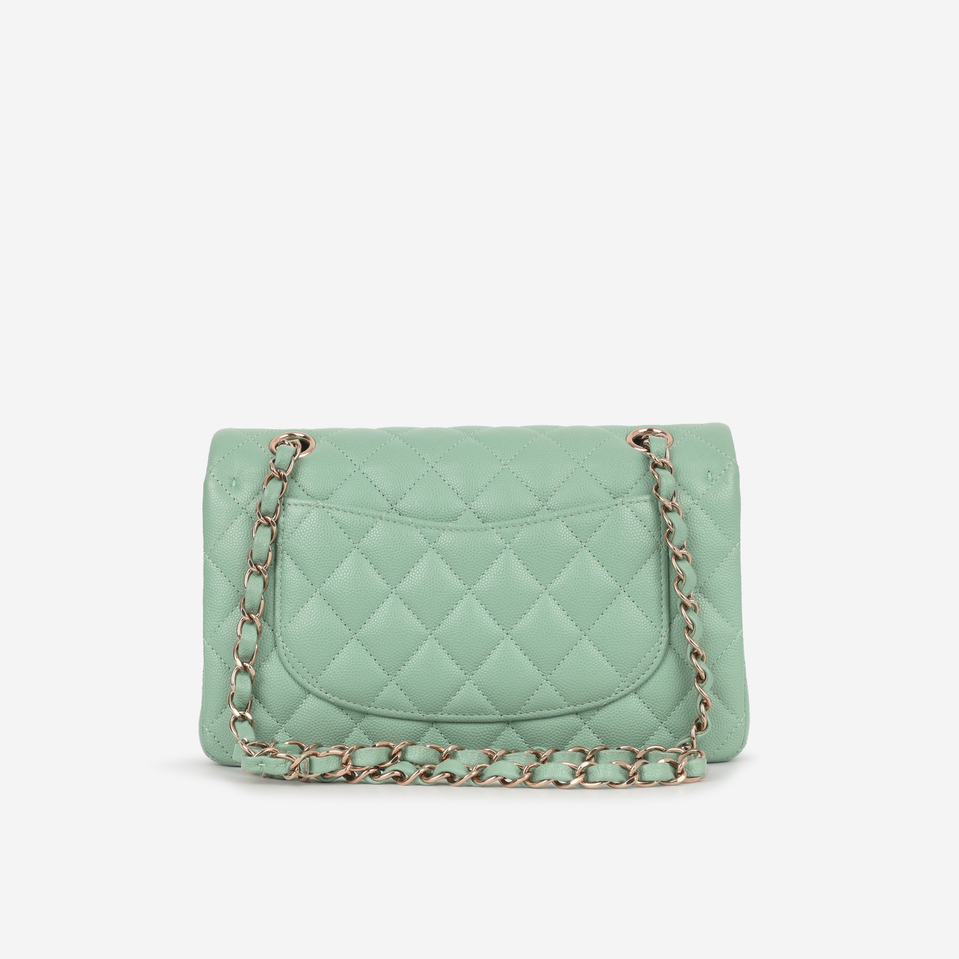 Make a fresh style statement with the Chanel Small Classic Flap in Mint Green Caviar leather, beautifully accented with Champagne Gold hardware. This timeless design features the iconic diamond quilting and CC turn-lock, offering a perfect blend of elegance and modern charm in a unique pastel hue. Available exclusively at Bagista, London’s most trusted reseller.
