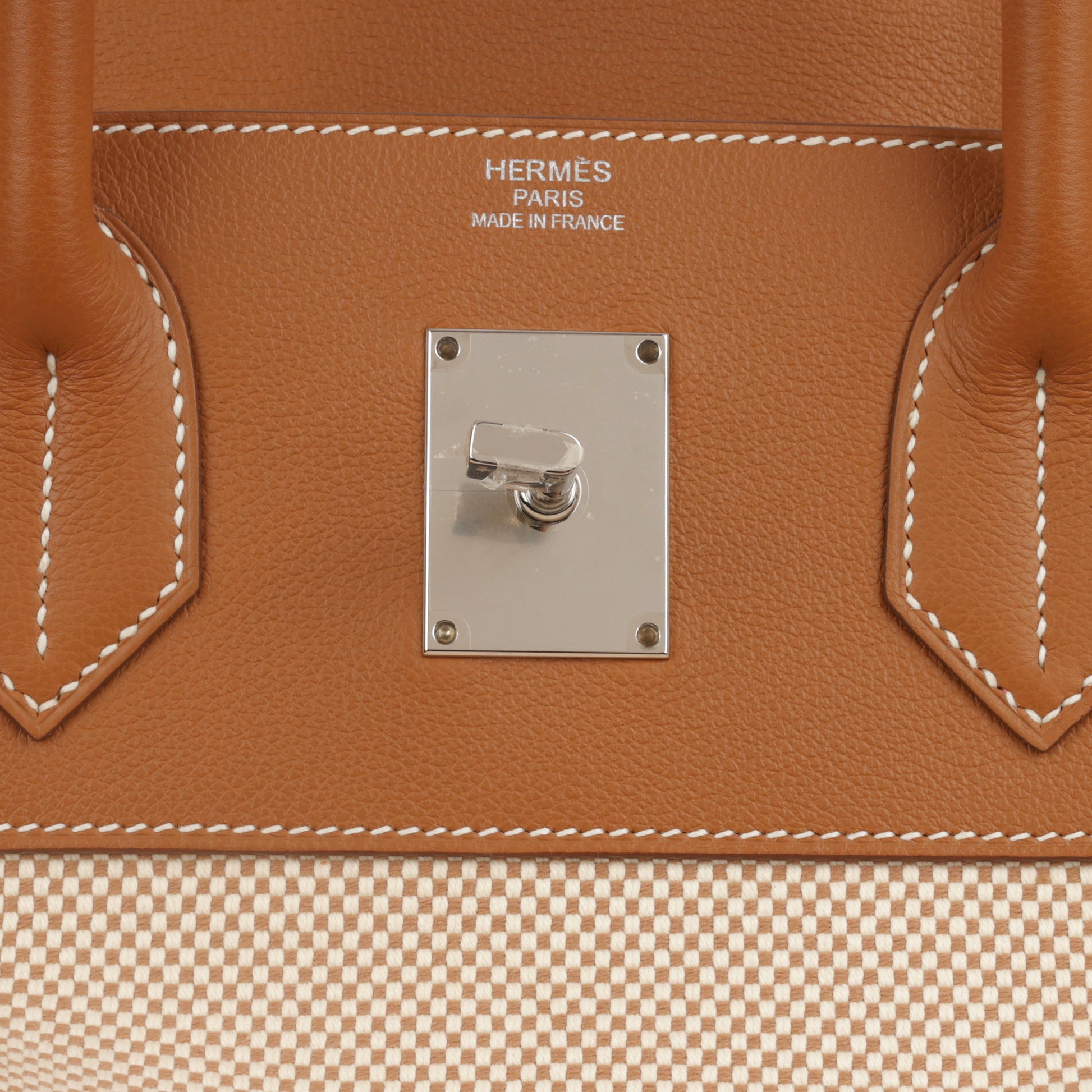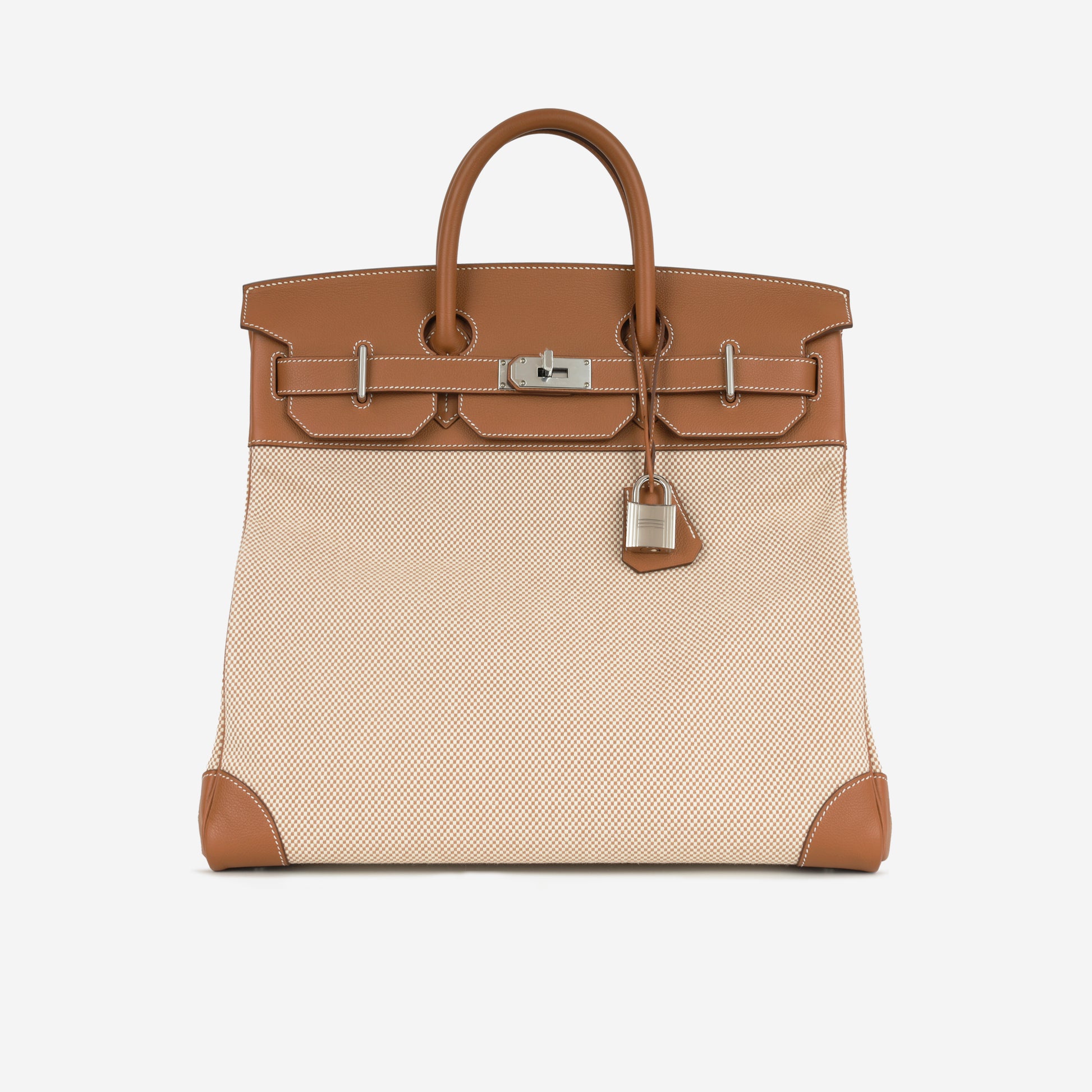 Hermès HAC 40 - Gold Evercolor / Gold-Ecru Toile | Palladium Hardware