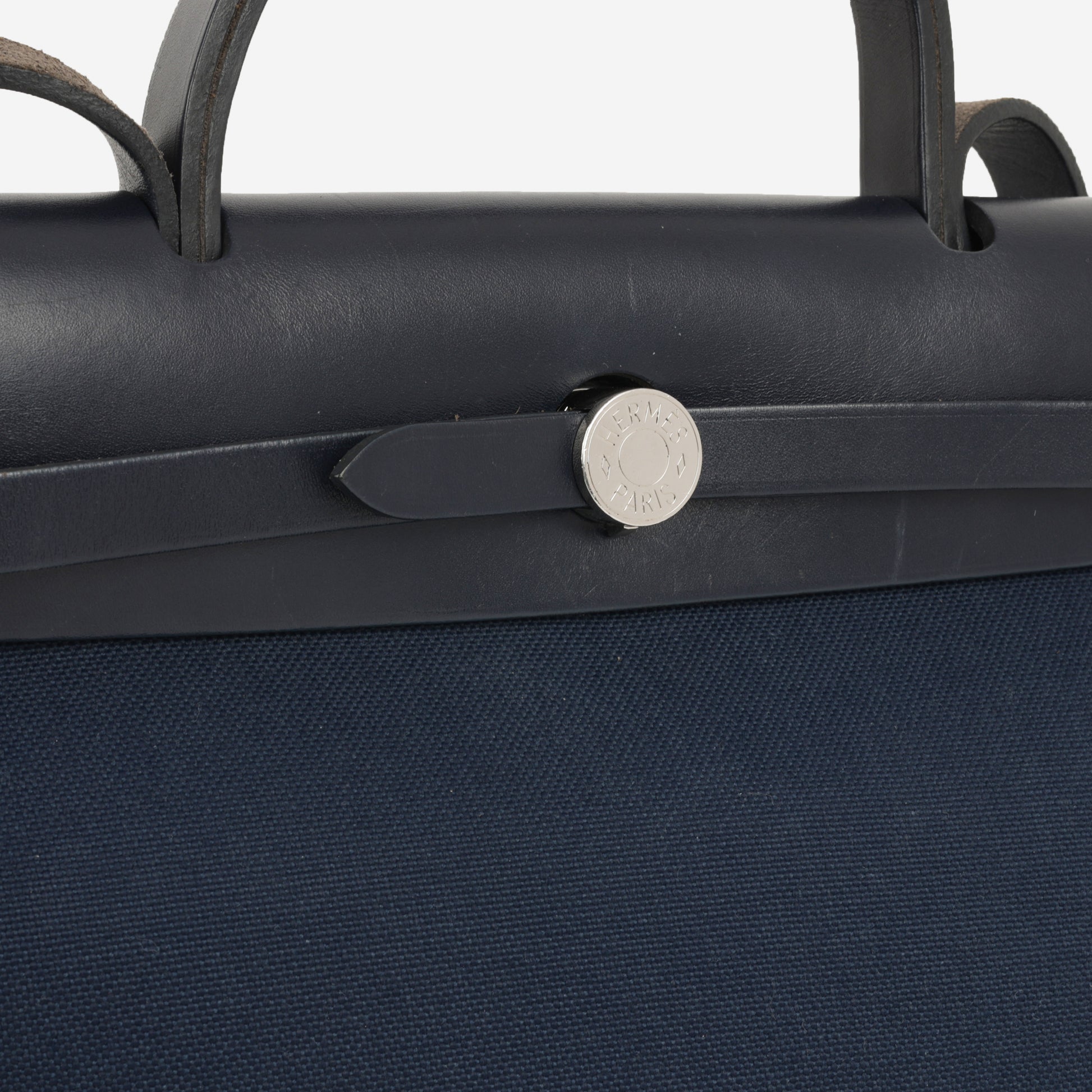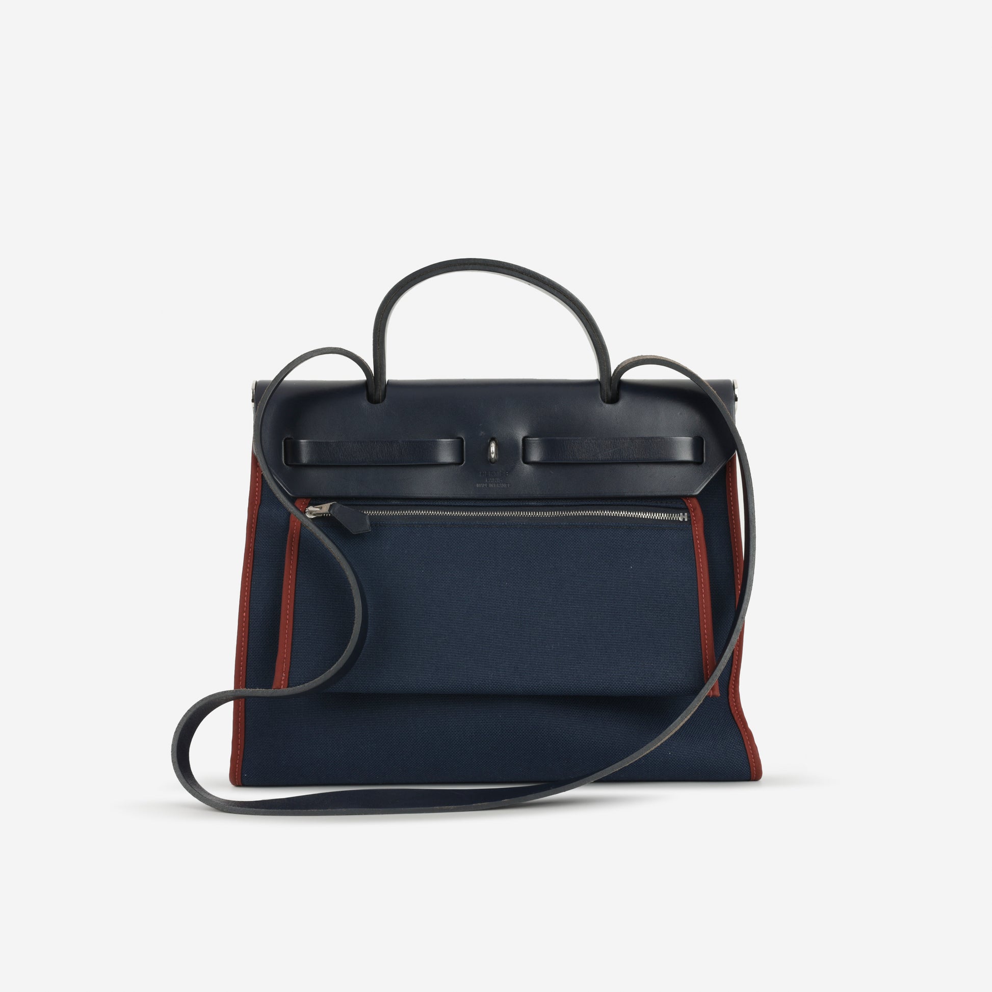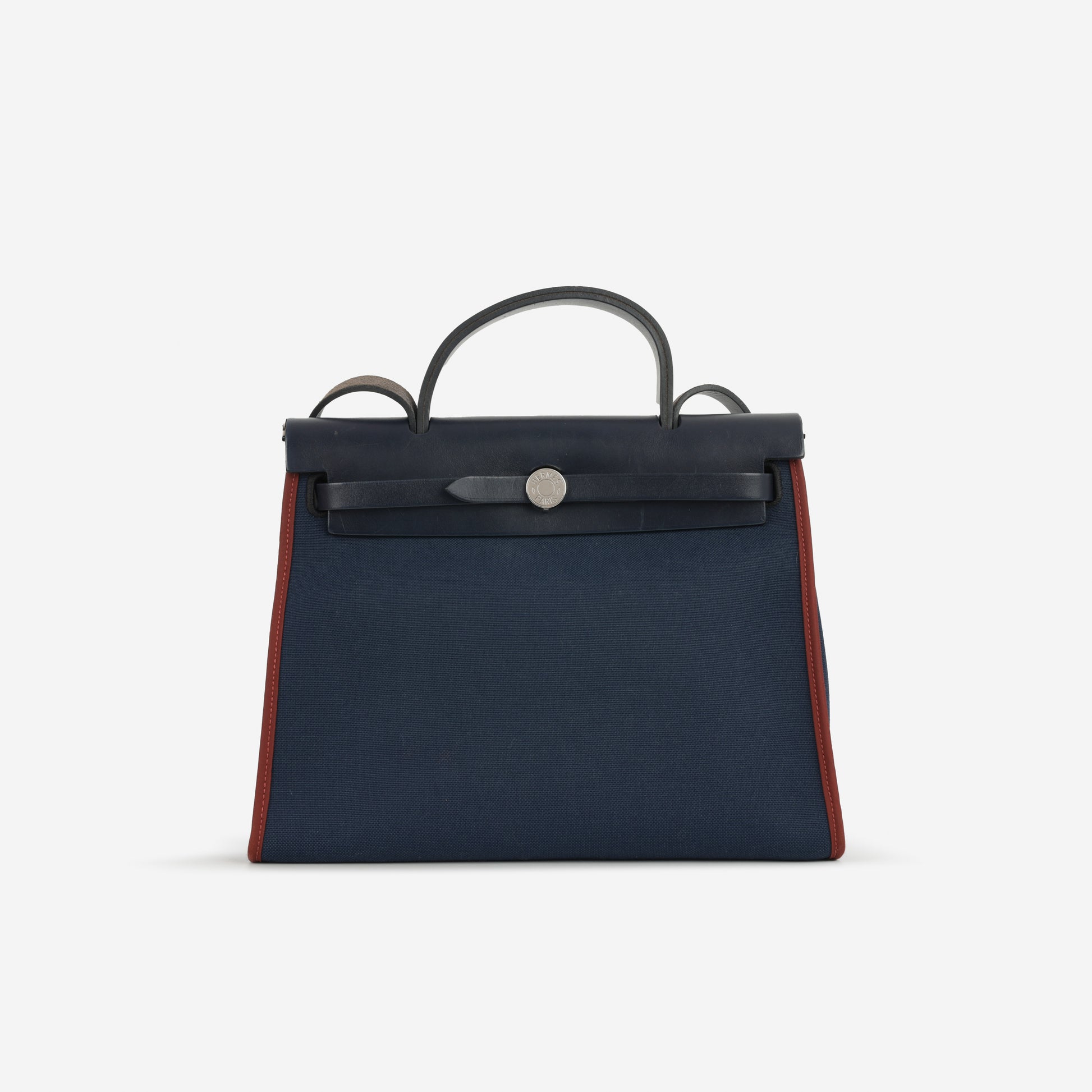 Hermès Herbag 31 - Blue Marine Canvas / Rouge H Trim | Palladium Hardware