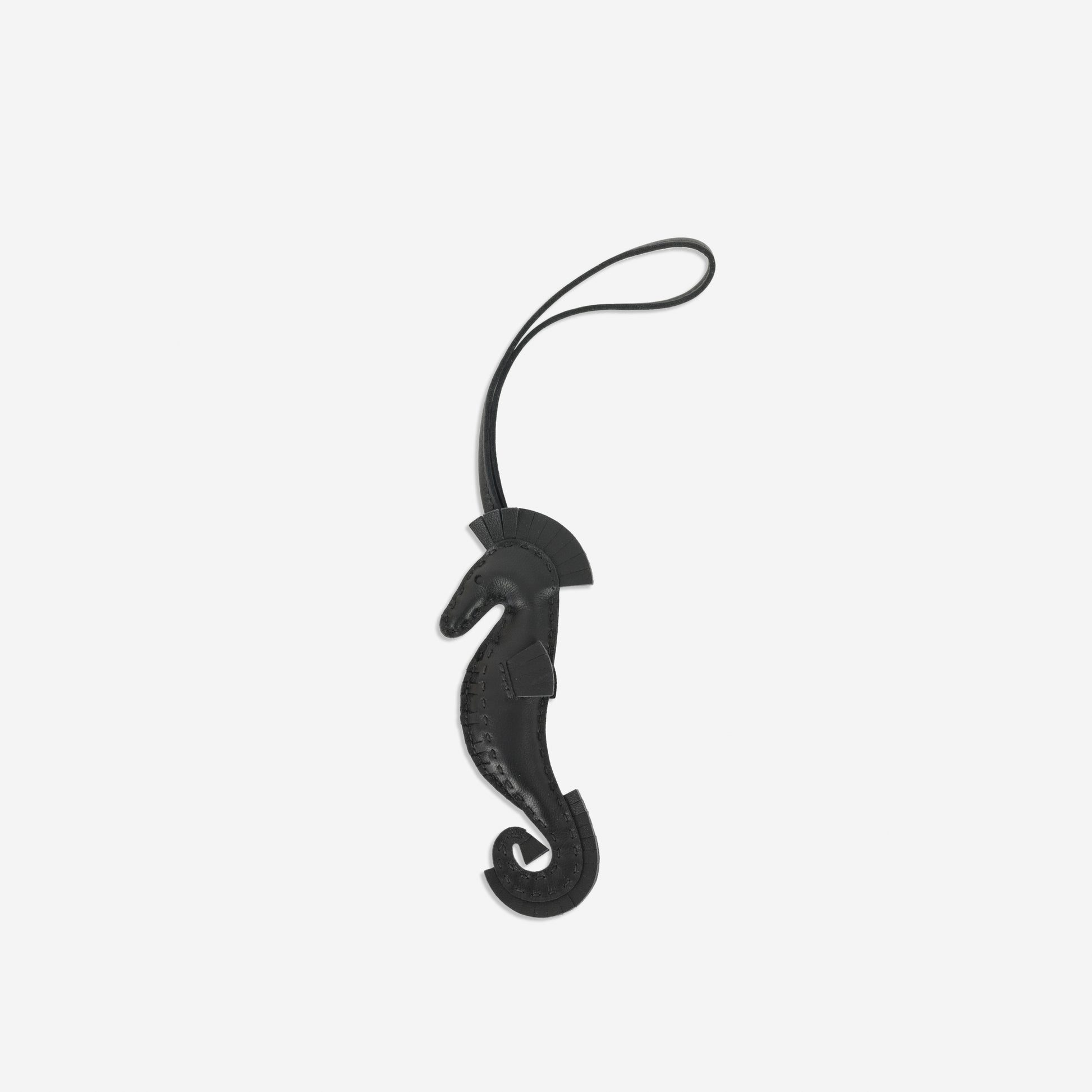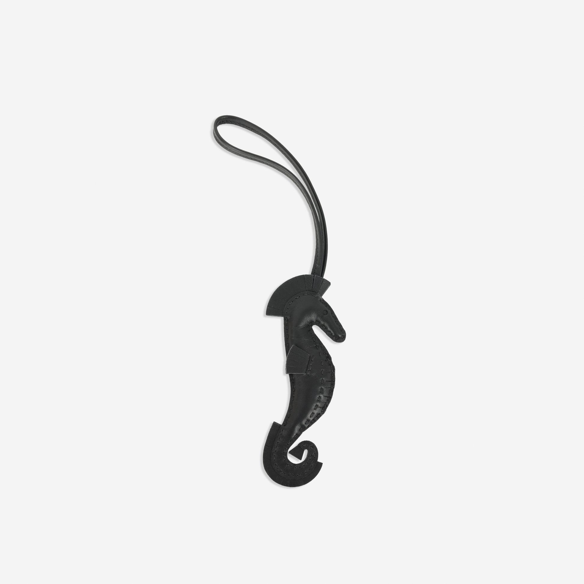 Add a touch of whimsical luxury to your collection with the Hermès Hippo Seahorse Charm in elegant Noir Agneau leather. Expertly handcrafted, this playful yet sophisticated charm is a perfect accessory to personalize your Hermès handbags, keys, or other cherished items.