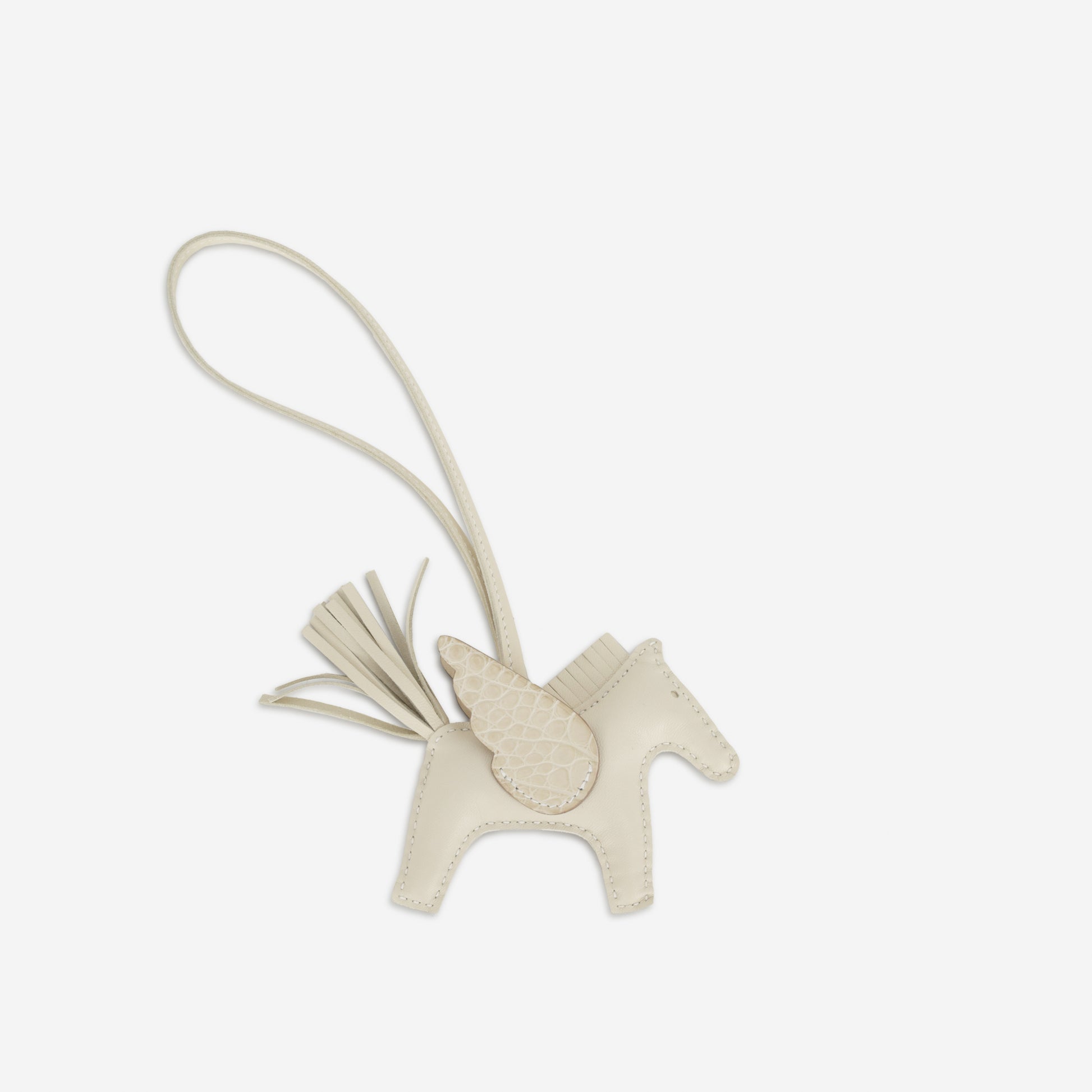 Carry a little bit of equestrianism with you everywhere you go. Crafted from the finest, soft agneau leather, and Beton alligator Hermes presents their adorable Rodeo Pegasus bag charm.