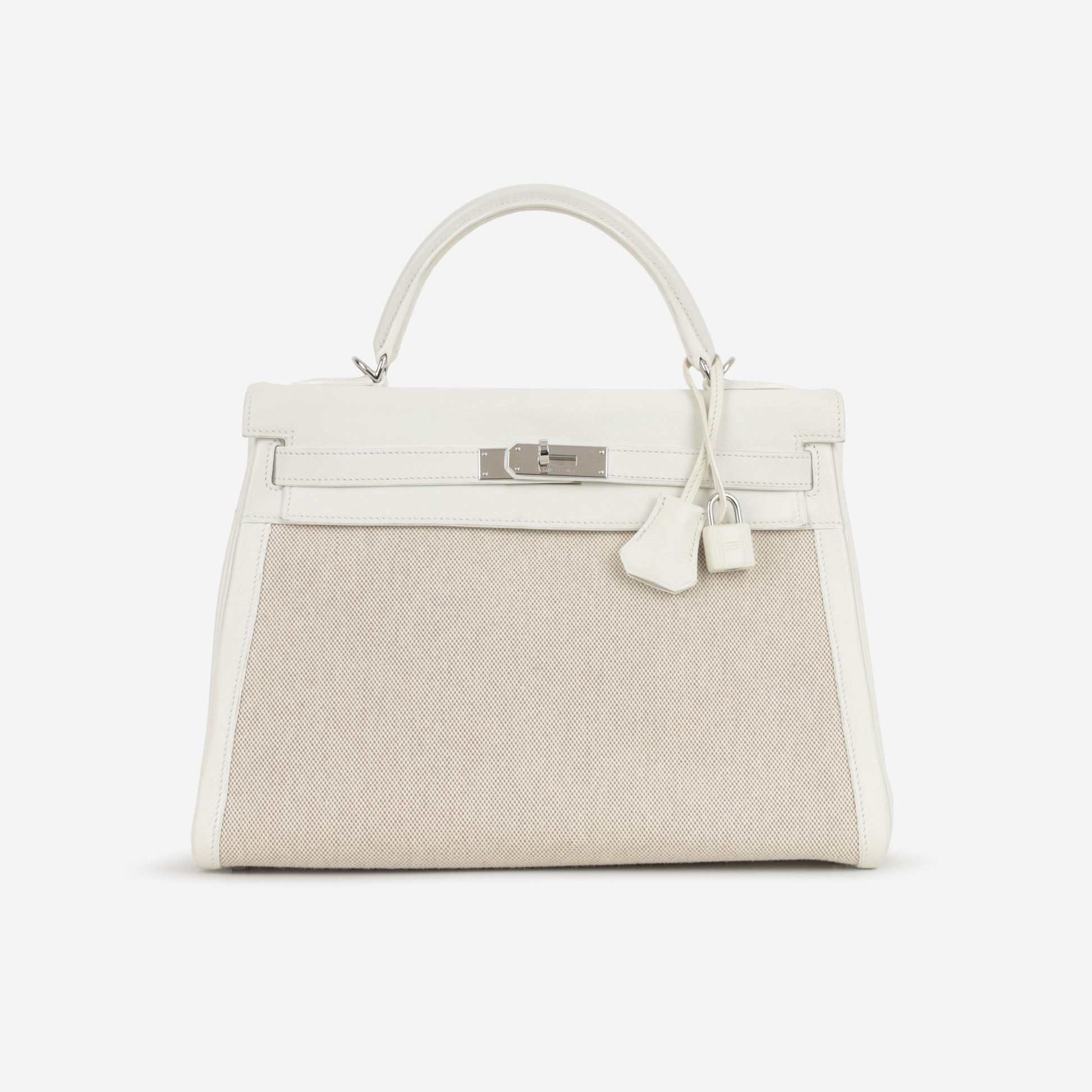 Hermès Vintage Kelly 32 - Blanc Swift / Ecru Toile | Palladium Hardware