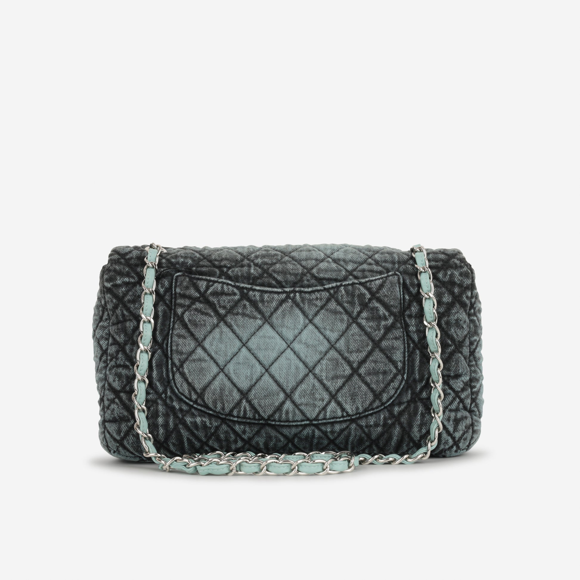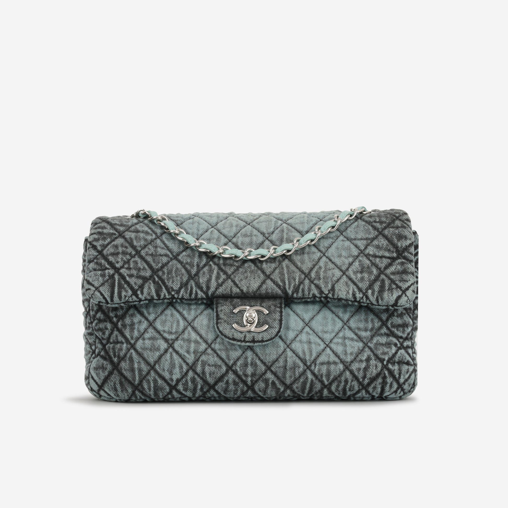 The Chanel 20C Seasonal Jumbo Flap in Teal/Black Denimpression is a contemporary twist on an iconic classic, blending Parisian elegance with modern flair. Crafted from premium denim with a textured “denimpression” finish, this bag features a striking teal and black color combination, enhanced by sleek silver hardware for a polished, sophisticated look.