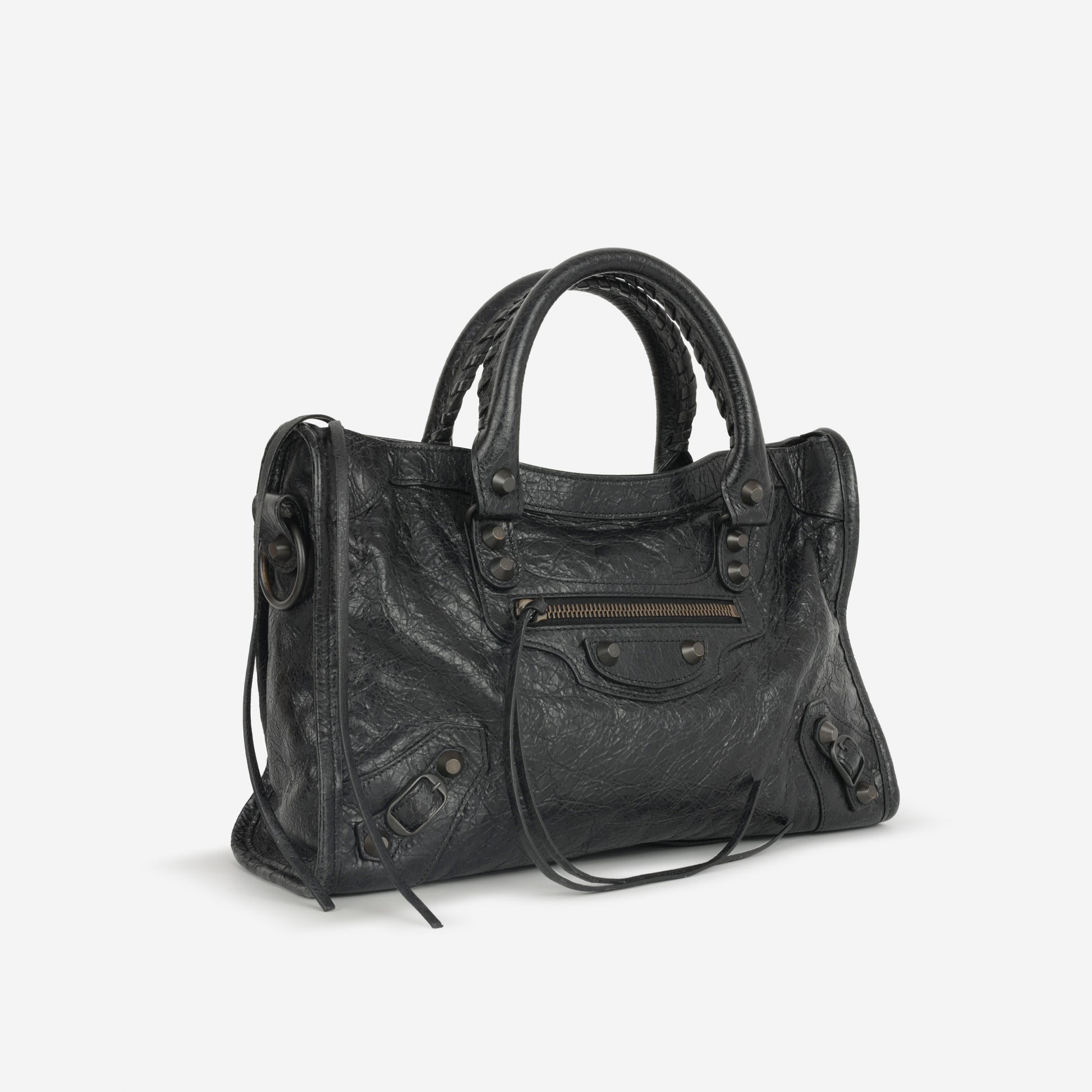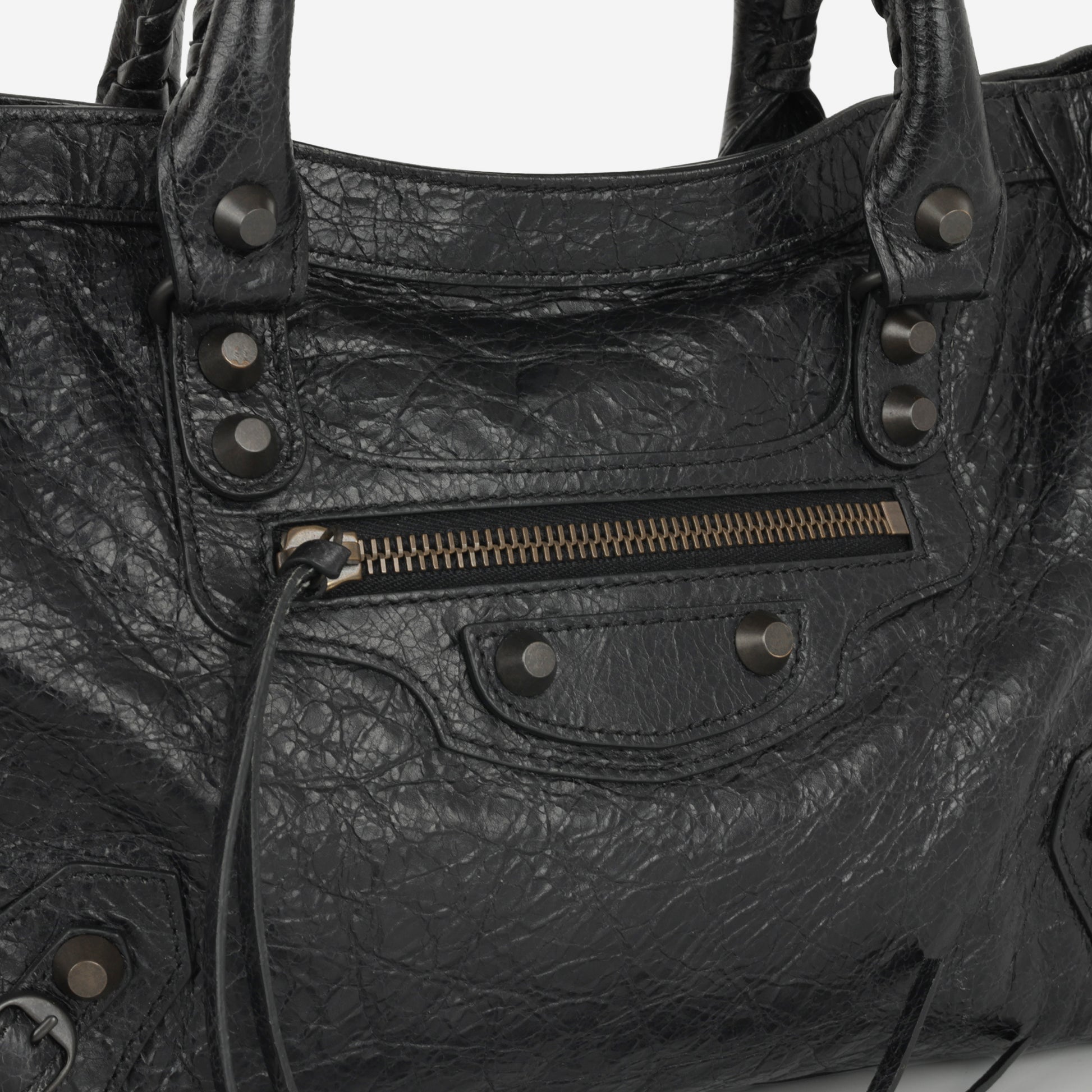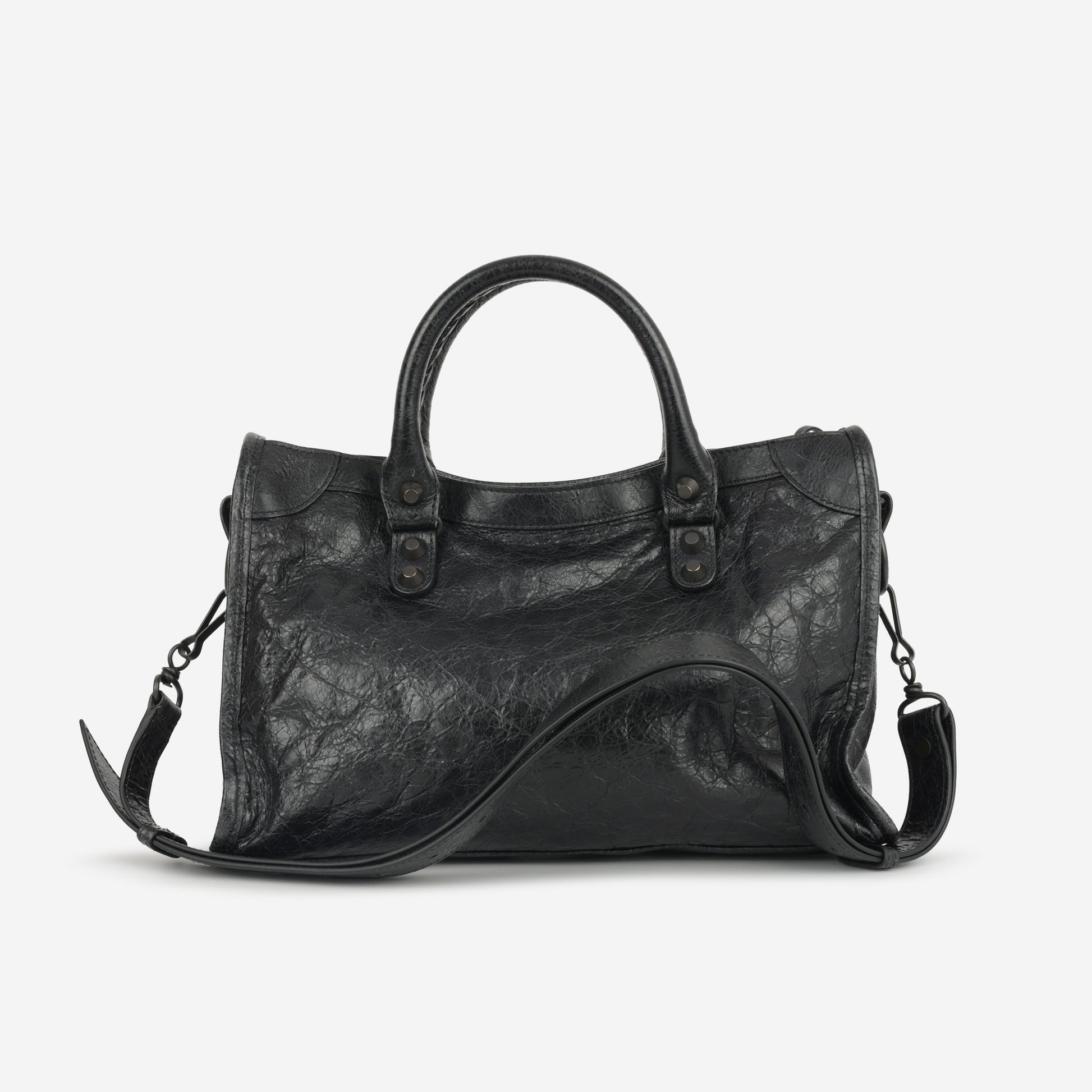 Balenciaga Small Le City Bag - Black Crumpled Lambskin | Brass Hardware
