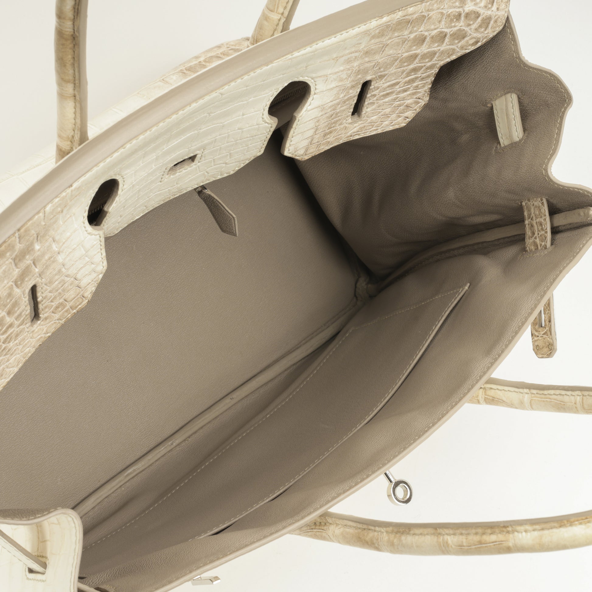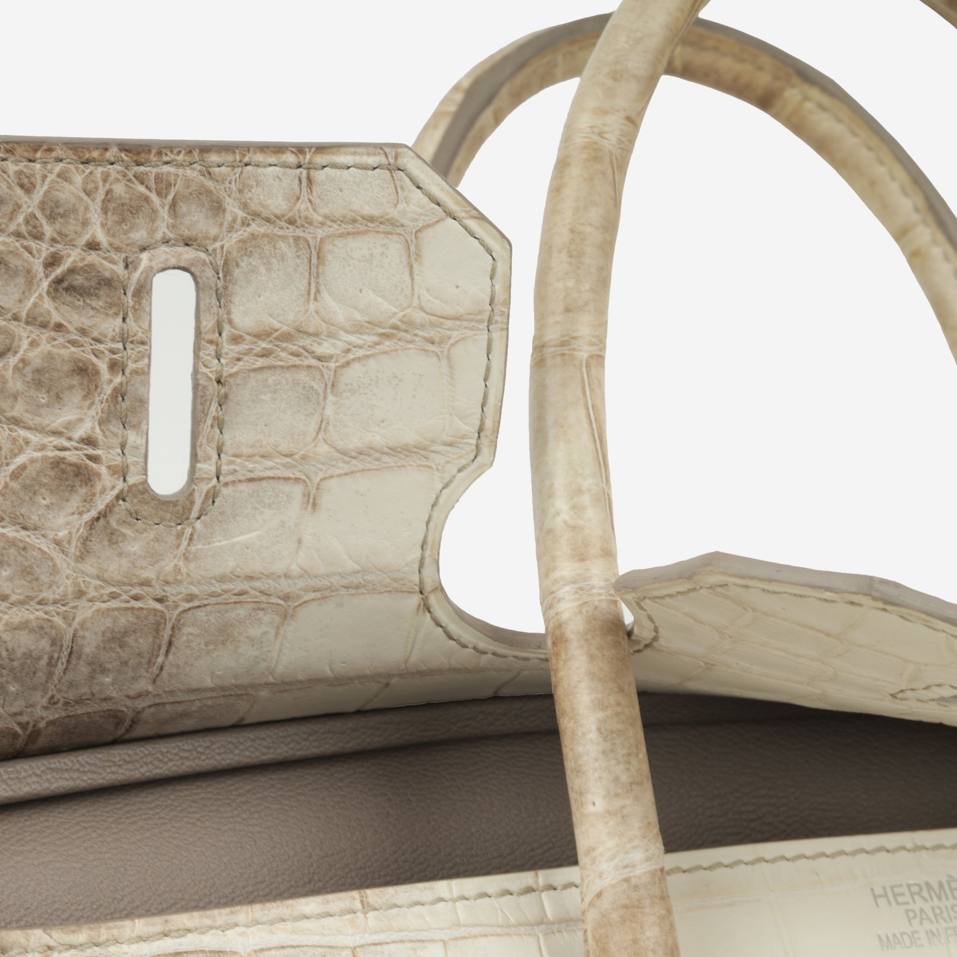 The Hermès Birkin 35 Himalayan Crocodile is one of the rarest and most coveted handbags in the world. Crafted from Niloticus Crocodile, the bag features a breathtaking gradient that fades from smoky grey to pearly white designed to resemble the snow-capped peaks of the Himalayas. Its delicate colouring, combined with meticulous craftsmanship, makes it a true work of art. This is far more than a handbag. it's a powerful symbol of exclusivity, elegance, and luxury. Available exclusively at Bagista, the Himalayan Birkin 35 is a once-in-a-lifetime piece that holds legendary status among collectors and fashion icons alike.