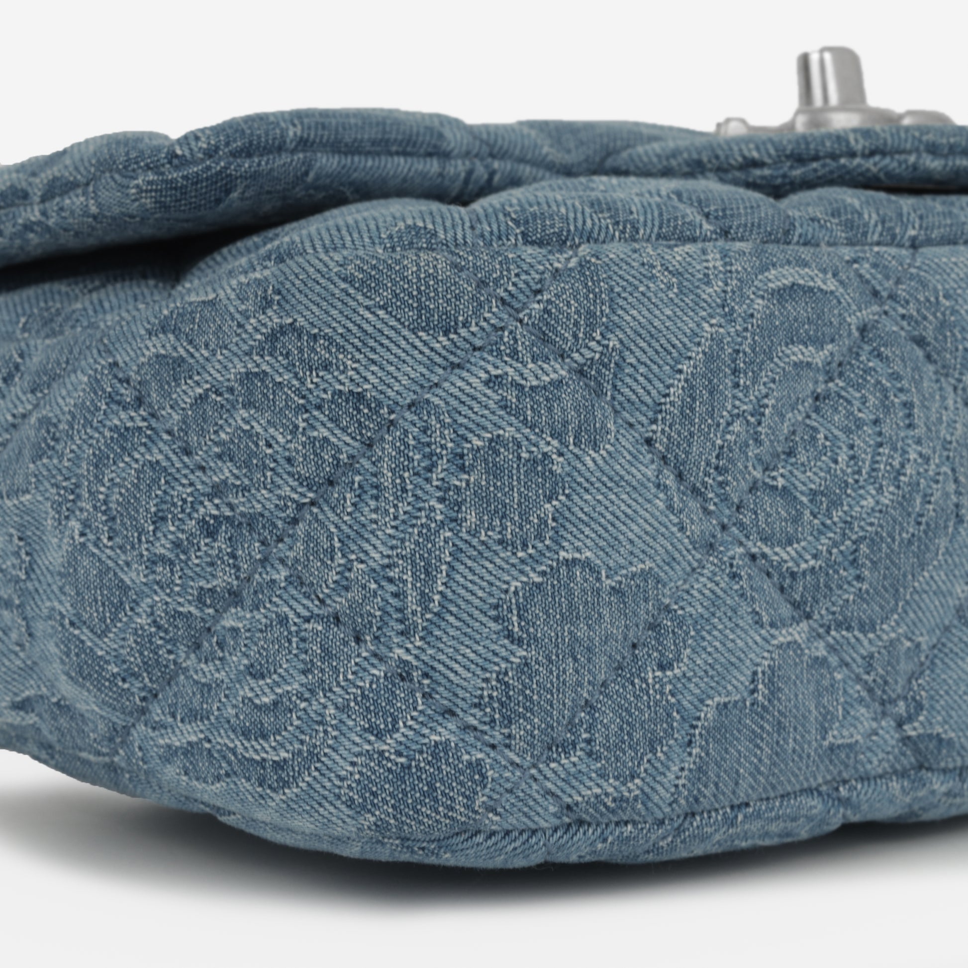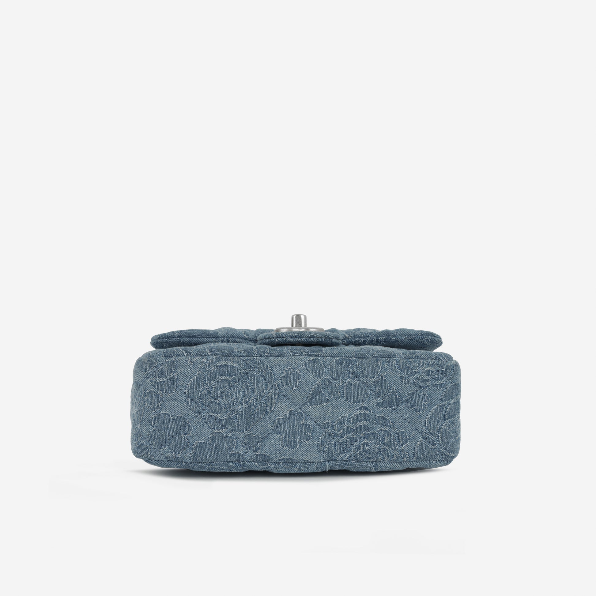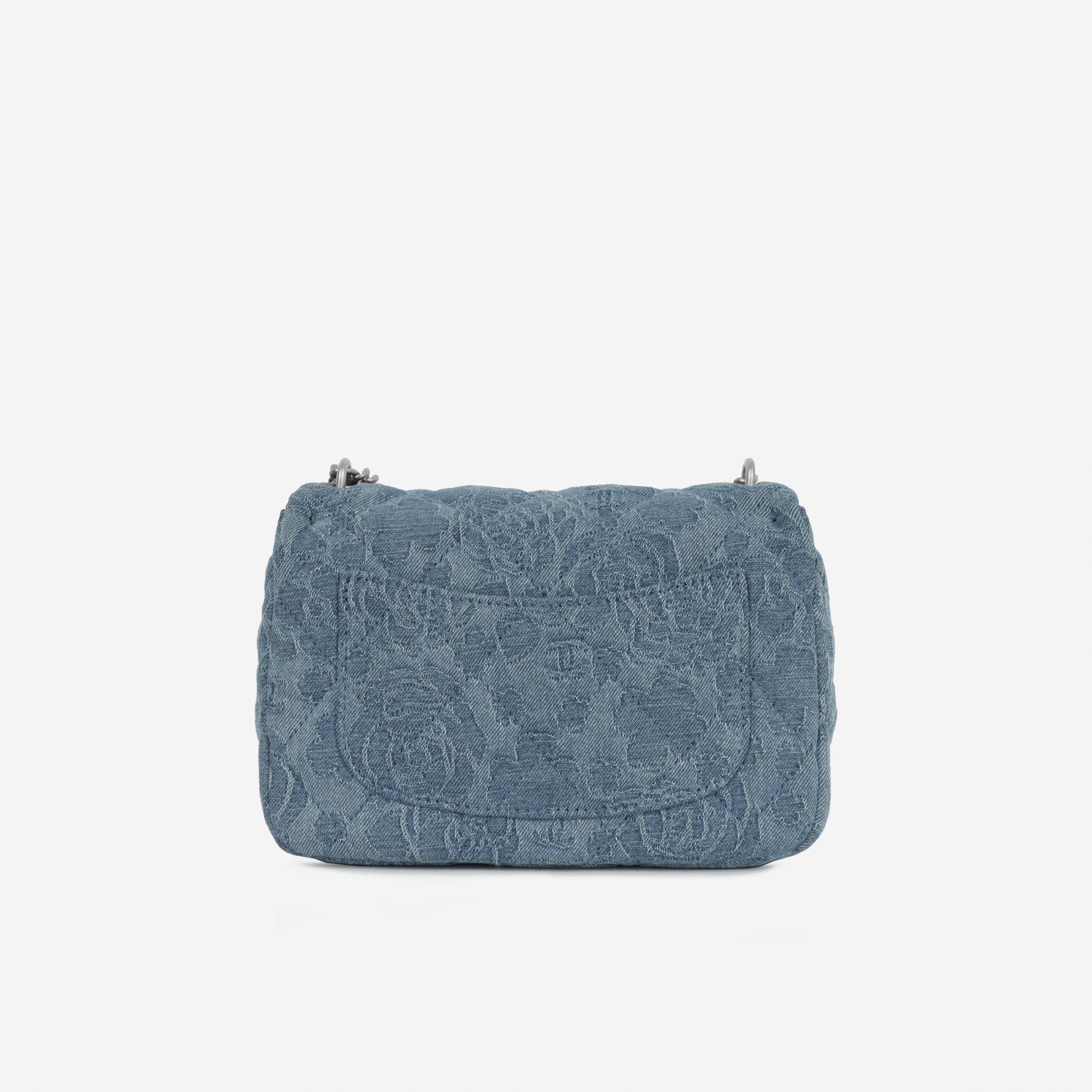 Chanel Square Camellia Heart Crush - Blue Embroidered Denim | Silver Hardware
