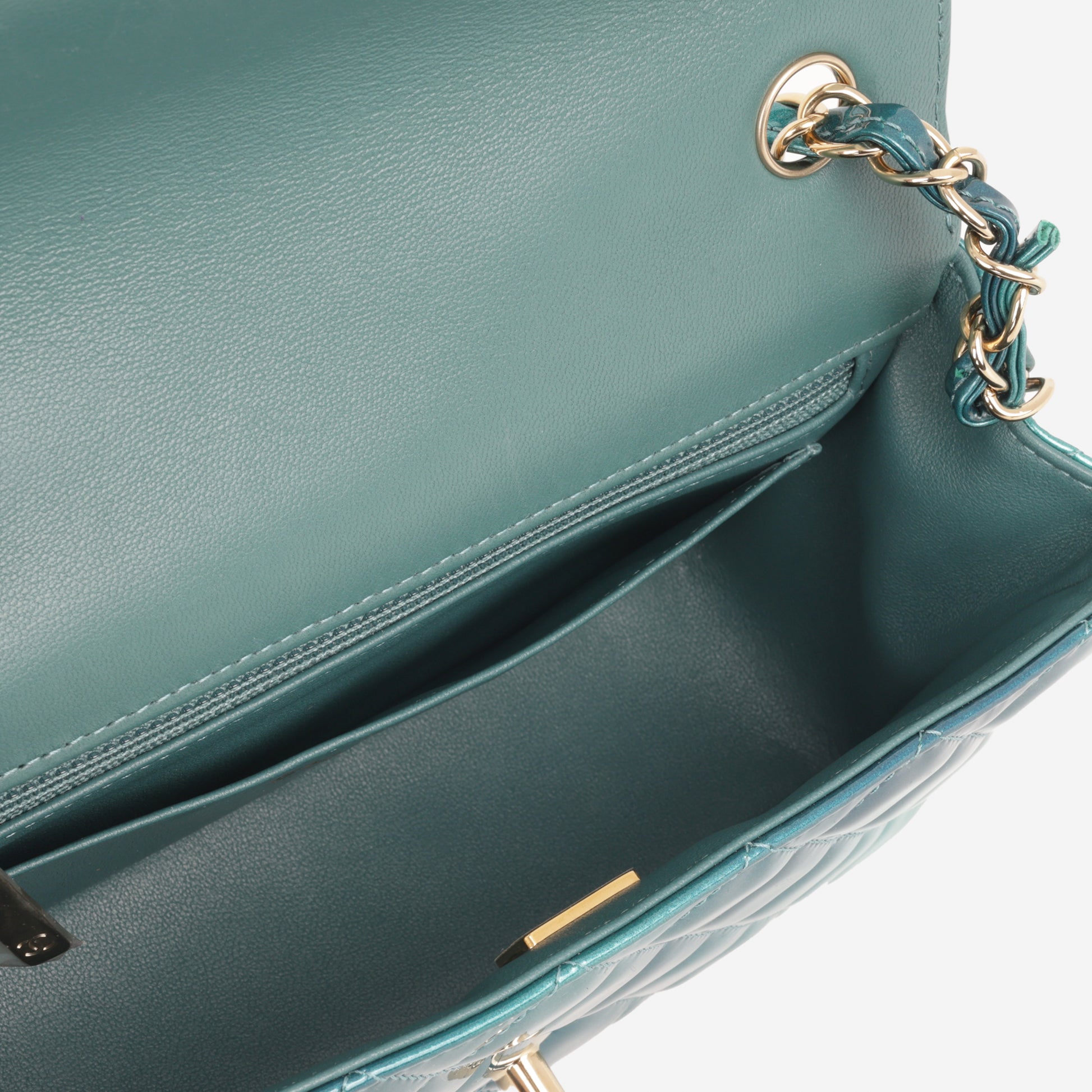 Chanel Mini Flap Rectangular - Blue Ombre Patent | Champagne Gold Hardware