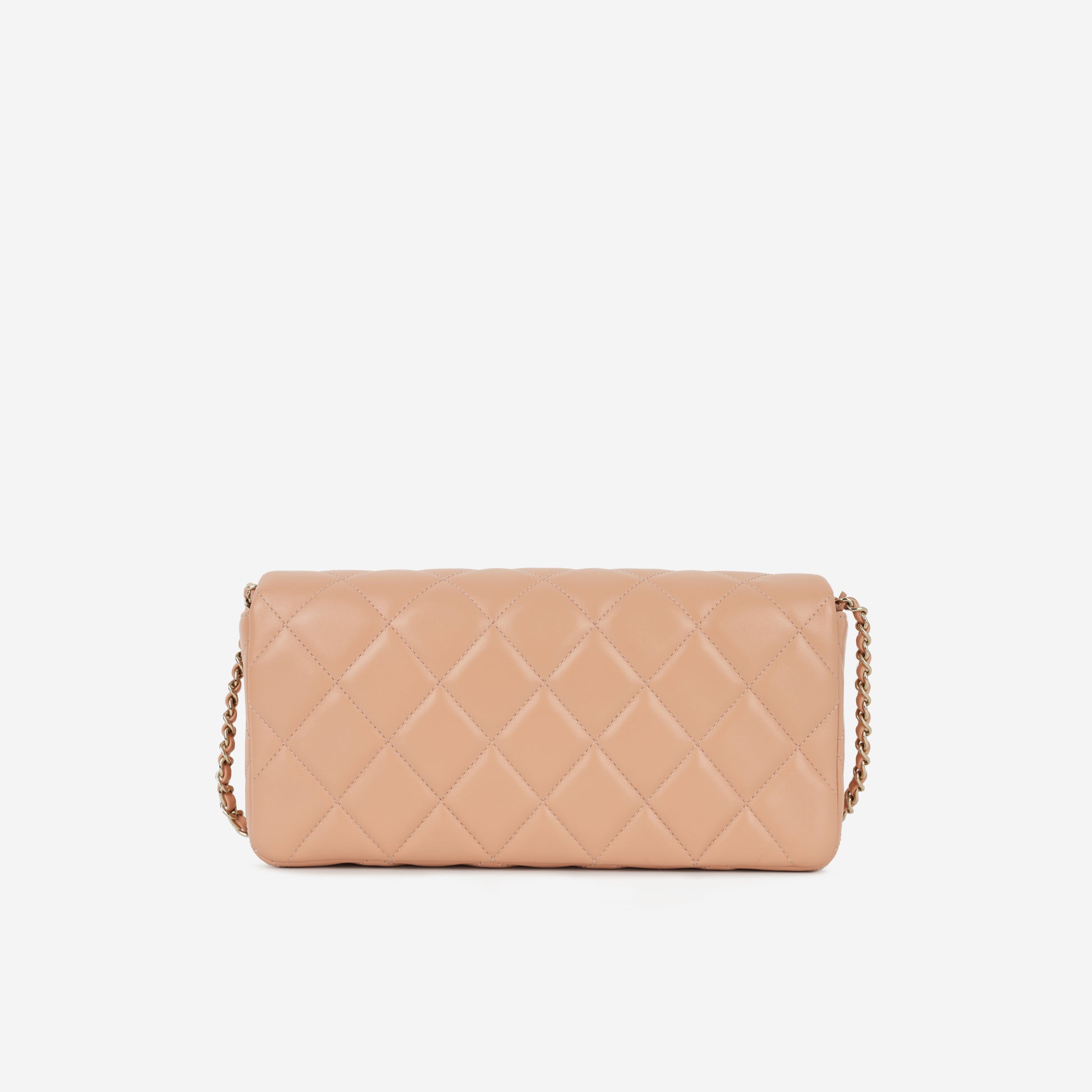 Chanel Pearl East West Flap Bag - Peach Lambskin | Champagne Gold Hardware