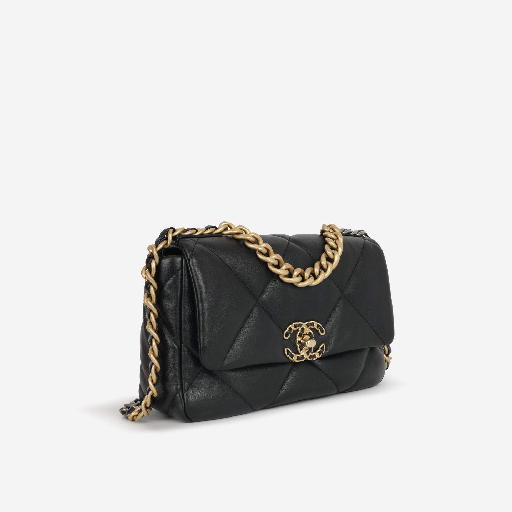 Chanel Small 19 Flap Bag - Black Lambskin | Gold & Silver Hardware