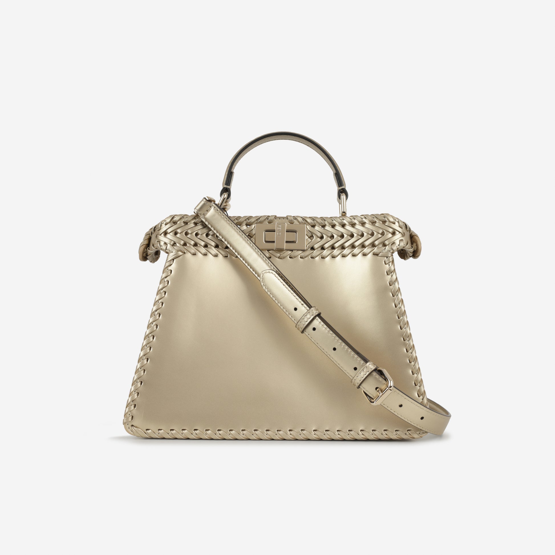 Fendi Small ISeeU Peekaboo - Champagne Gold Woven Leather | Gold Hardware
