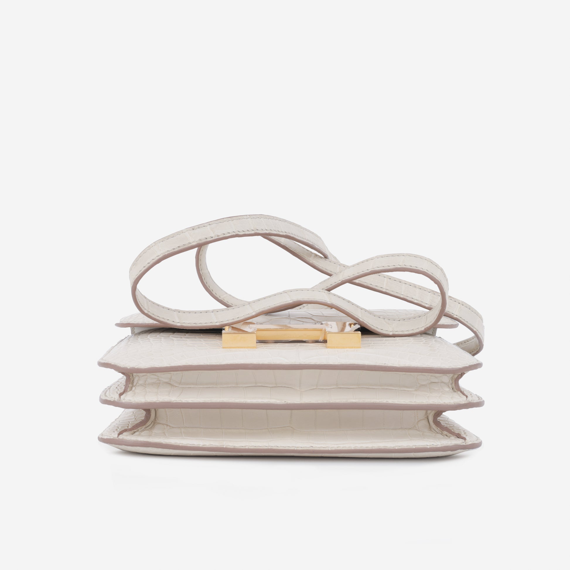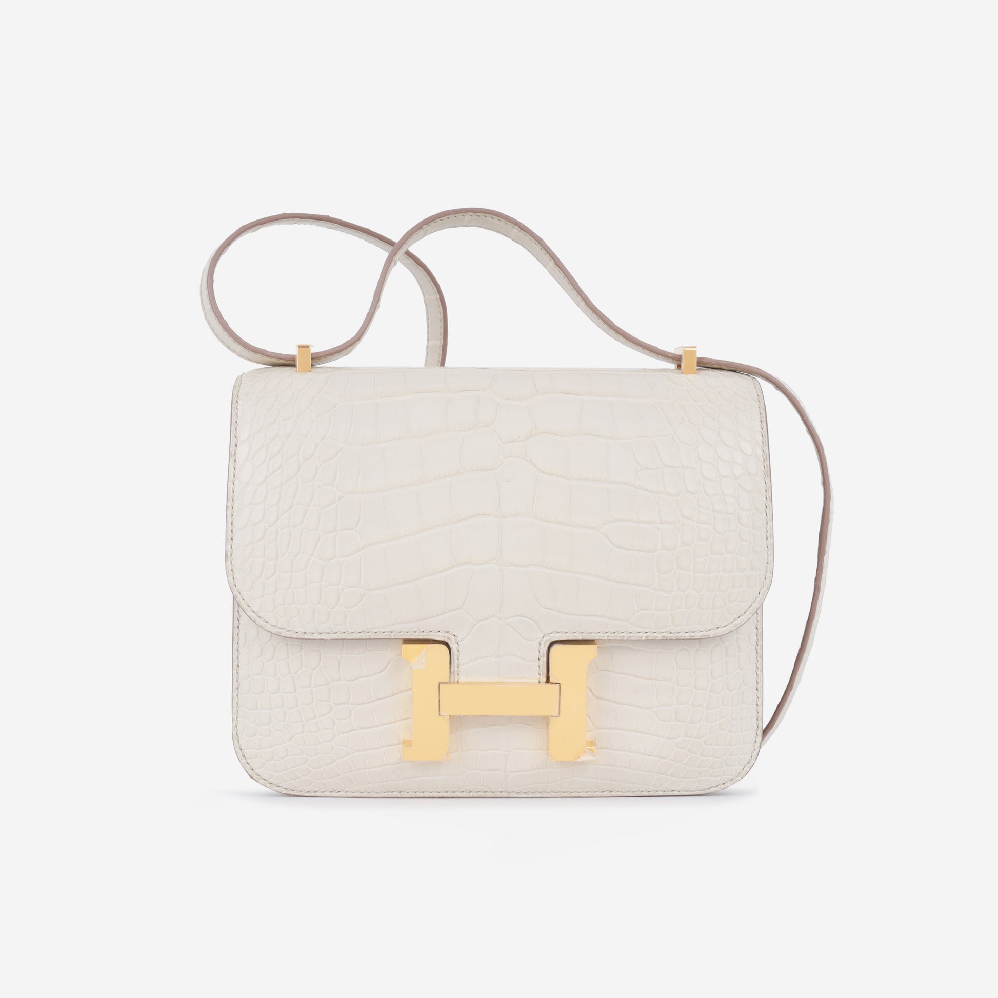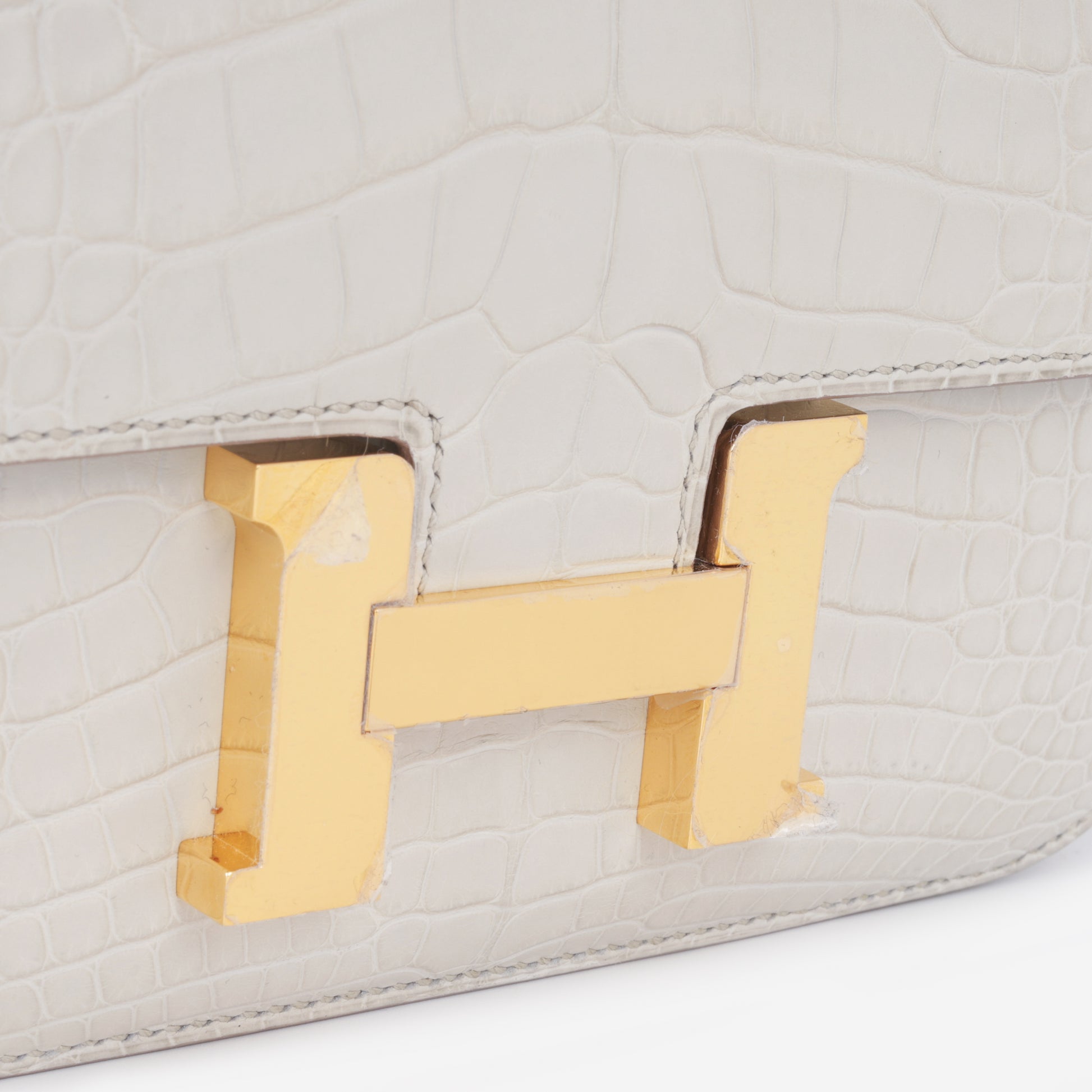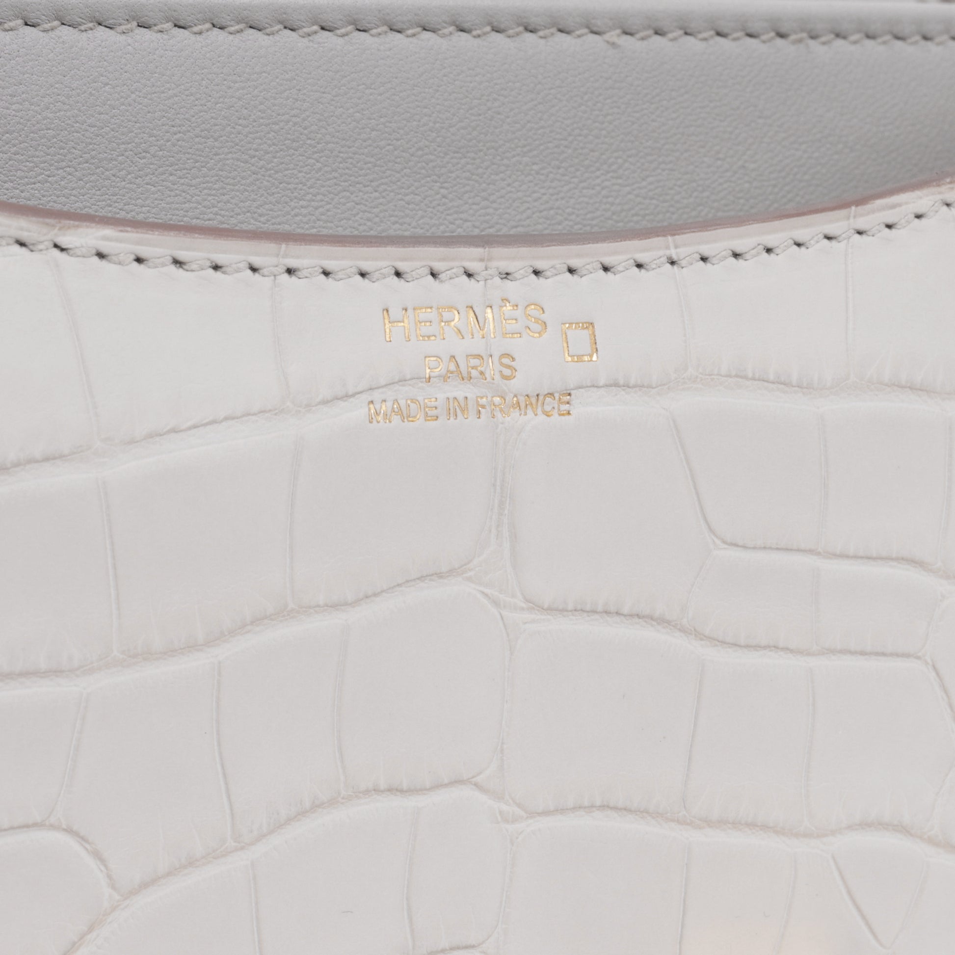 Exude pure sophistication with the Hermès Constance 18 in Beton alligator leather, adorned with gold hardware. A true symbol of understated luxury, this exquisite piece combines the allure of exotic craftsmanship with the timeless elegance that defines Hermès.