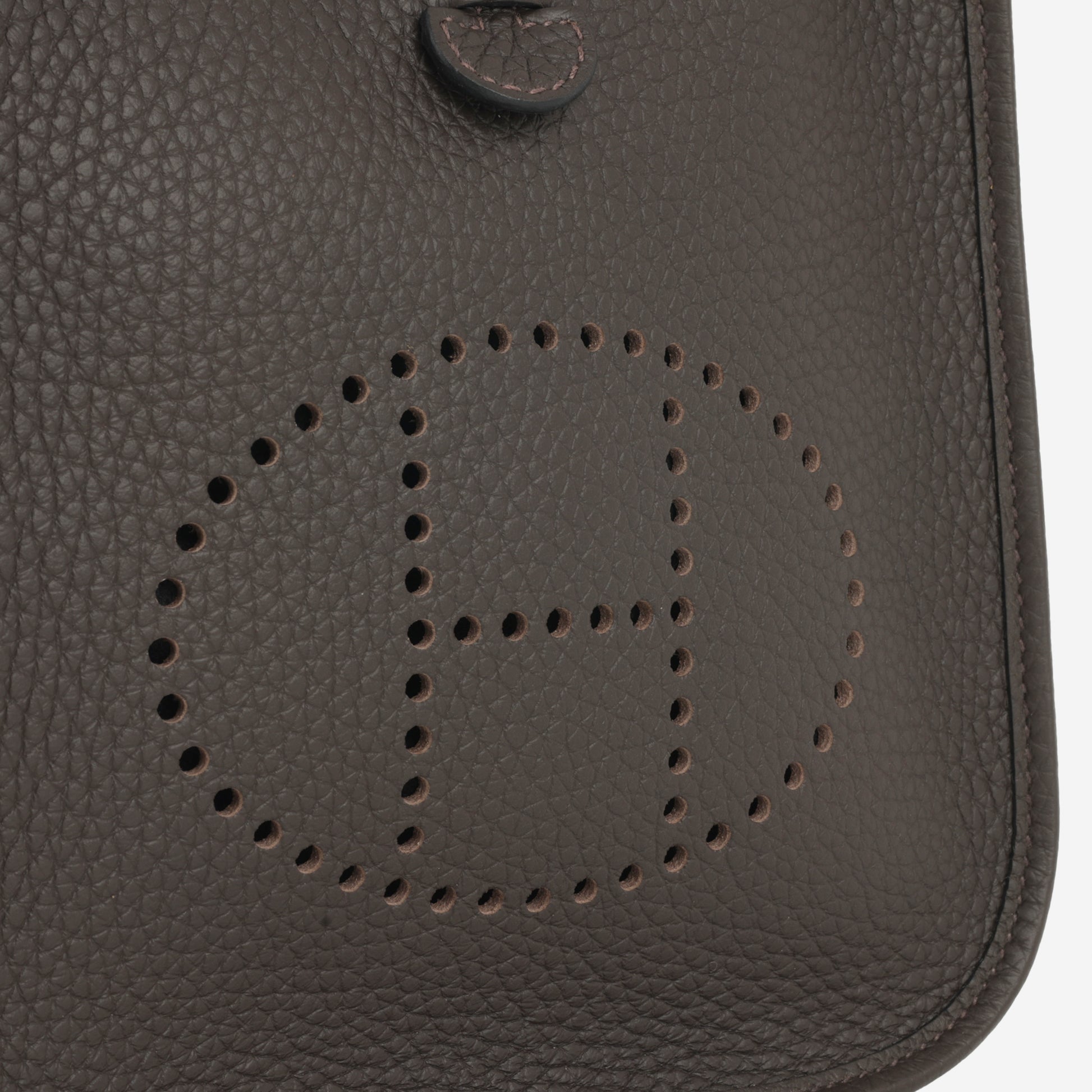 Hermès Evelyne TPM - Ebene Clemence / Gris Pale / Etoupe Strap | Gold Hardware