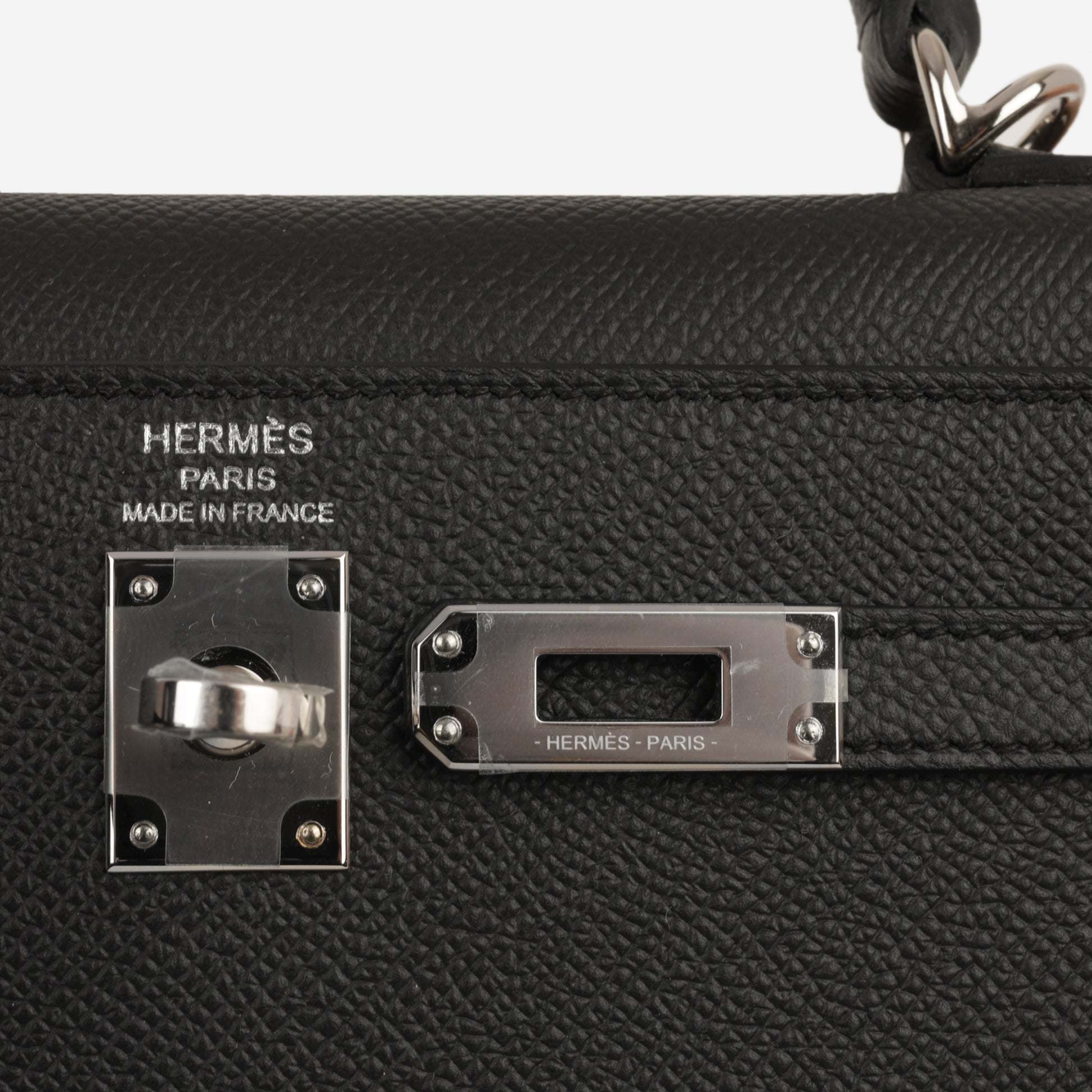 Black with palladium remains one of Hermès’ hardest colour–hardware combinations to secure at boutique level due to high demand and limited production. The Epsom leather provides durability, lightness and excellent shape retention, making this the preferred Kelly 25 specification for collectors and everyday wearers alike.