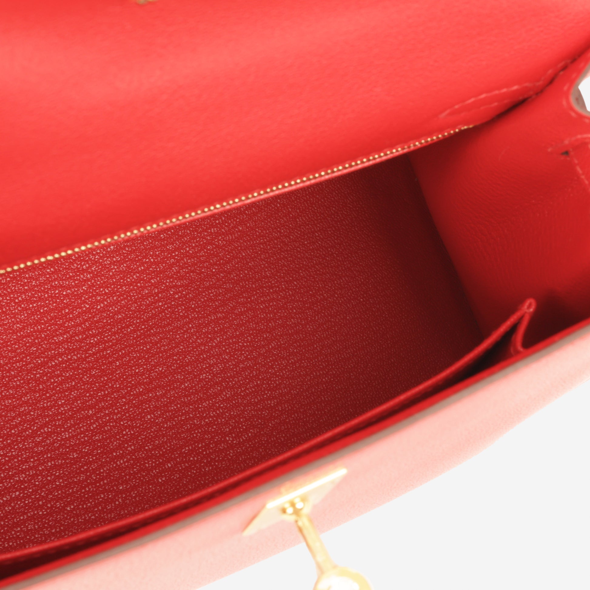 The Hermès Kelly 25 Sellier in Rouge De Coeur is crafted from premium Chevre Chamkila leather, renowned for its durability, lightweight feel, and subtle sheen, and finished with elegant gold-plated hardware for a timeless, sophisticated look. Measuring 25cm, this highly sought-after Kelly features the classic Sellier silhouette, known for its structured design and sharp edges. The vibrant red shade offers a perfect balance of boldness and versatility, while the meticulous hand-stitching reflects Hermès’ unrivalled craftsmanship.