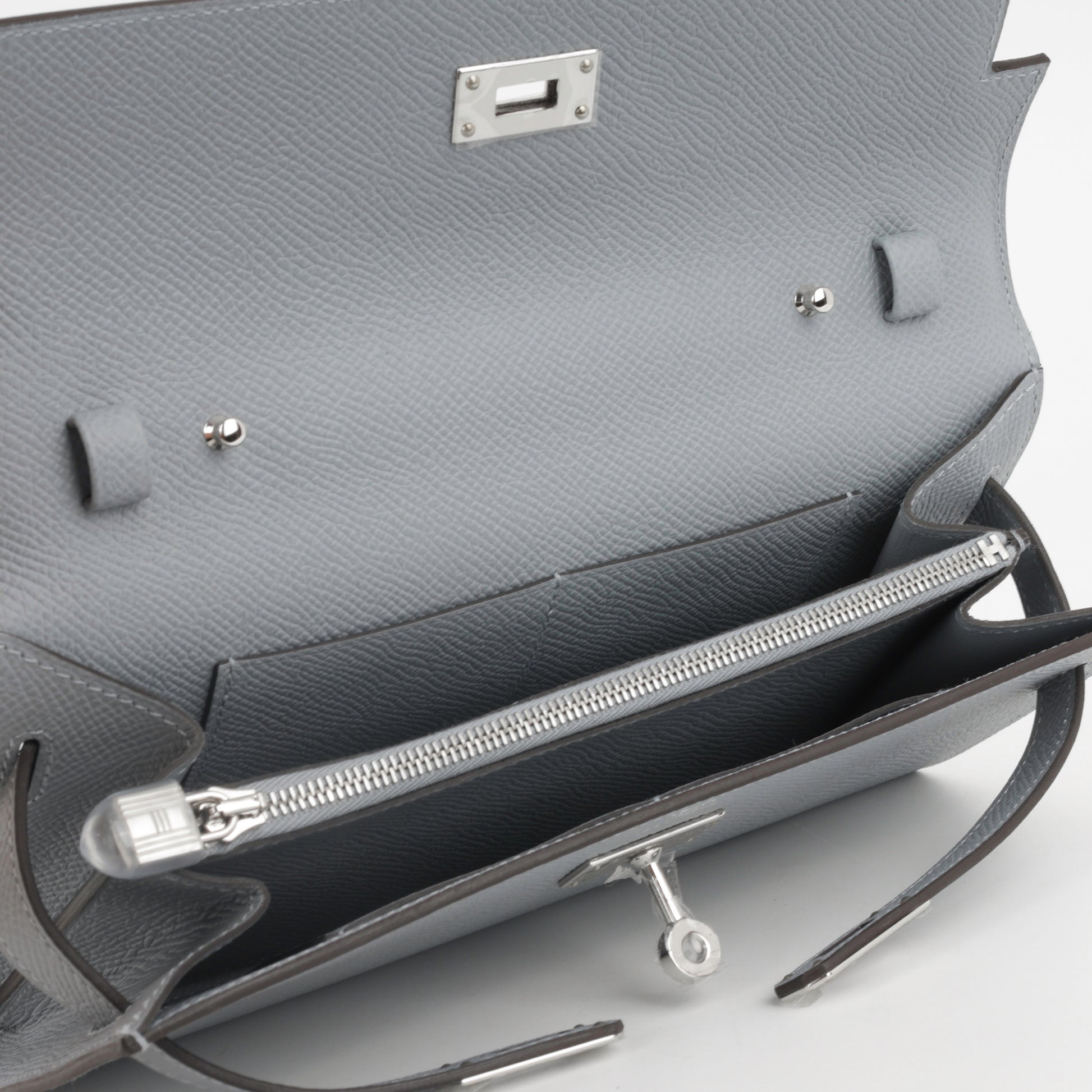 The Hermès Kelly To Go Wallet in Gris Pantin Epsom leather with Palladium hardware combines sleek functionality with iconic Hermès elegance. Crafted from durable, finely textured Epsom leather, this compact wallet features the signature Kelly-inspired design, offering a stylish and practical accessory for everyday luxury.