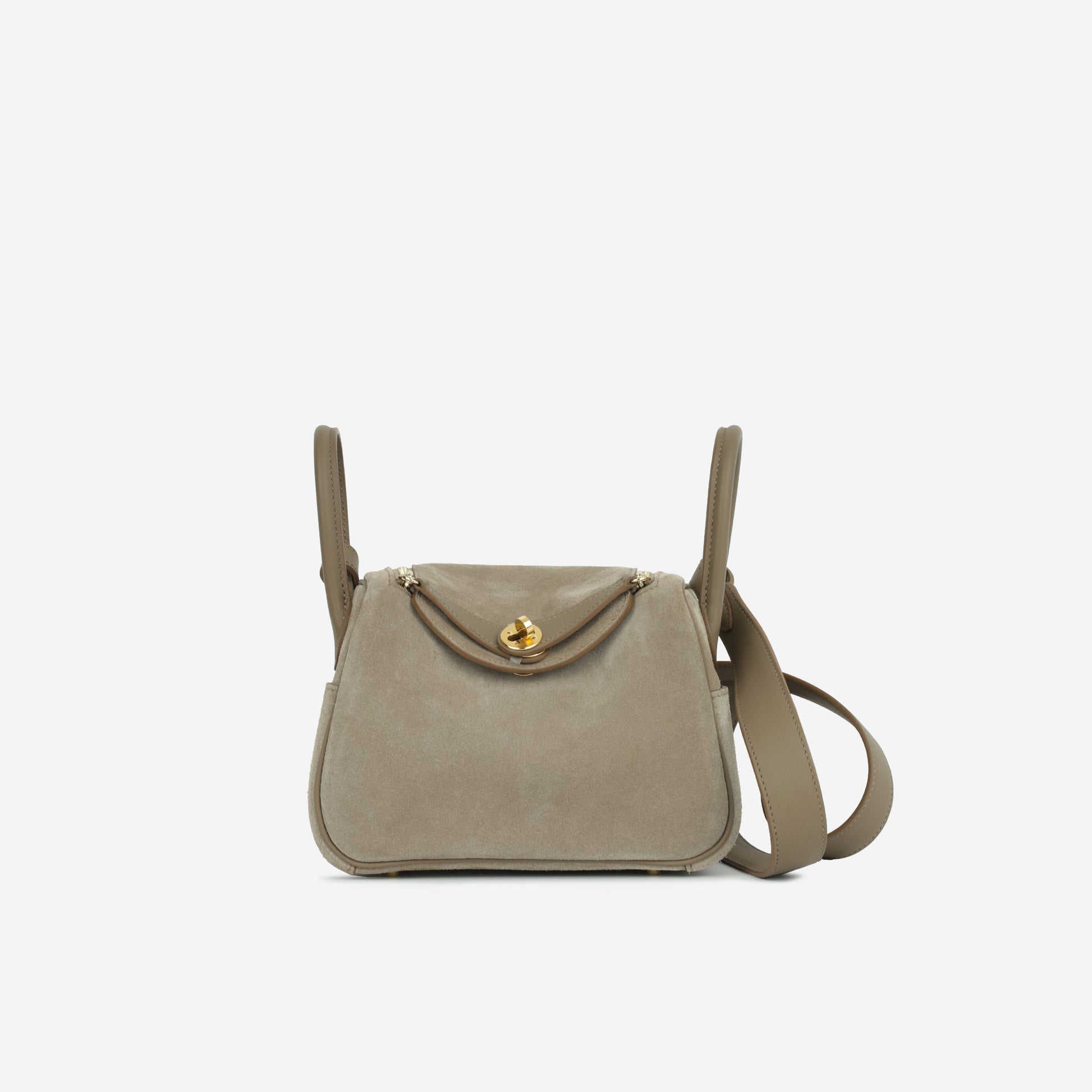 Hermès Mini Lindy - Gris Caillou / Etoupe Swift | Gold Hardware