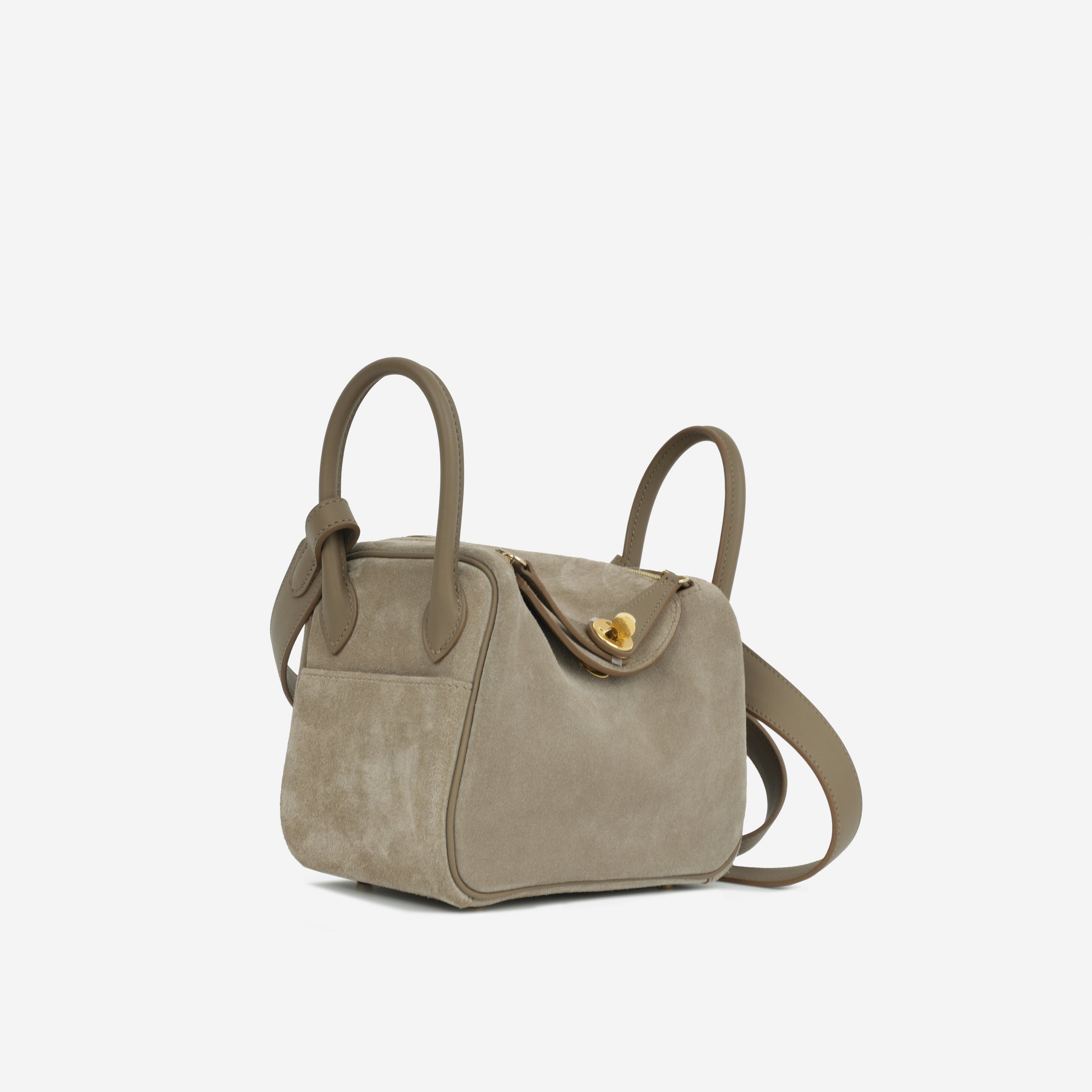 The Hermès Mini Lindy in Gris Caillou / Etoupe Swift with Gold hardware is a rare and highly collectible piece, produced in 2024 (W stamp). Featuring premium suede and Swift leather, this Mini Lindy showcases Hermès’ exceptional craftsmanship in a compact, versatile silhouette.