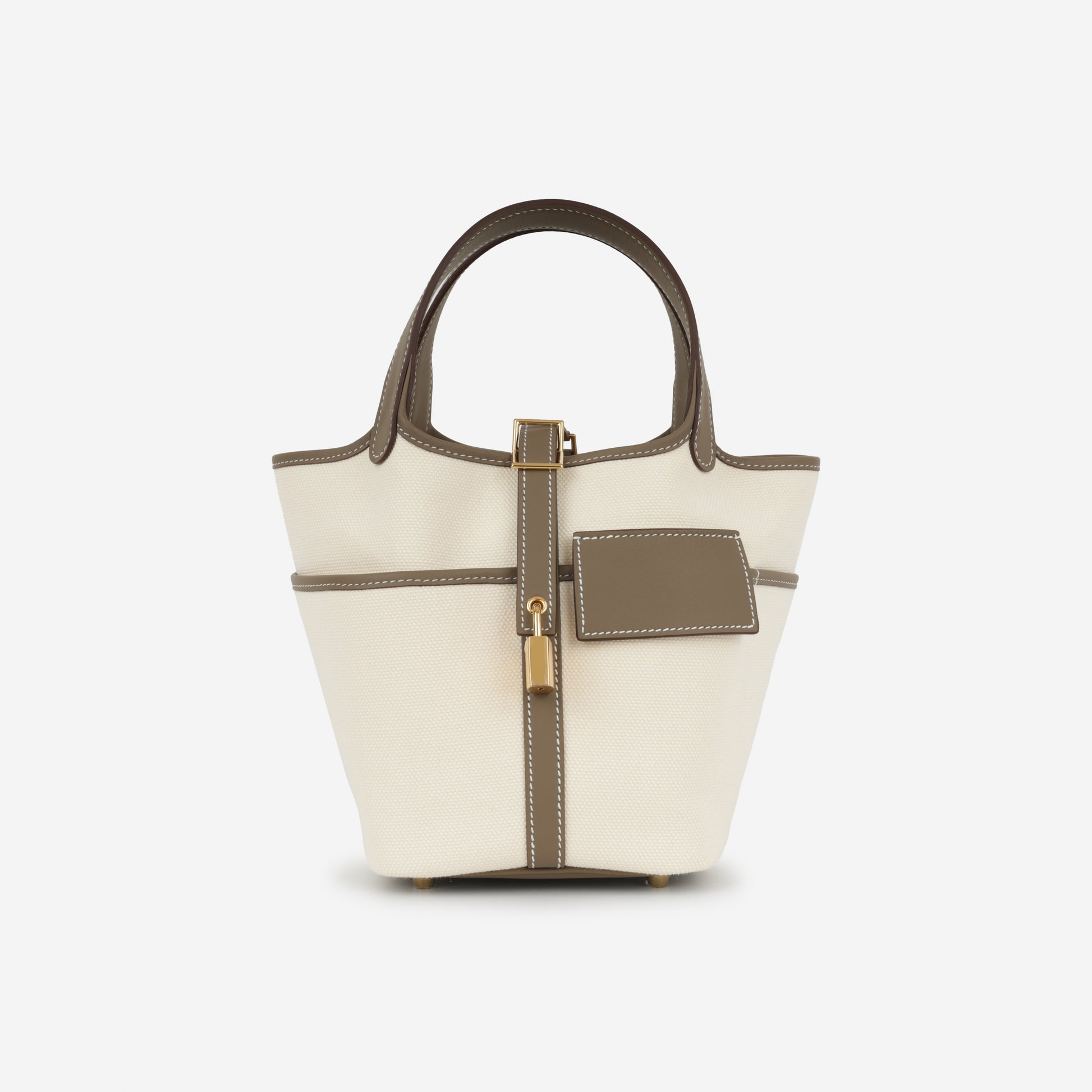 Hermès Picotin 18 Cargo - Ecru Canvas / Etoupe Swift | Gold Hardware