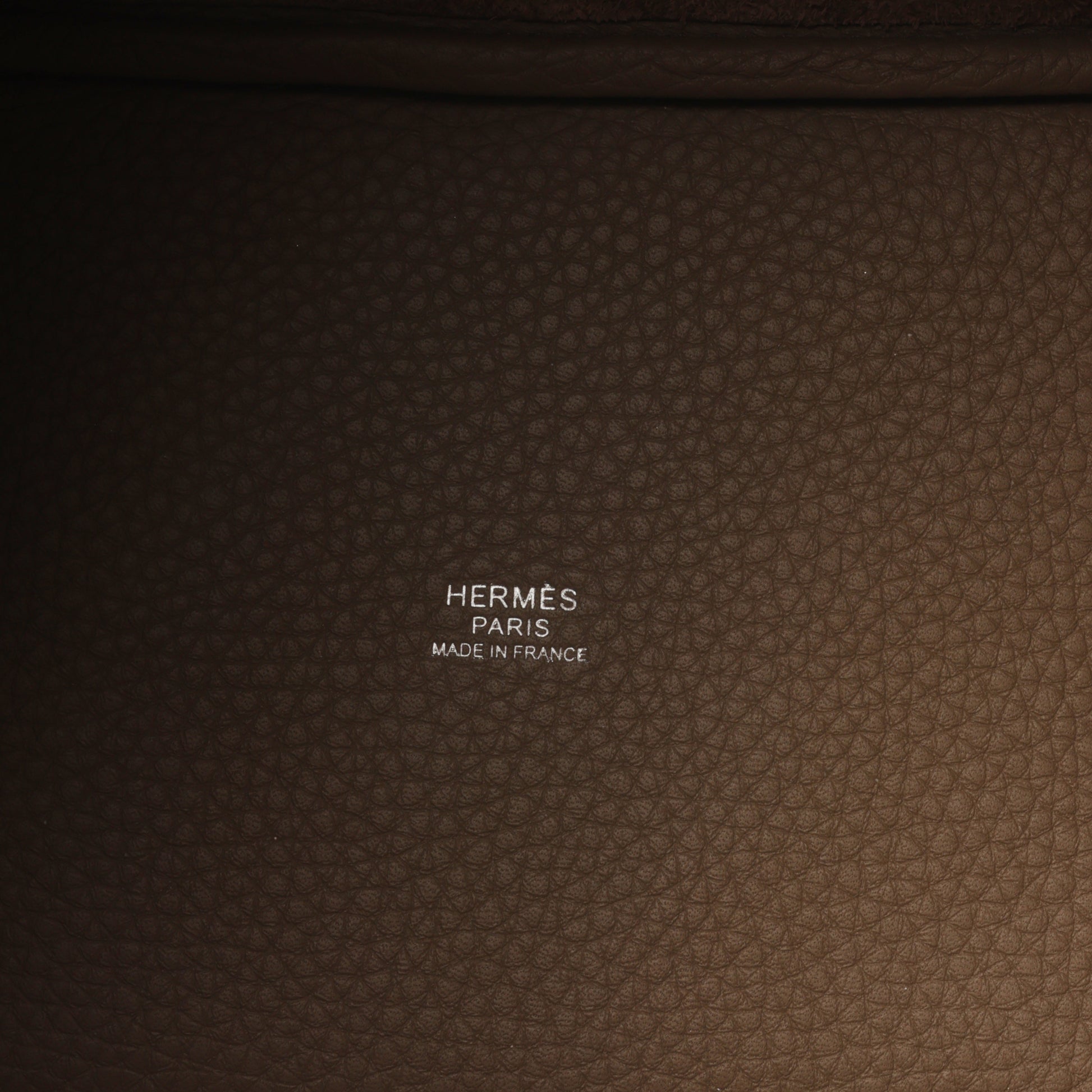 Elevate your style with the Hermès Picotin 18 in Etoupe Clemence leather, featuring refined Palladium hardware. This iconic bucket bag blends effortless elegance, luxurious craftsmanship, and versatile design, perfect for everyday sophistication and timeless fashion.