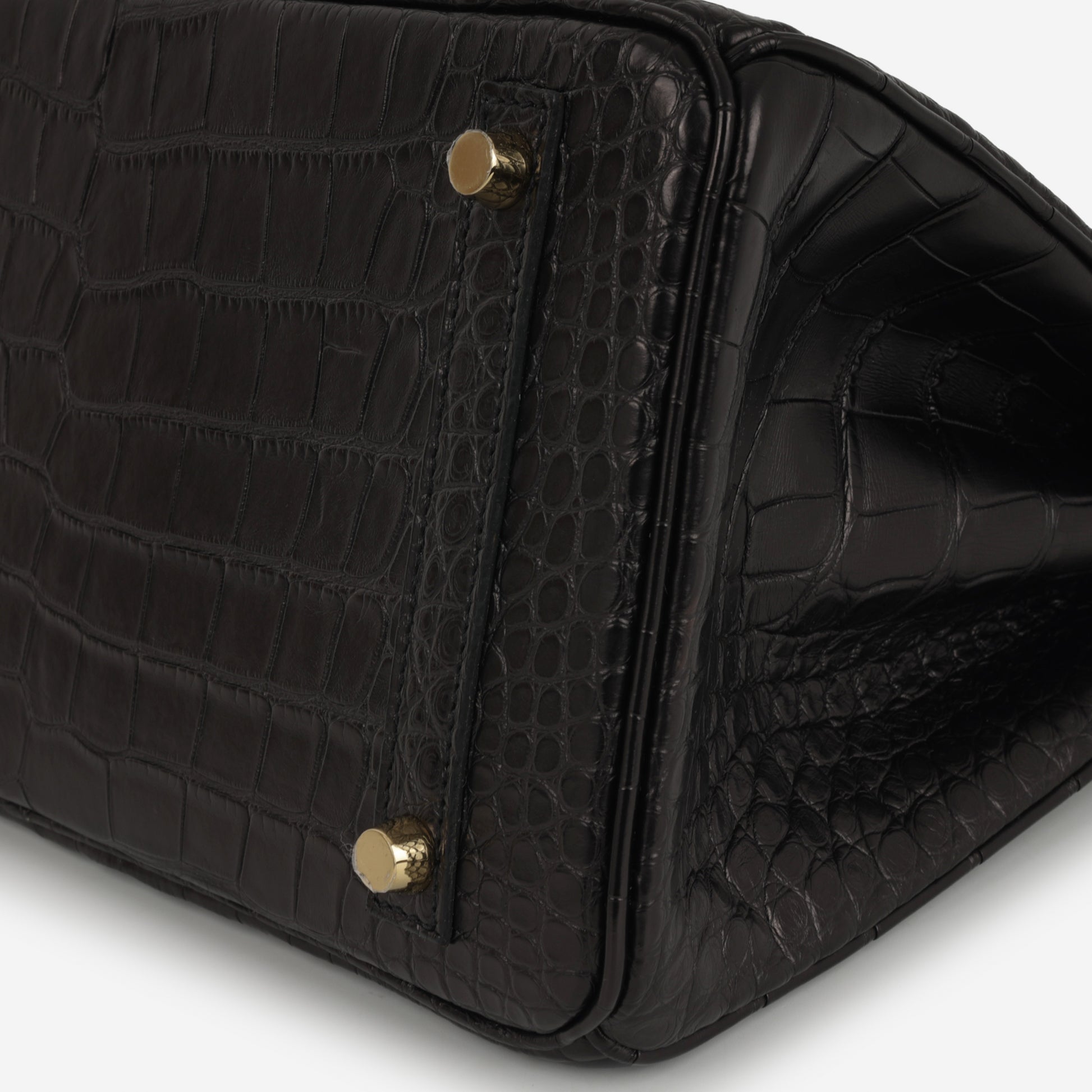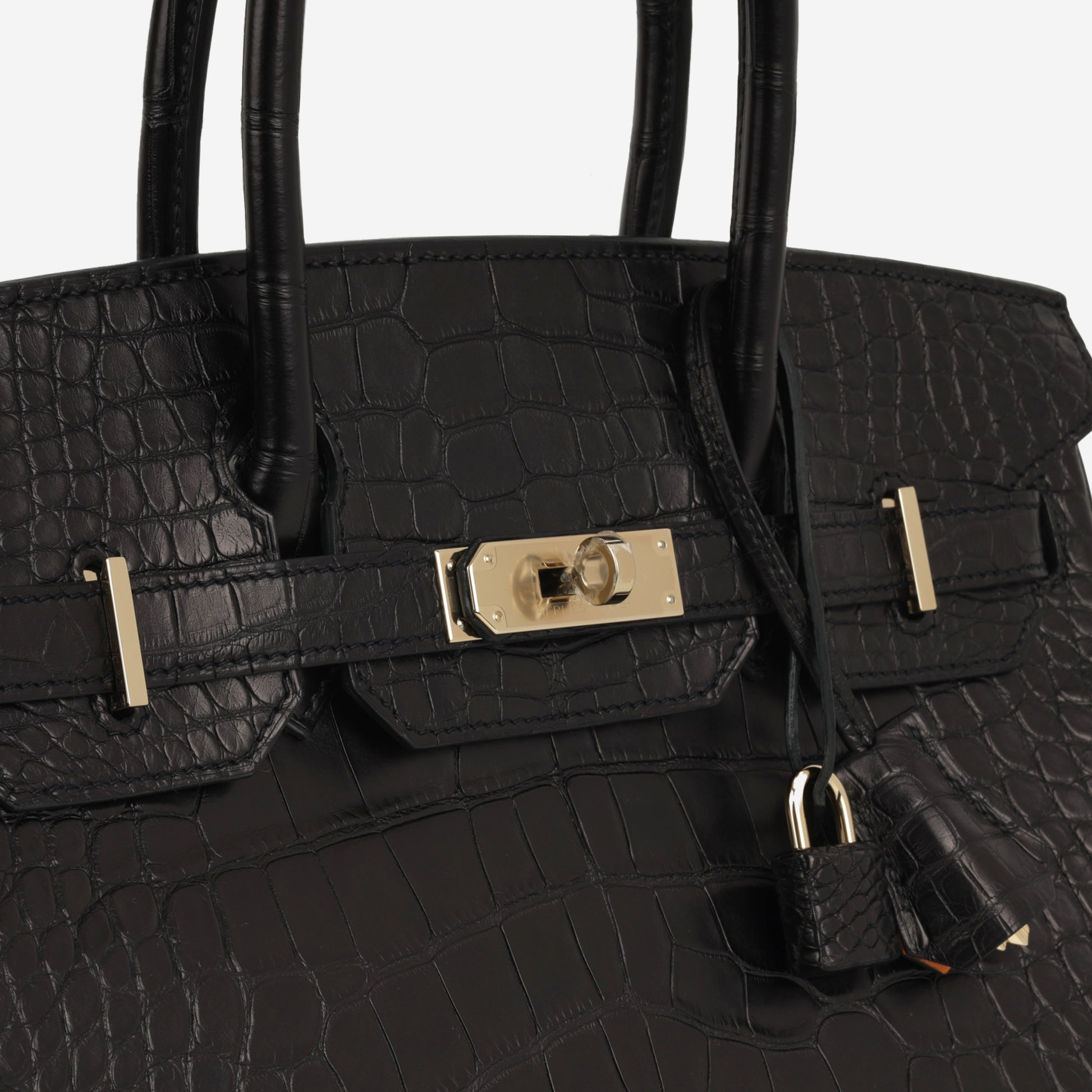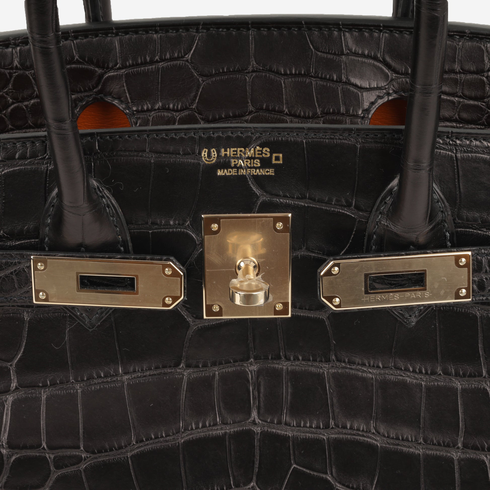 HSS Hermès Birkin 30 - Black Matte Alligator / Orange Interior | Permabrass Hardware