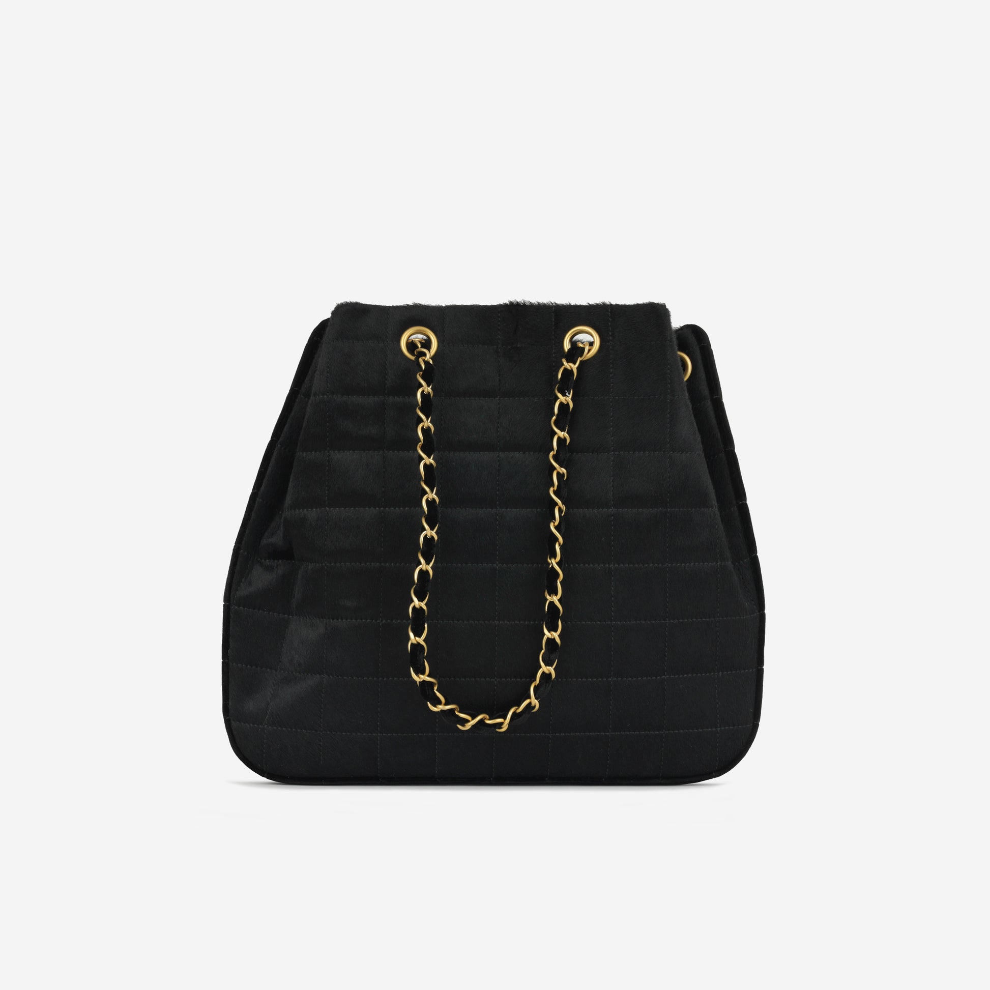 Elevate your everyday style with the luxurious Quilted Pony Hair and Velour Chocolate Bar Drawstring Tote Bag. This stunning accessory combines elegant textures and a unique design to make a bold statement while providing practicality and versatility for any occasion.