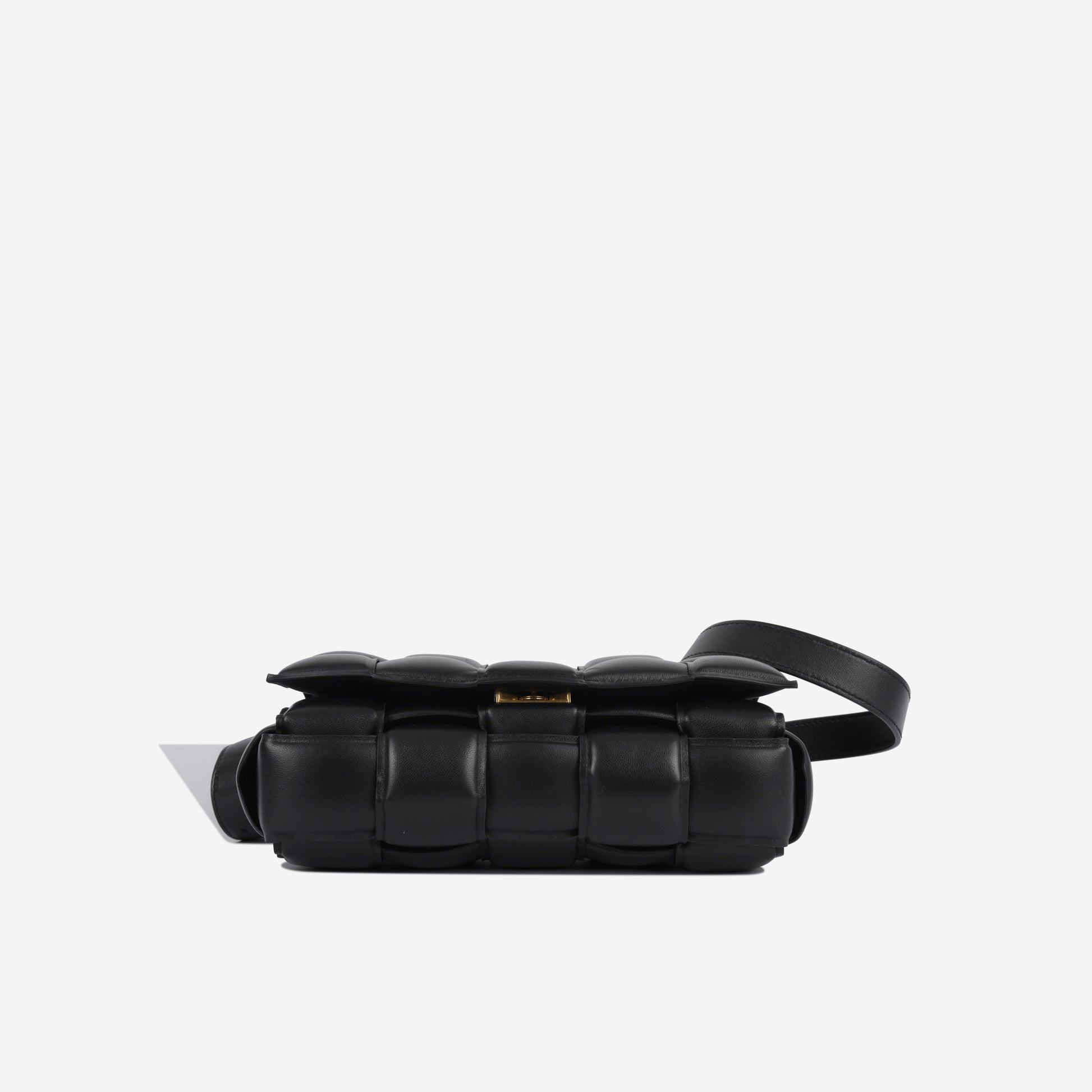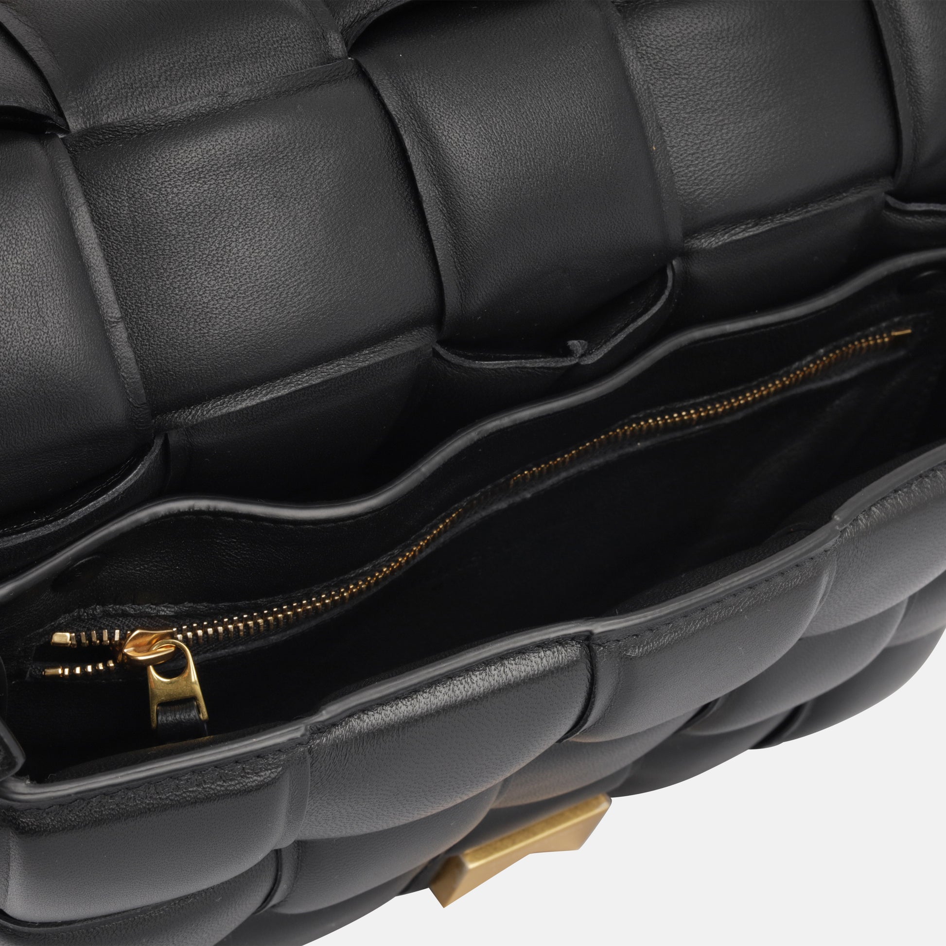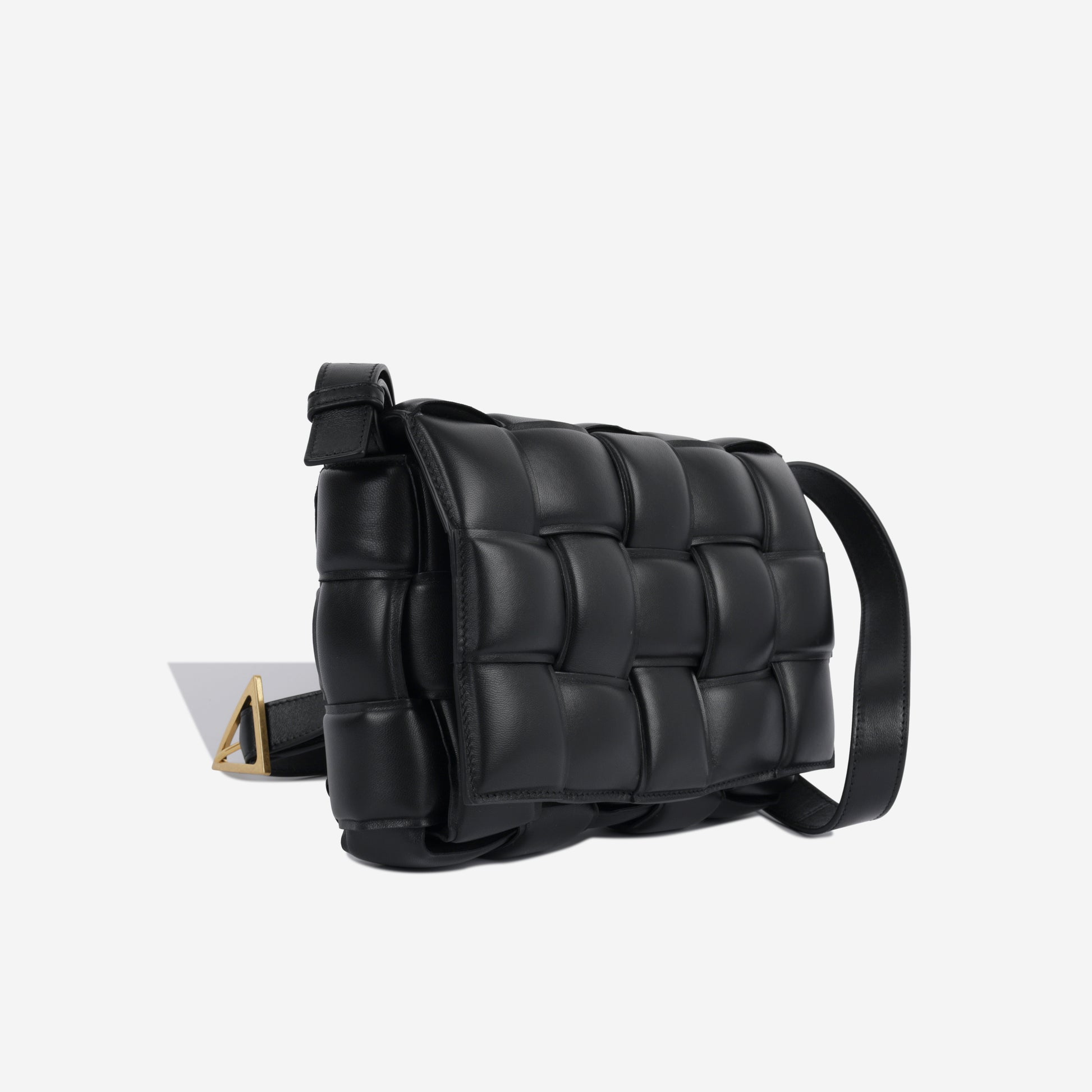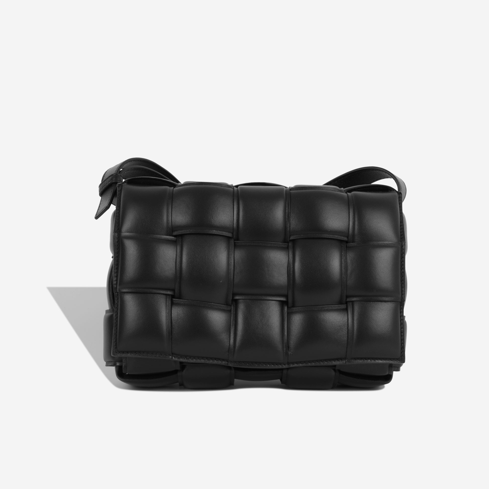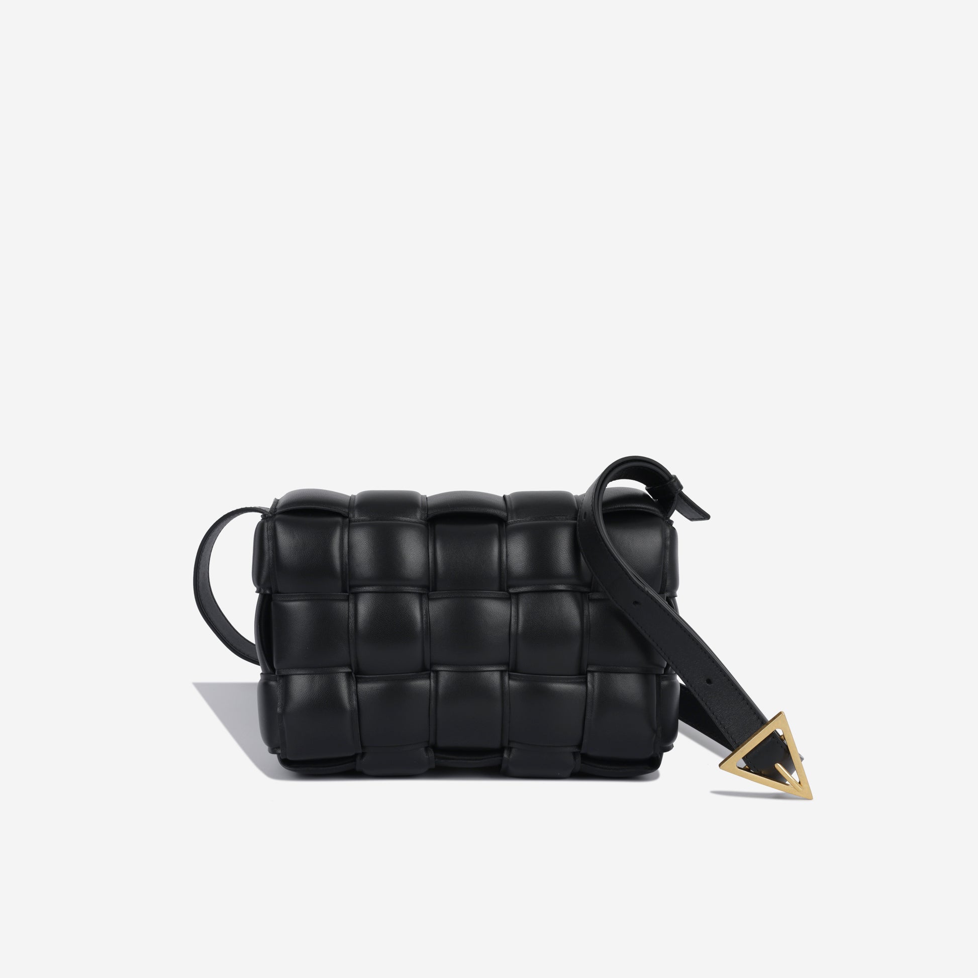Bottega Veneta present a playful, inventive and hugely popular twist to their classic intrecciato weaving technique for their 2020 hit, the Padded Cassette Bag. The Cassette offers a modern and functional interpretation of the classic woven crossbody bags typically offered by the brand. Carefully crafted in black leather, in a soft, boxy, structured silhouette, this bag offers practicality as well as an abundance of it-bag value.