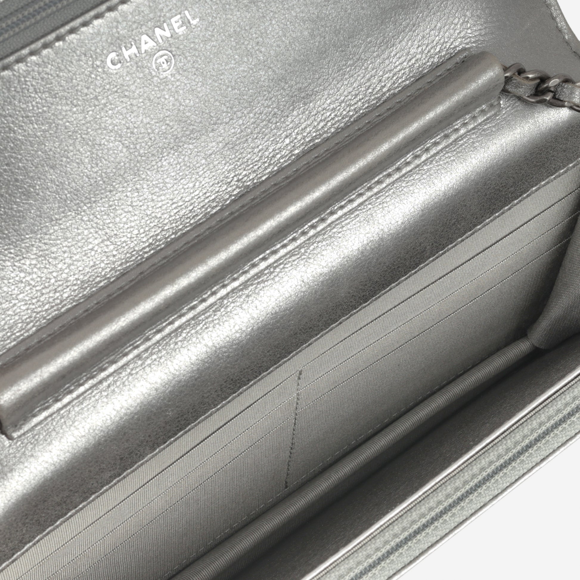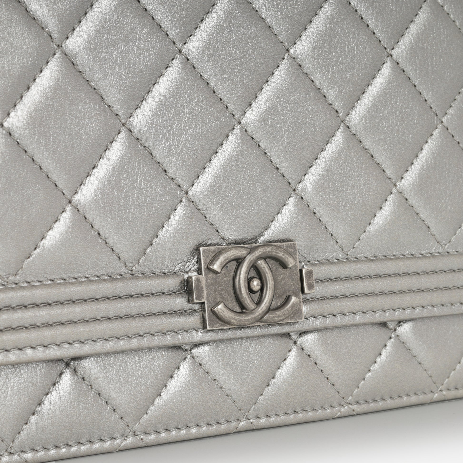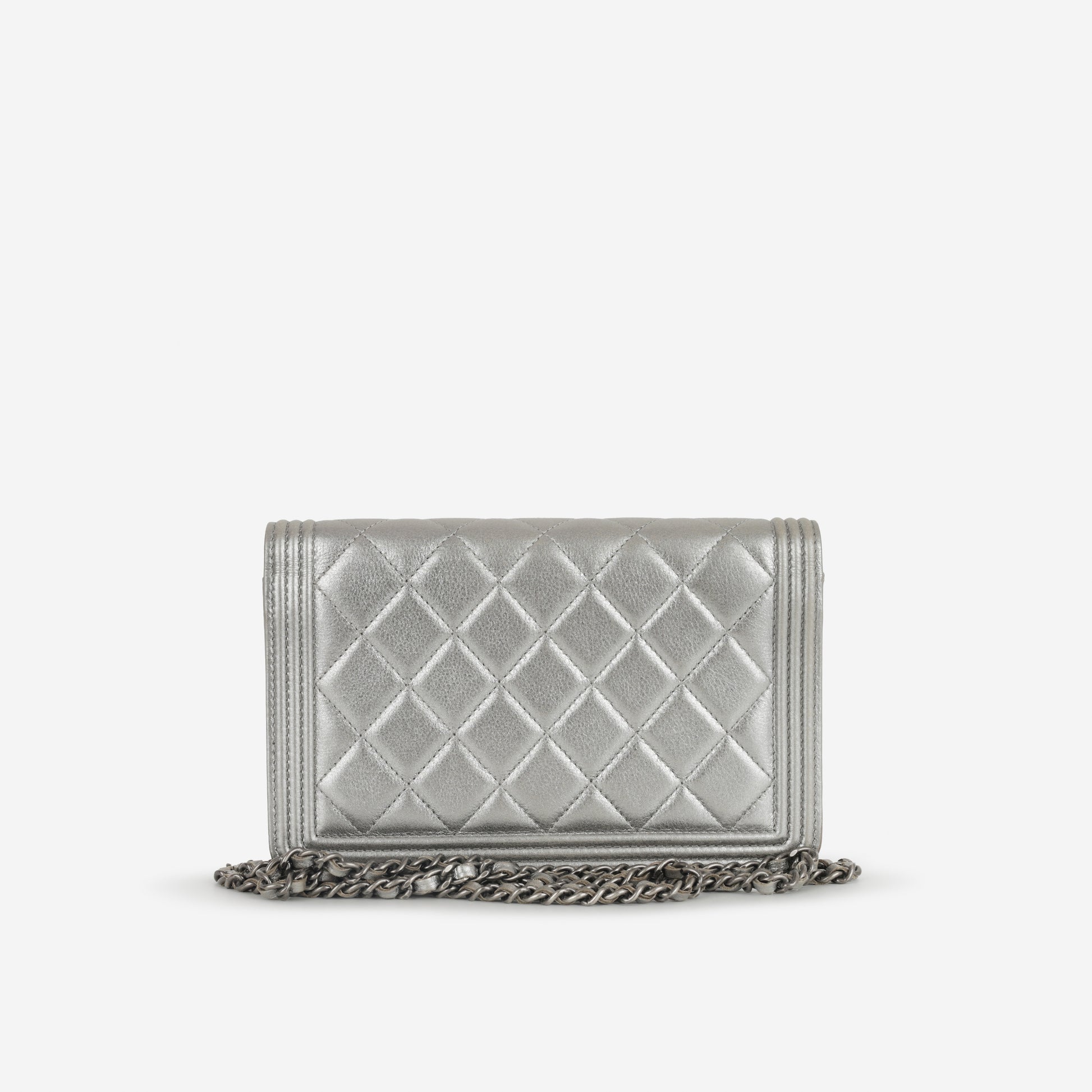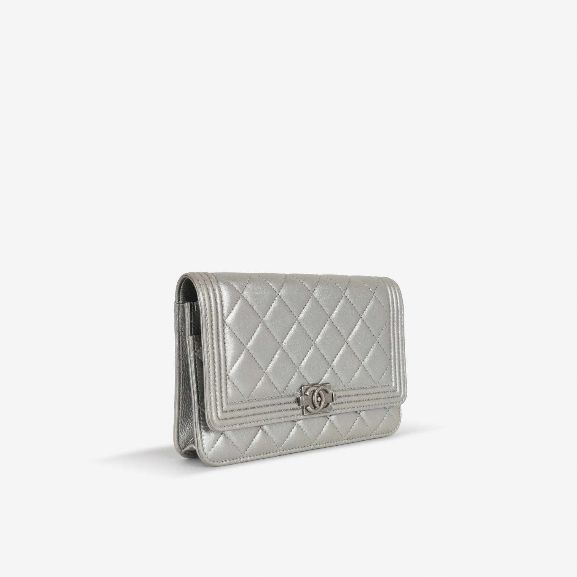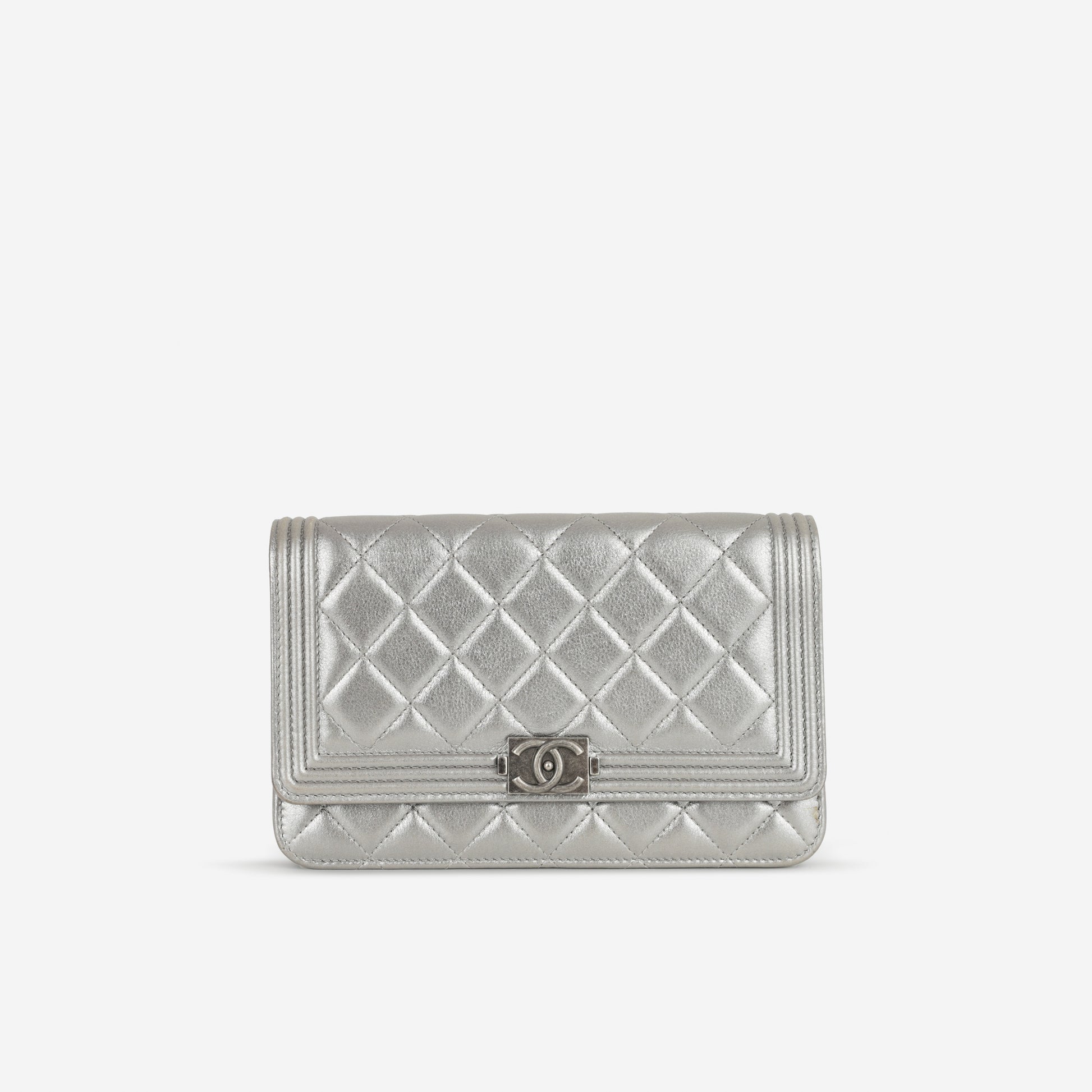 Chanel Boy Wallet On Chain - Silver Lambskin | Ruthenium Hardware