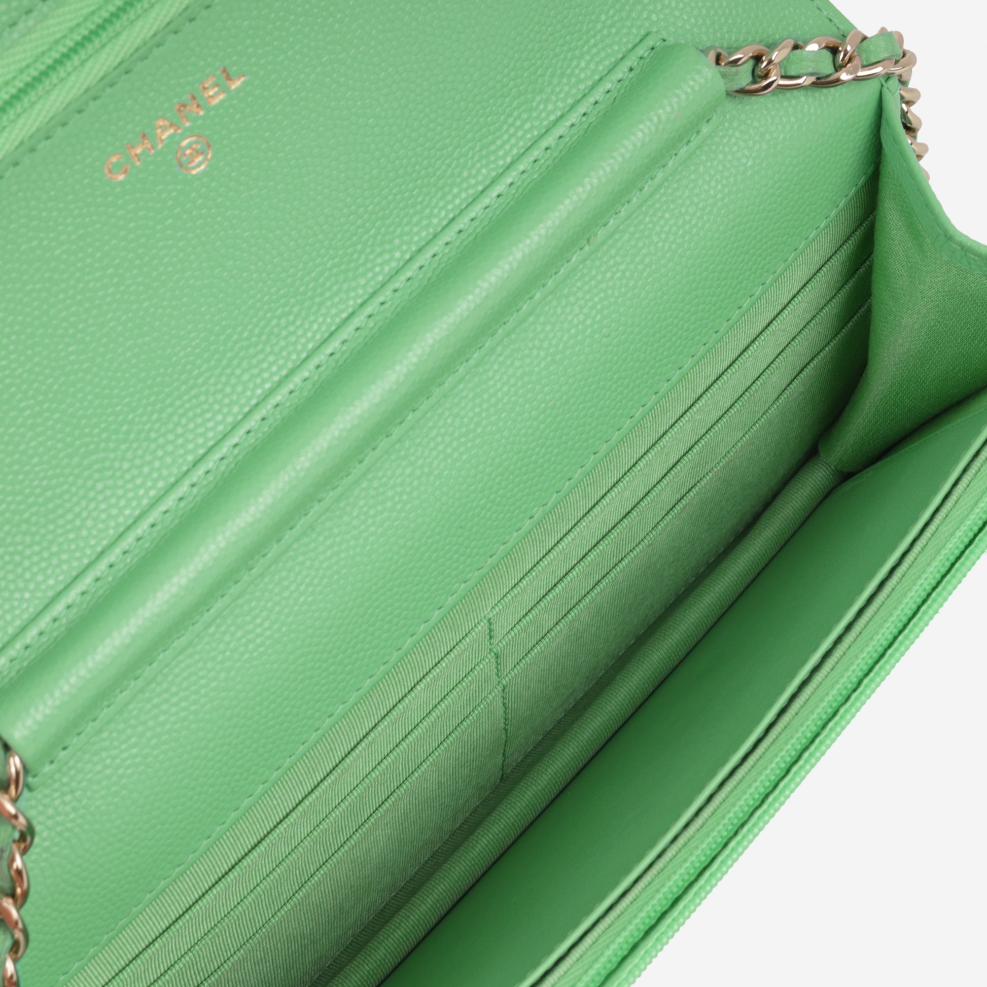 Chanel Classic Wallet on Chain - Green Caviar | Champagne Gold Hardware
