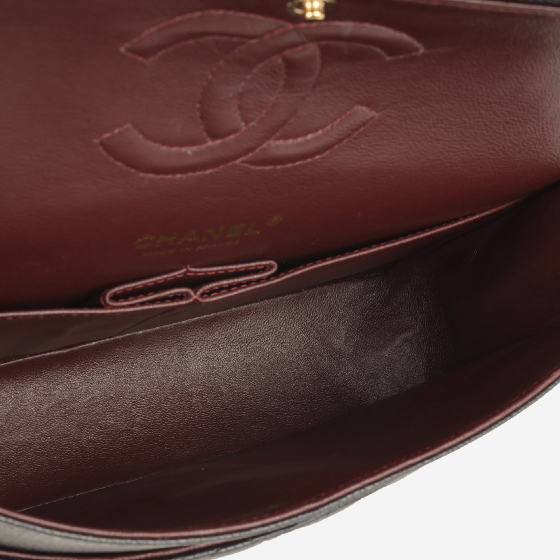 - Burgundy lambskin interior lining