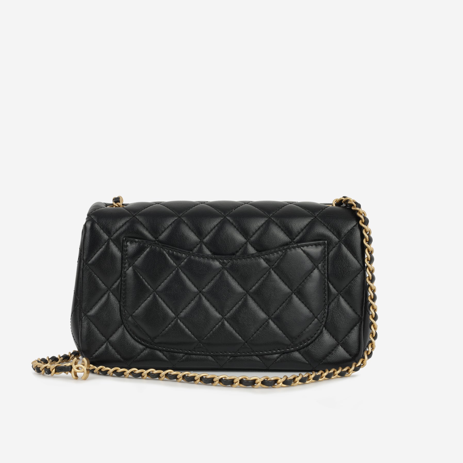Chanel Mini Flap Rectangular - Black Shiny Lambskin | Gold Hardware