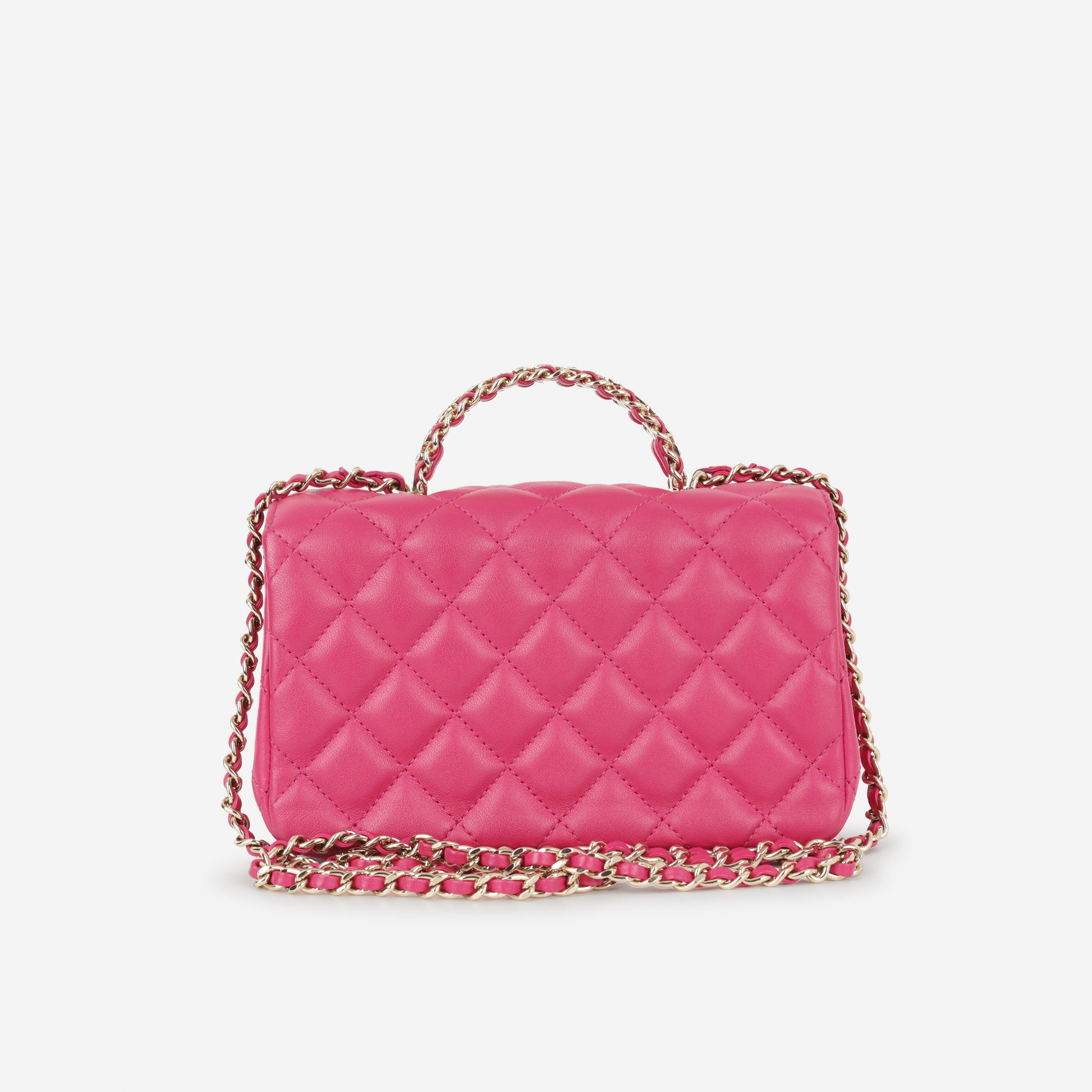 Chanel Mini Strass Top Handle Flap - Fuchsia Lambskin | Champagne Gold