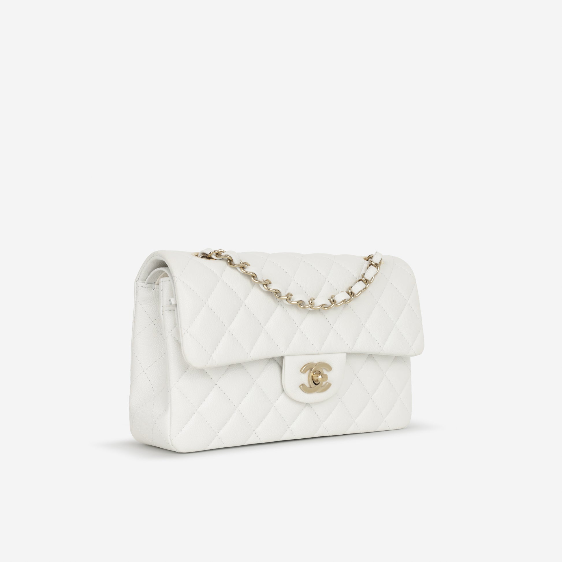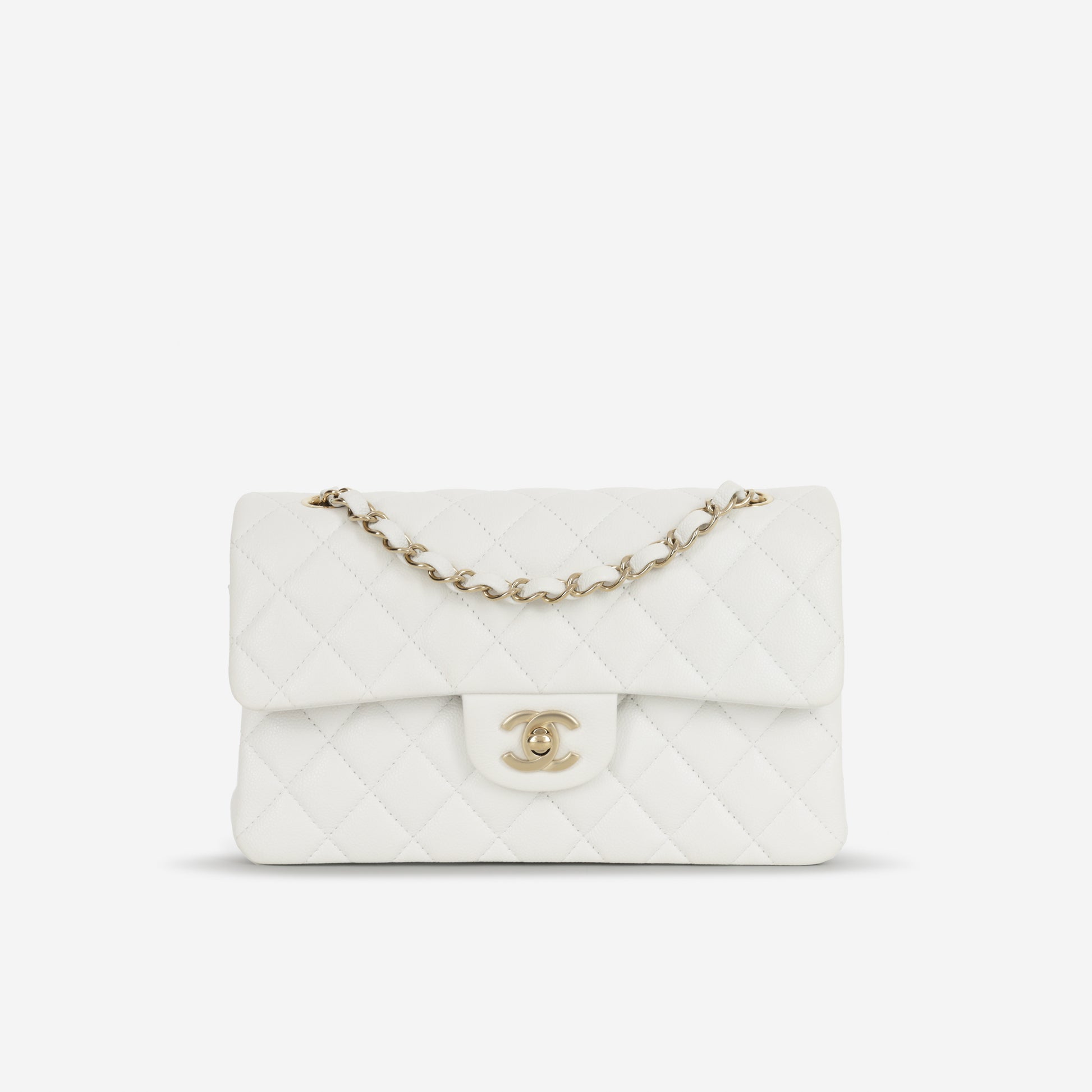 Chanel Small Classic Flap - White Caviar | Champagne Gold Hardware