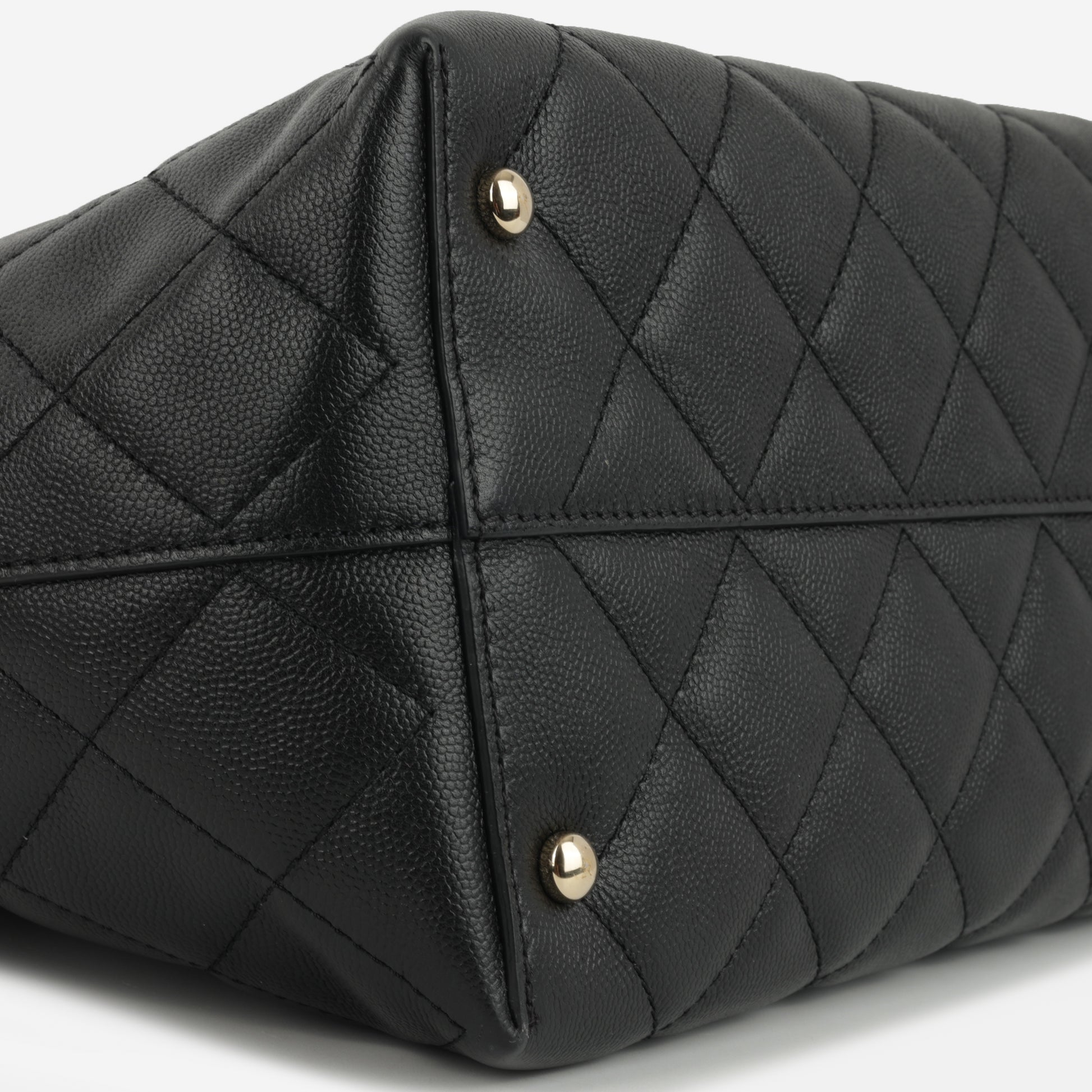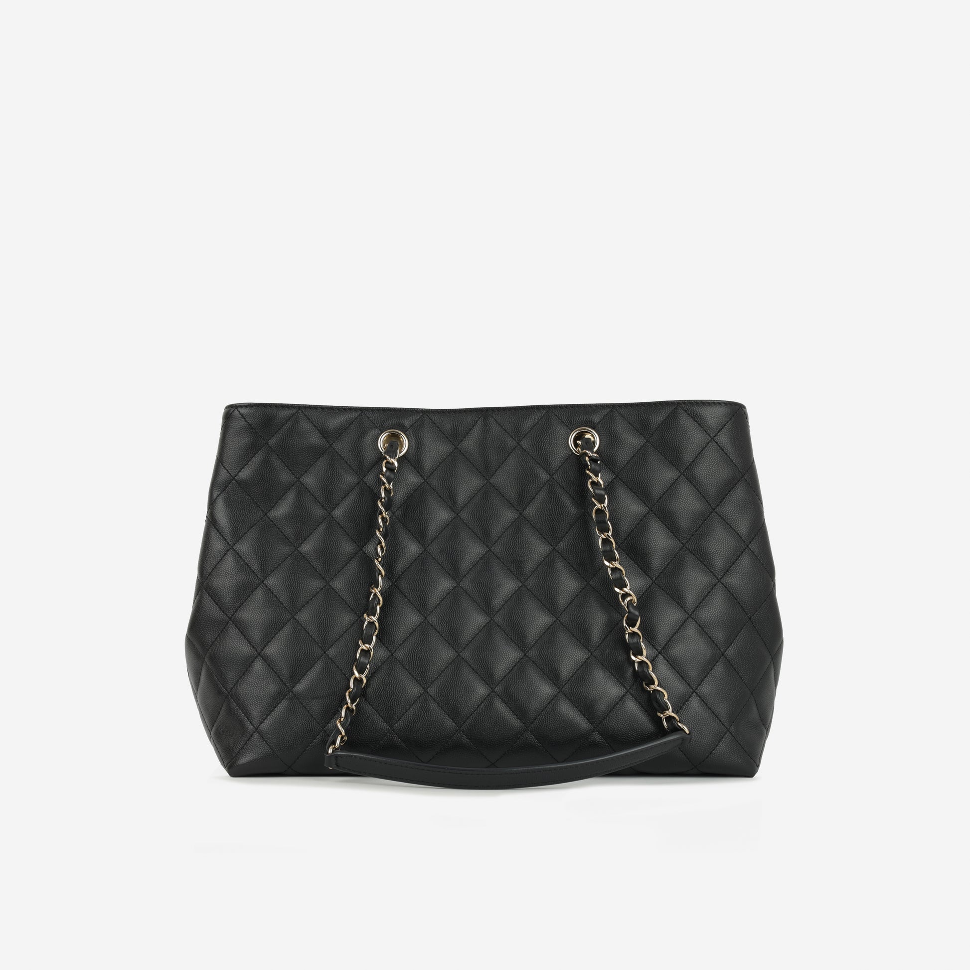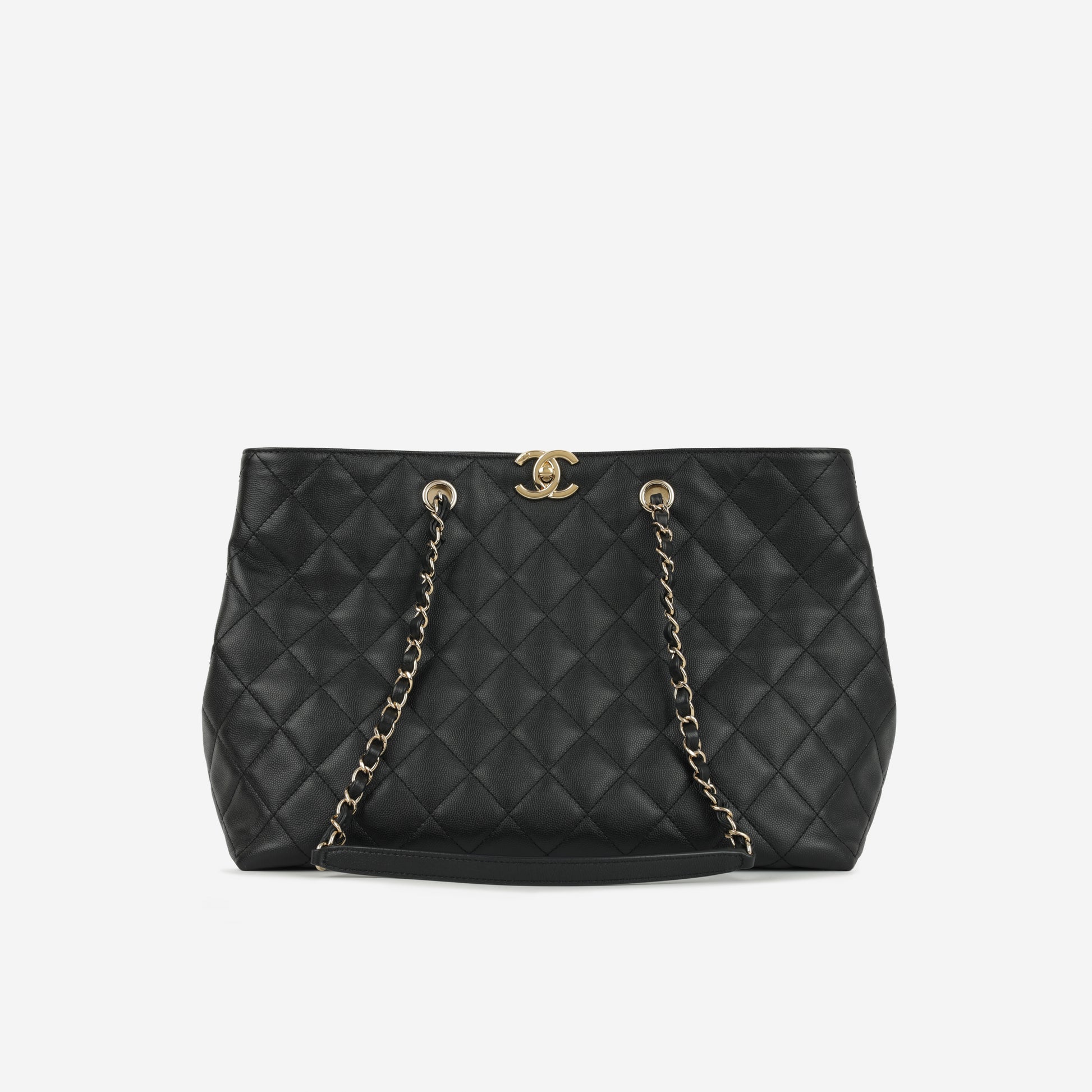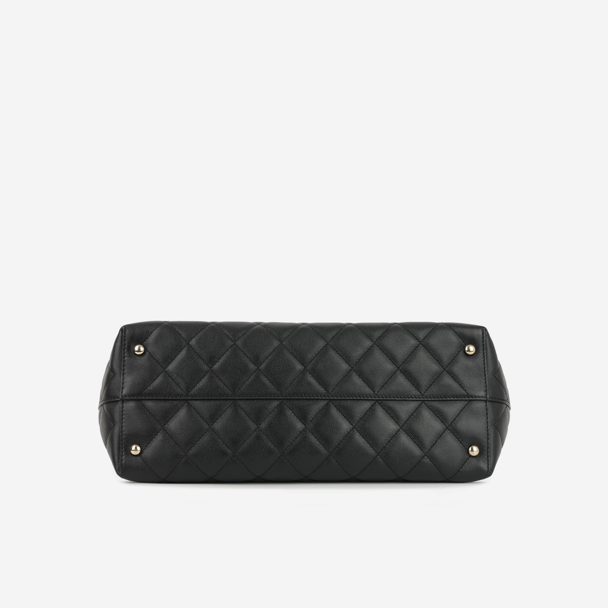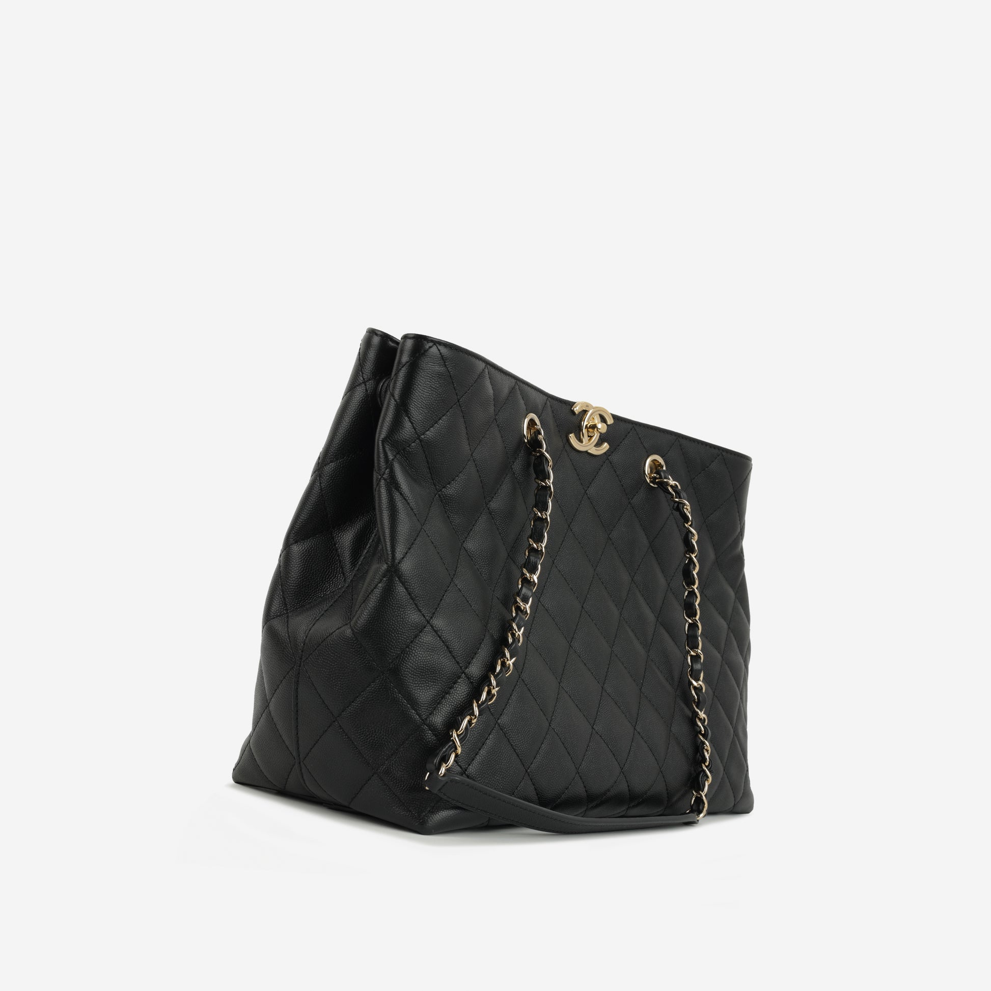 Made from sturdy caviar leather in timeless black, the Chanel Timeless Tote is the ideal daily bag for the busy, urban woman who carries a lot. Designed for the professional woman who needs to bring everything essential and more, this tote stands out as the ultimate choice. Combining elegance and utility, it includes 2 leather-and-chain shoulder straps, the signature CC Clasp and a roomy main compartment that fits books, laptops, binders, documents, and other essentials. This Chanel shopper is a distinguished and practical addition to any luxury handbag collection.