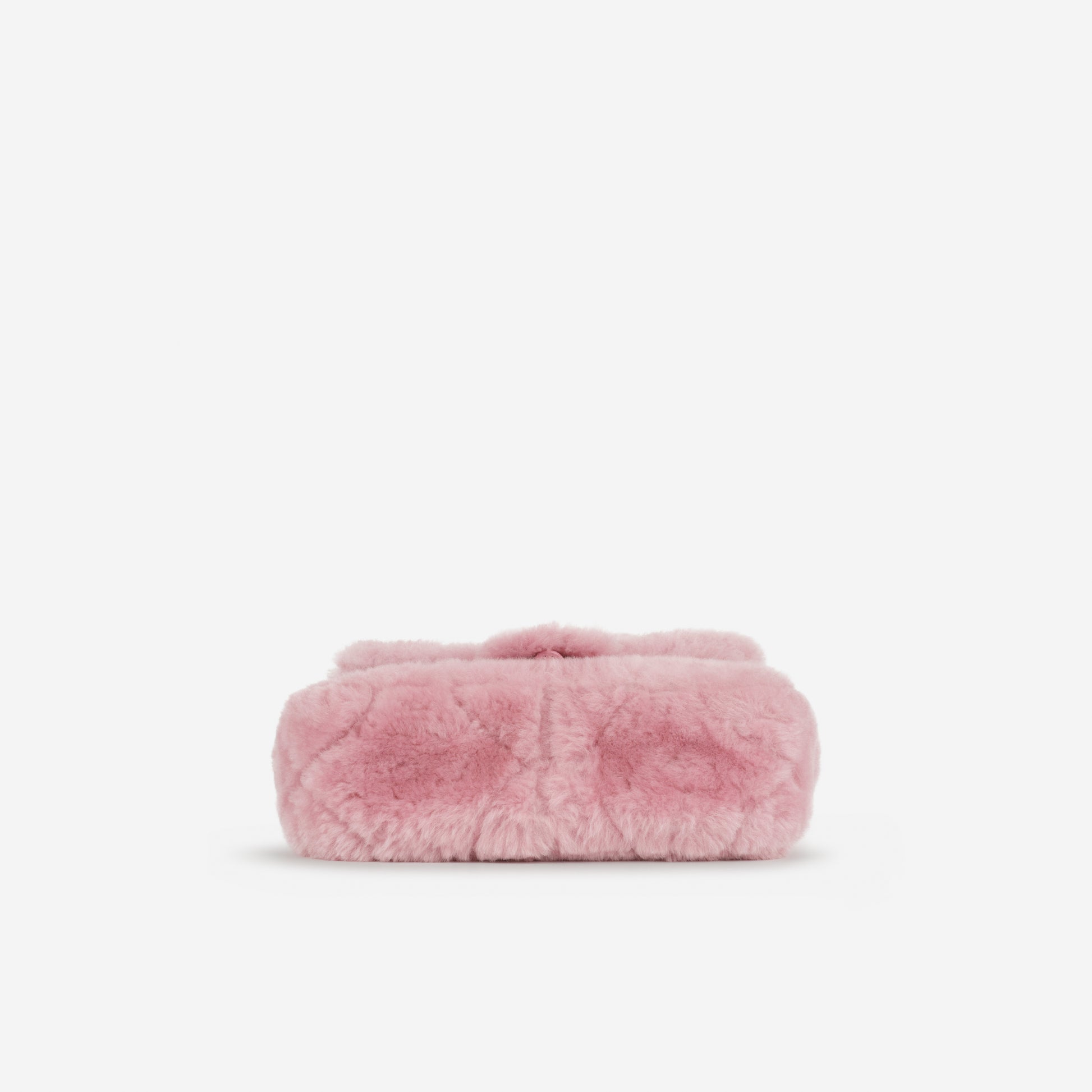 The Chanel 22S Quilted Flap in Pink Shearling is a rare, fashion-forward interpretation of an iconic classic. Crafted from plush shearling in a soft, feminine pink hue, this standout design blends cozy texture with timeless Chanel elegance. The gleaming gold hardware enhances its luxurious appeal, offering a radiant contrast to the playful yet sophisticated material.