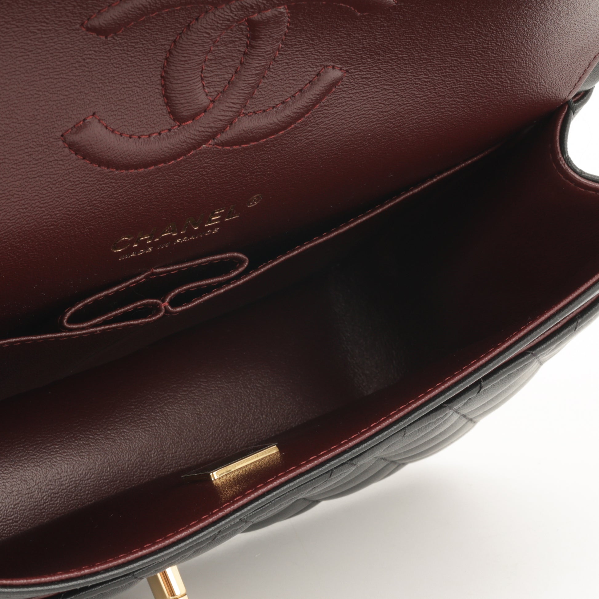 Timeless, iconic, and forever in fashion. The Chanel Medium Classic Flap Bag in black quilted lambskin with gold tone hardware is the ultimate expression of elegance. Crafted from buttery soft lambskin leather, it features Chanel’s signature double flap design, the iconic CC turn lock closure, and a leather woven chain strap that can be worn on the shoulder or crossbody.
