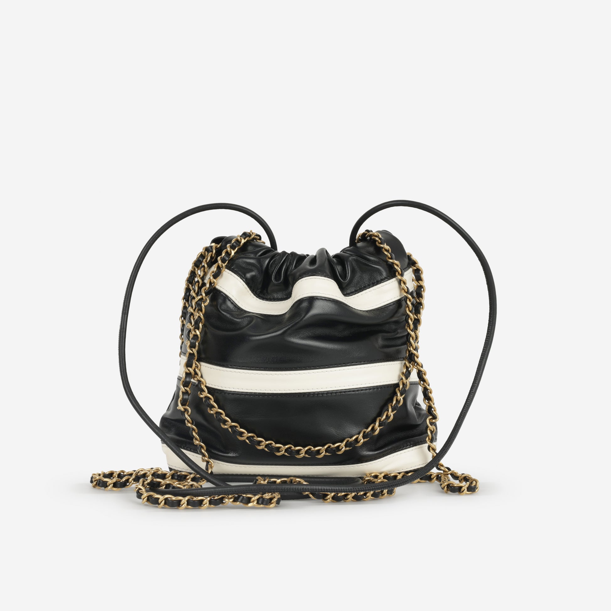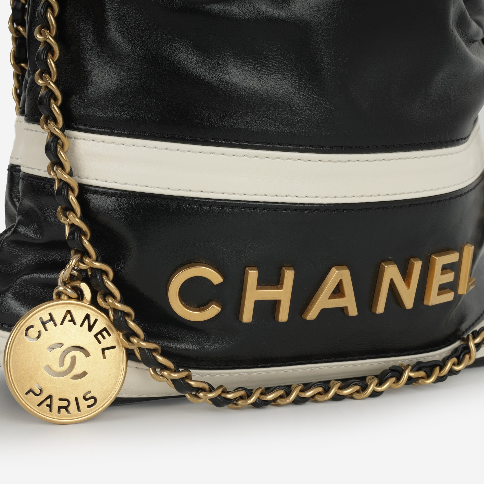 Chanel 24S Mini 22 - Black / White Striped Calfskin | Gold Hardware