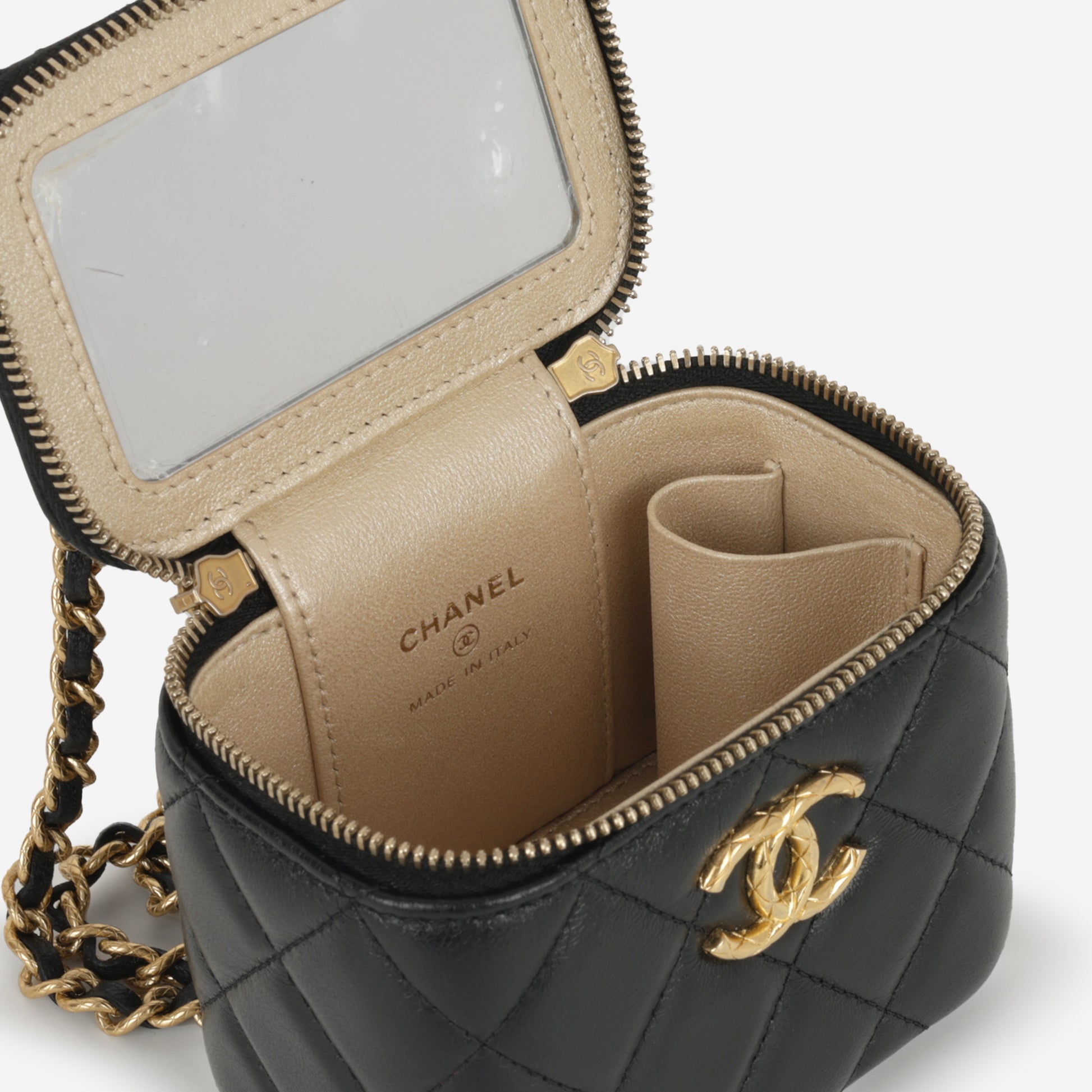 Chanel Mini Square Vanity on Chain - Black Lambskin | Gold Hardware