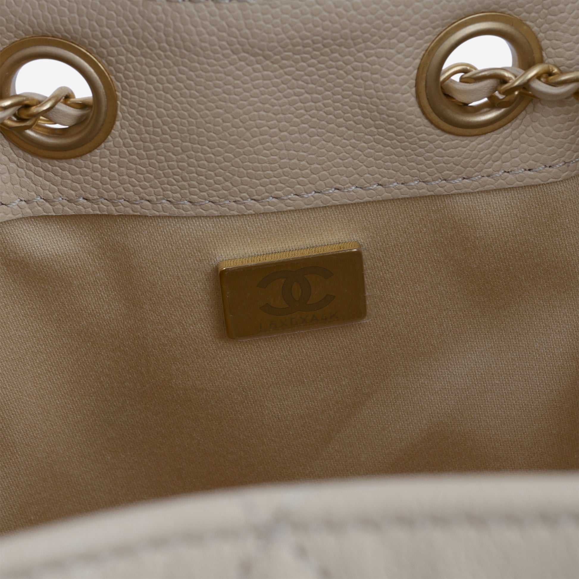 - Dark beige quilted caviar leather