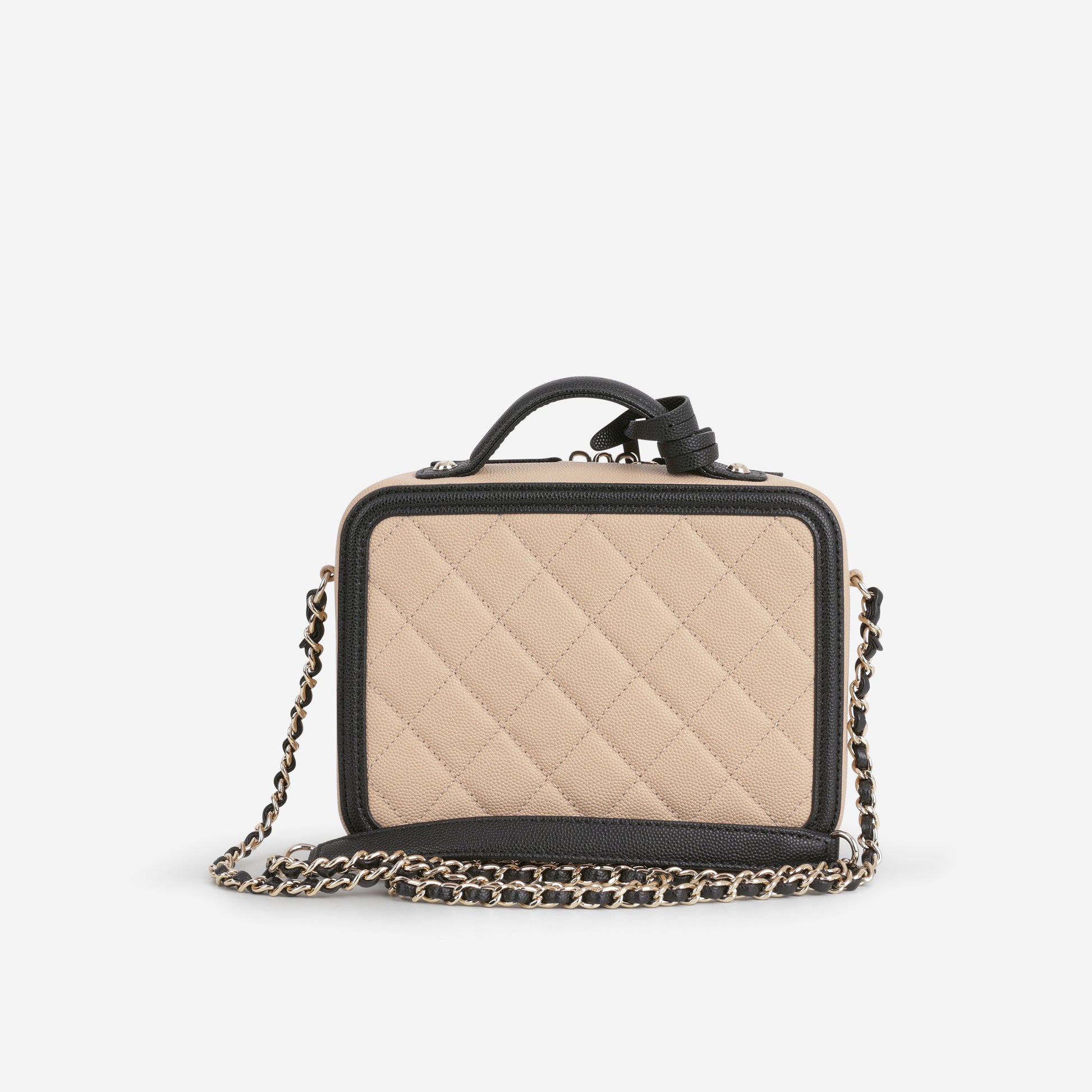 Chanel Small Filigree CC Vanity Case - Beige/Black Caviar | Champagne Gold Hardware
