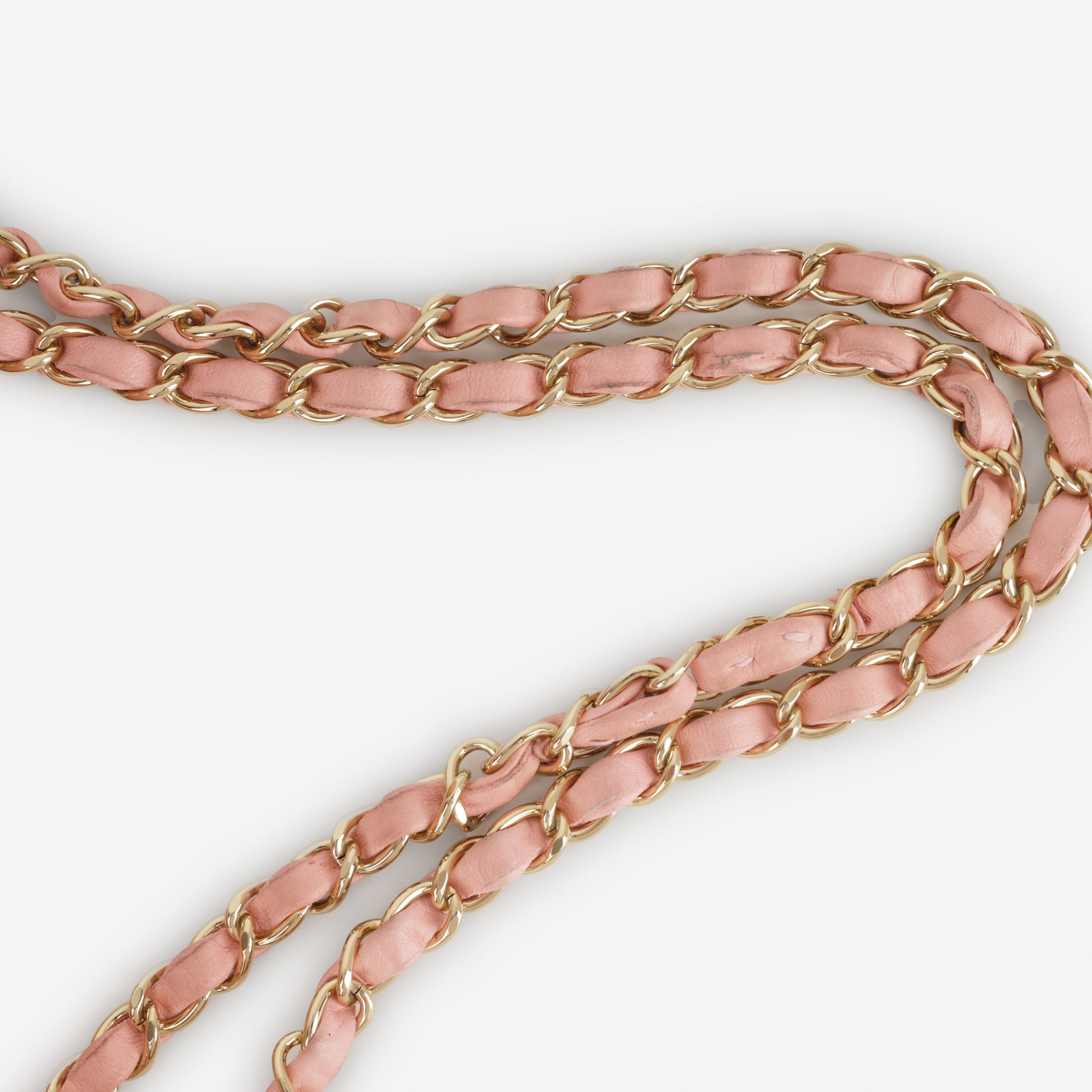Chanel Vintage Medium Classic Flap in pink lambskin with 24k gold hardware. Well-loved but in great condition, this iconic bag combines timeless elegance with a rare pastel charm. A collectible piece and perfect addition to any luxury handbag collection. Available now at Bagista.