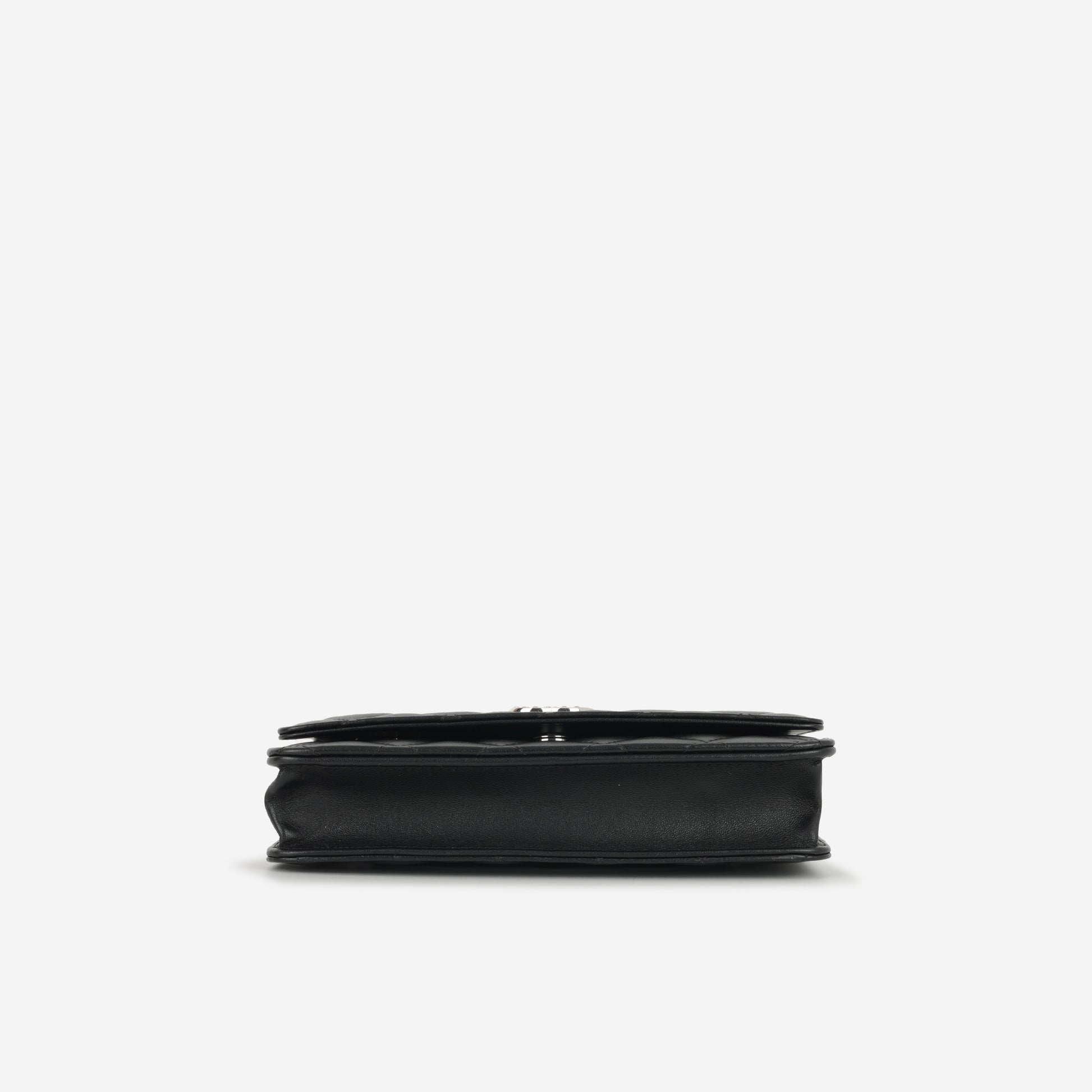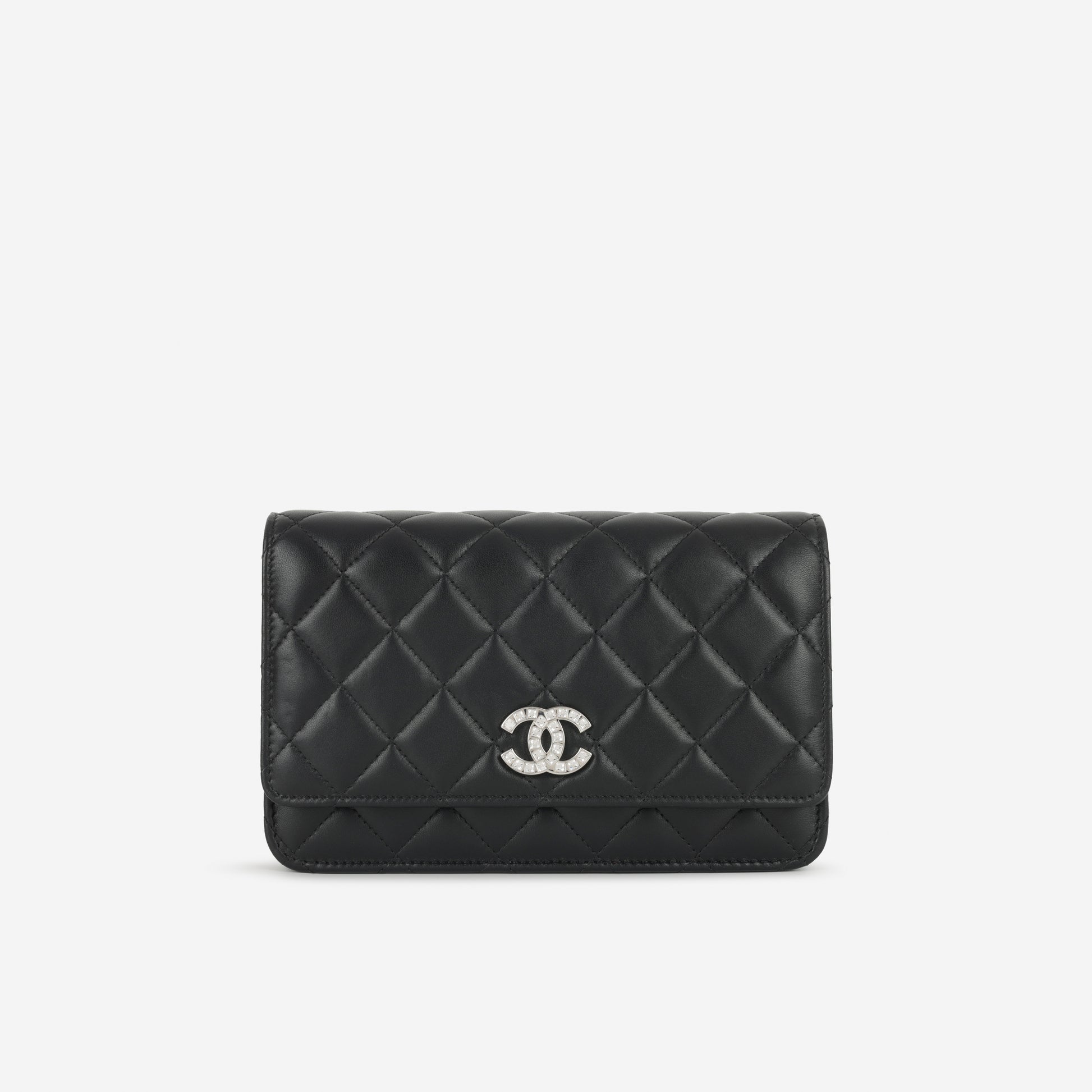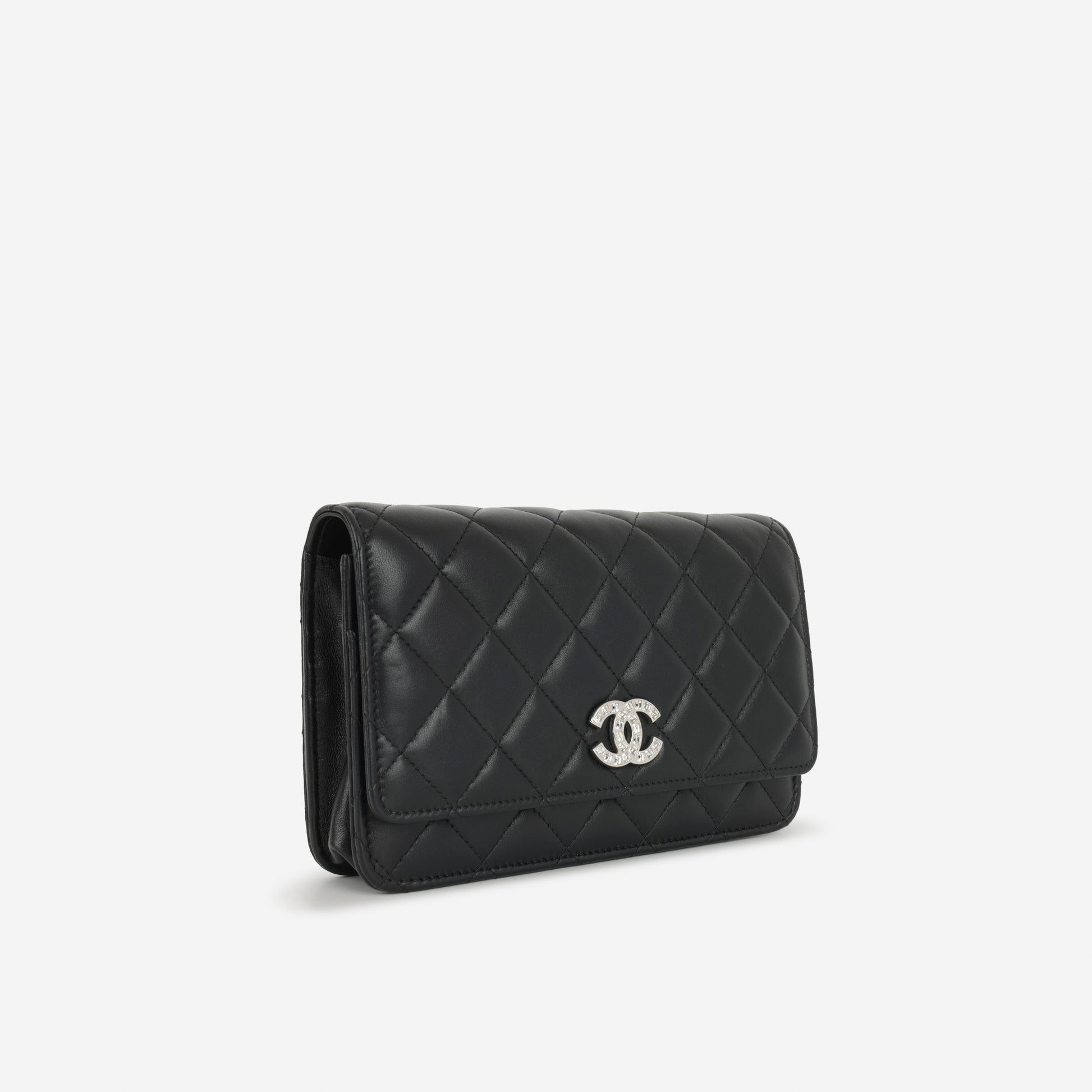 Chanel Wallet On Chain - Black Lambskin with Strass CC | Silver Hardware