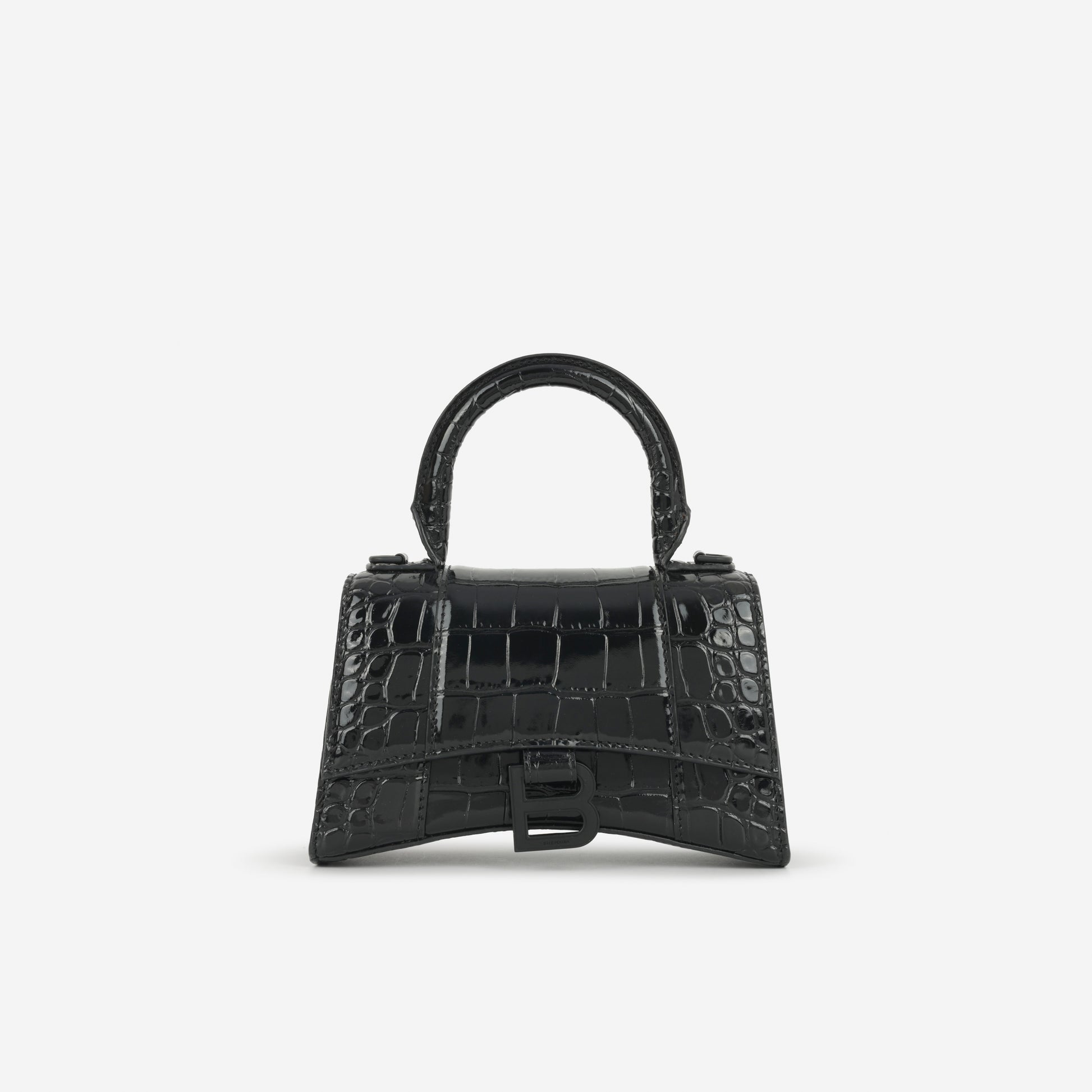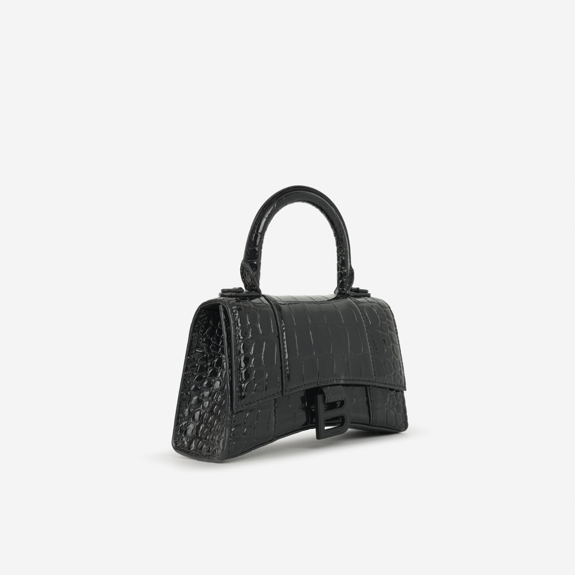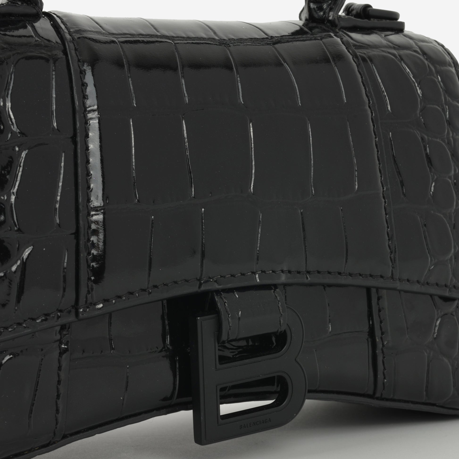 Balenciaga XS Hourglass - Black Croc Embossed Calfskin | Black Hardware