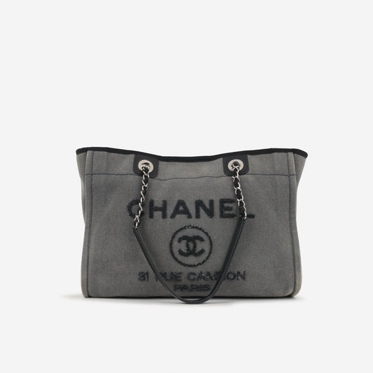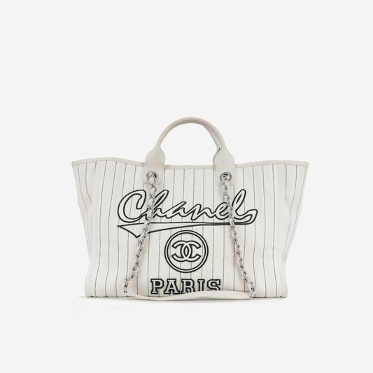 Chanel Large Deauville Bag - Beige Canvas | Silver Hardware