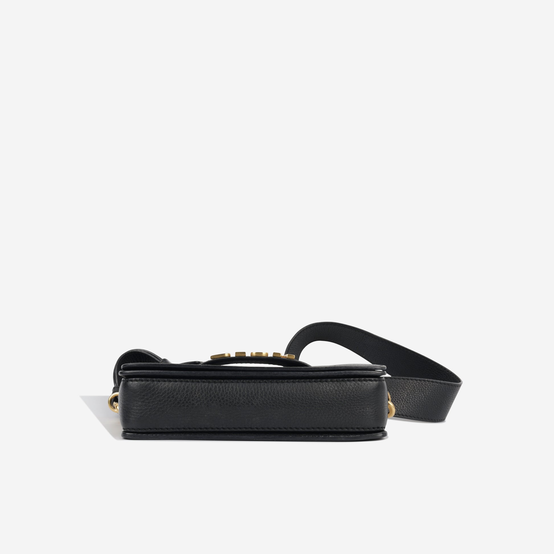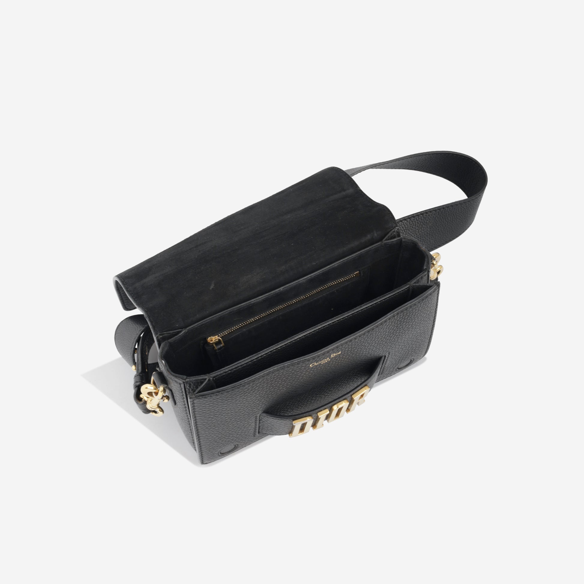 A logo and brand we all know and love. From the Diorevolution collection, Maria Grazia Chiuri presents this rocker chic, contemporary cross body bag - perfect for a modern young woman with a stylish edge and a love for luxury. Crafted from grained black leather and prominent gold tone hardware, this bag is both practical and stylish. Carry all your every day necessities in style by throwing them in the spacious interior compartment, as well as an additional slip pocket, and two mobile phone pockets.