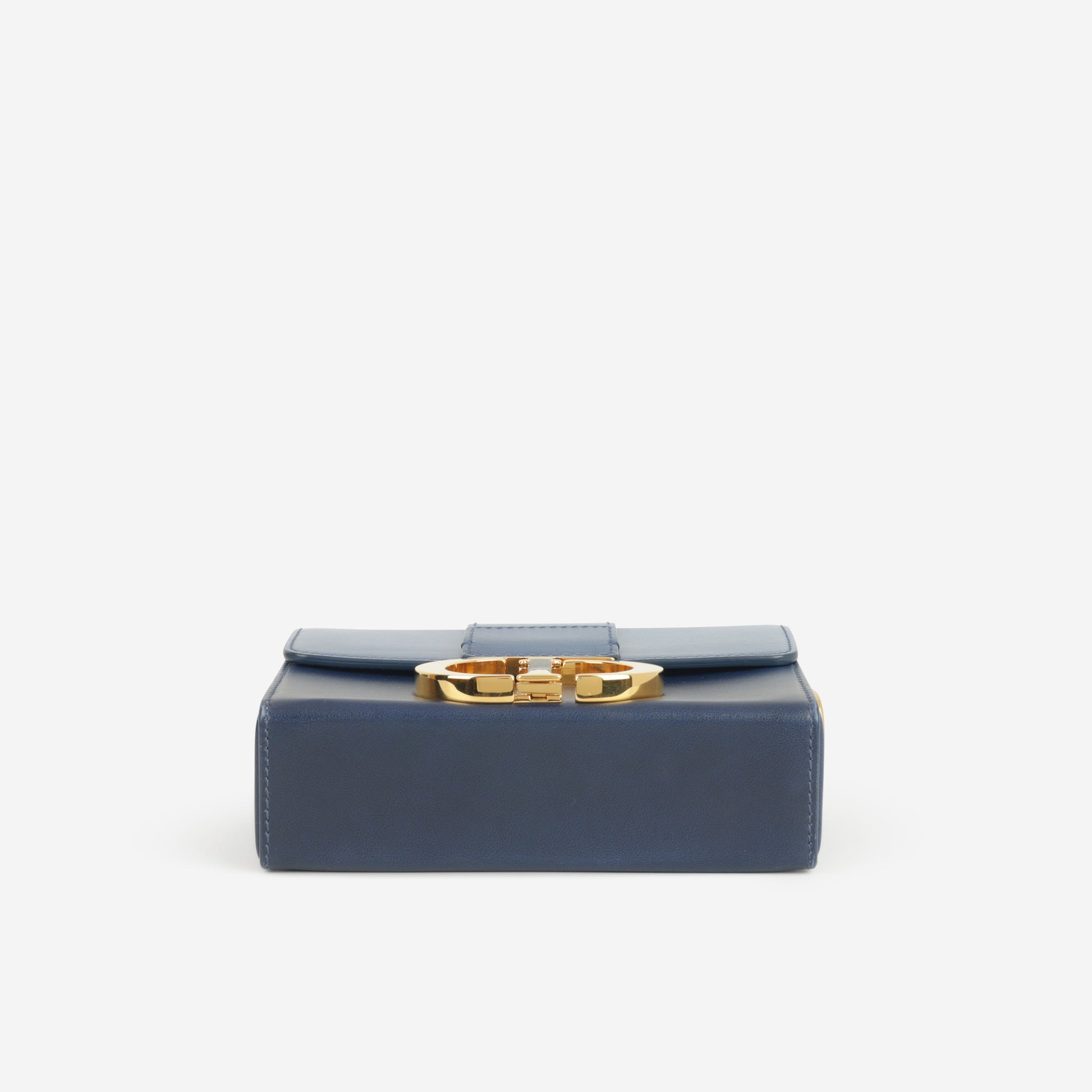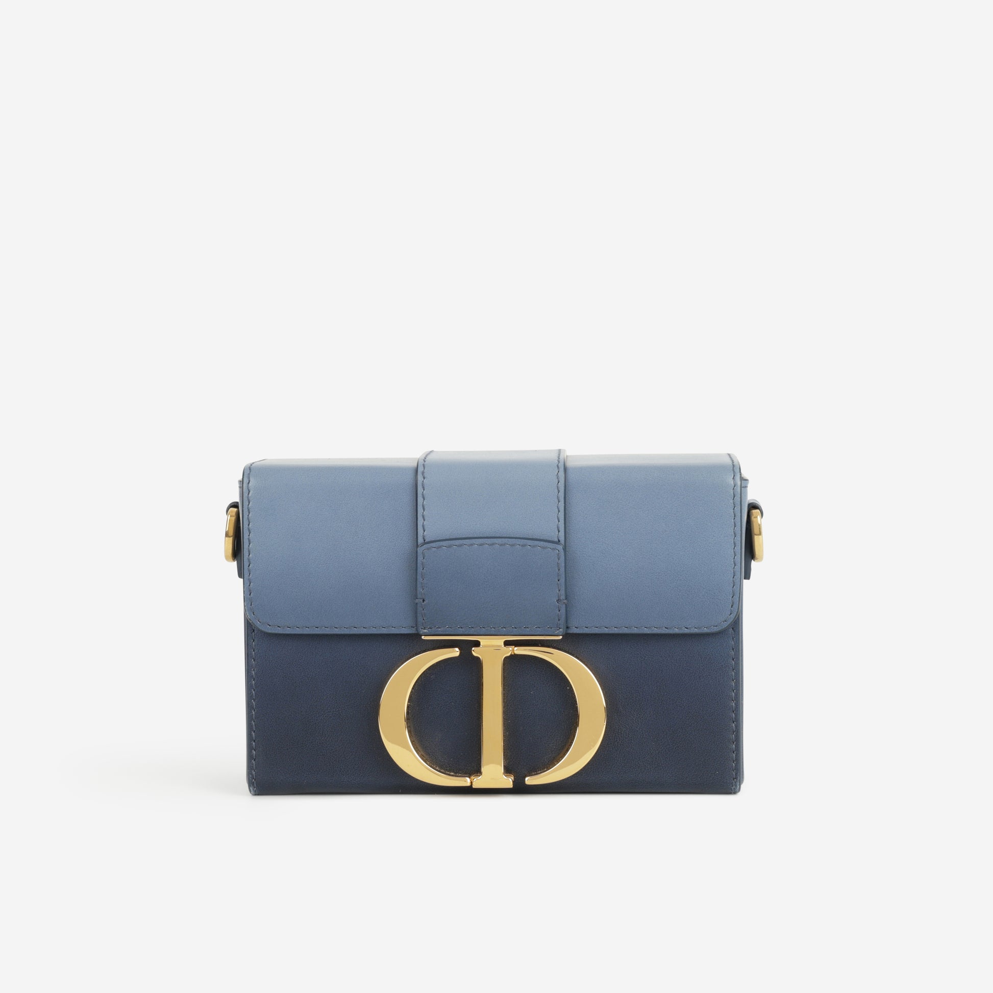 The Dior 30 Montaigne Mini Bag in blue ombre calfskin with gold hardware features a structured silhouette with CD clasp and adjustable strap for shoulder or crossbody wear. Presented in excellent condition. Fully authenticated by our in-house experts and available to shop online or view in-store at Bagista.