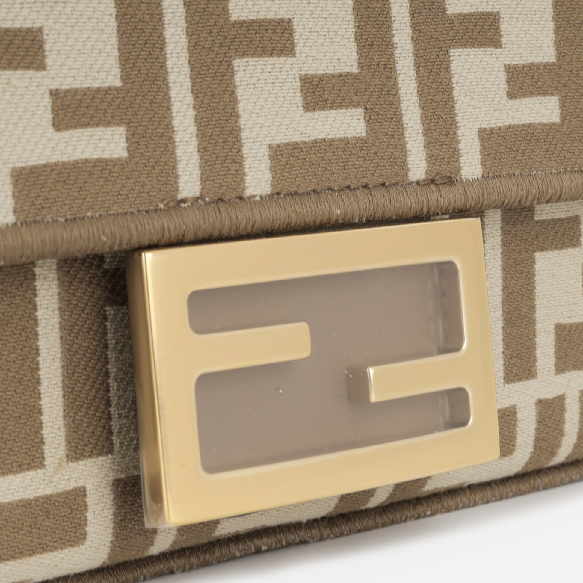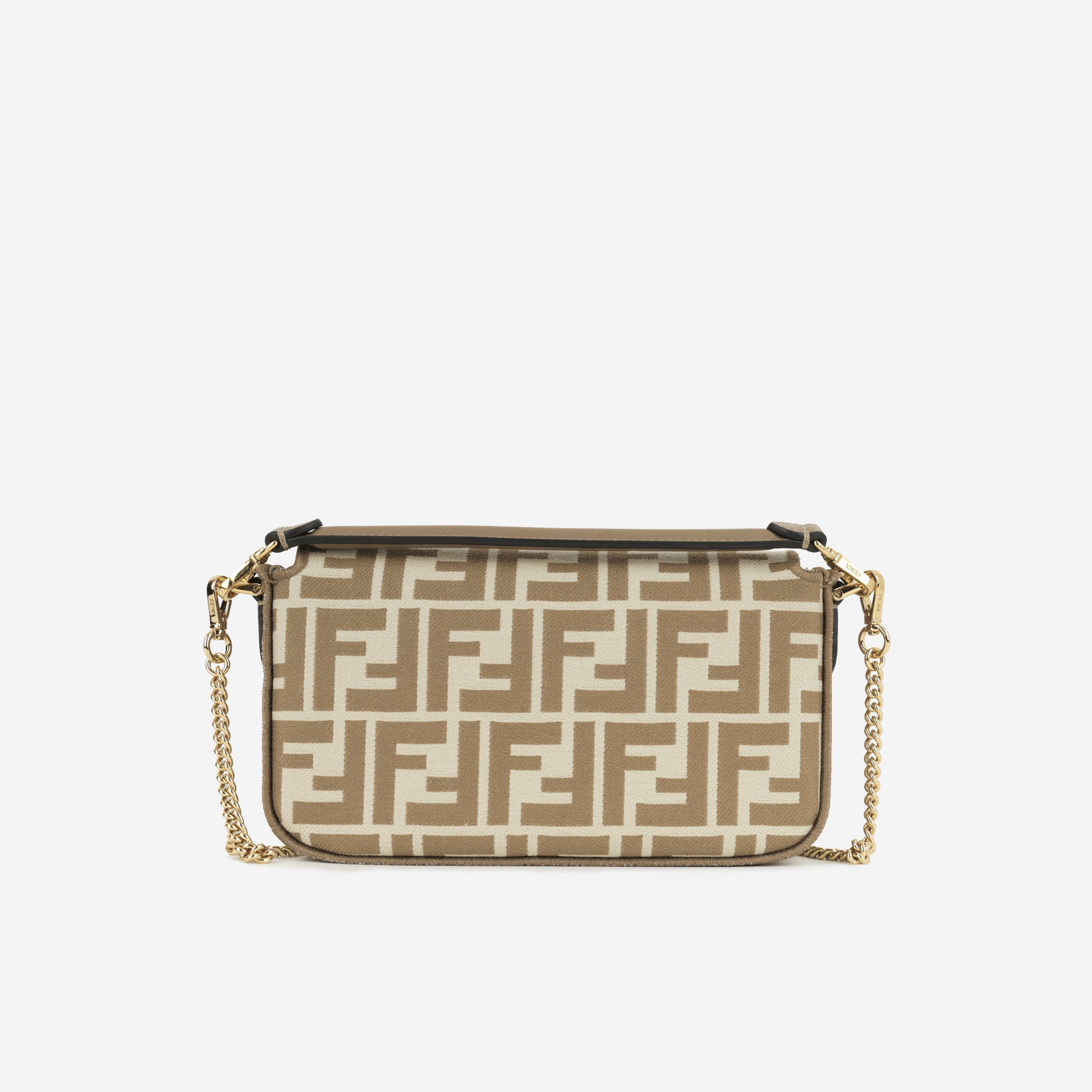 Fendi Baguette Chain Mini - Cappuccino FF Jacquard | Gold Hardware
