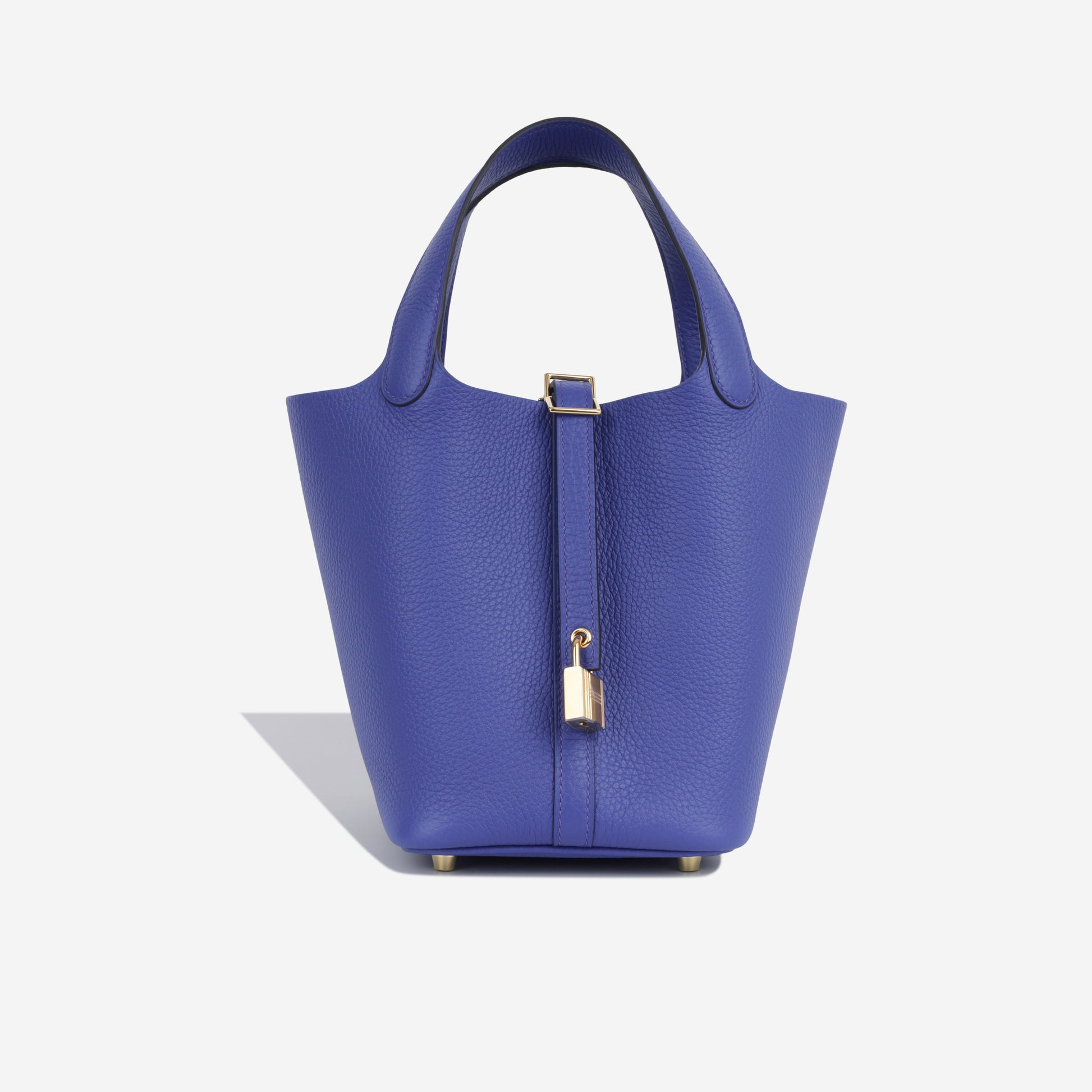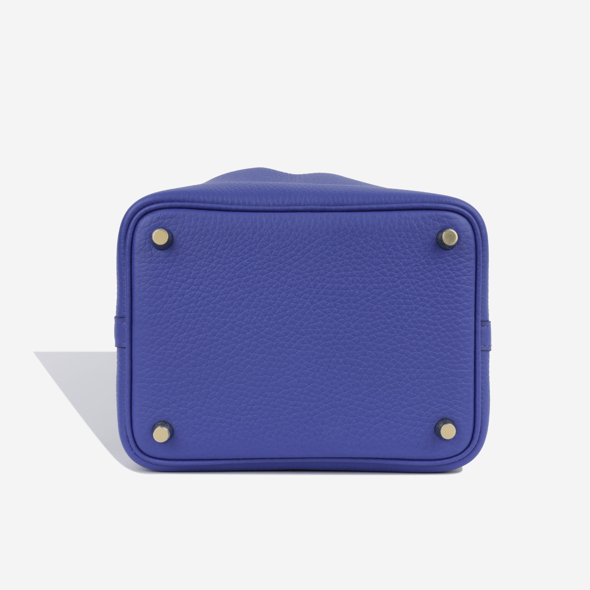 Carefully crafted from supple, clemence leather, Hermès presents their stunning mini Picotin 18 bag in a beautiful combination of blue royal and accented with gold tone hardware. Hermès is acclaimed for their leather quality, as well as being at the very top of the fashion hierarchy. Simple, elegant, and understated, each Hermès bag is timeless and tasteful.