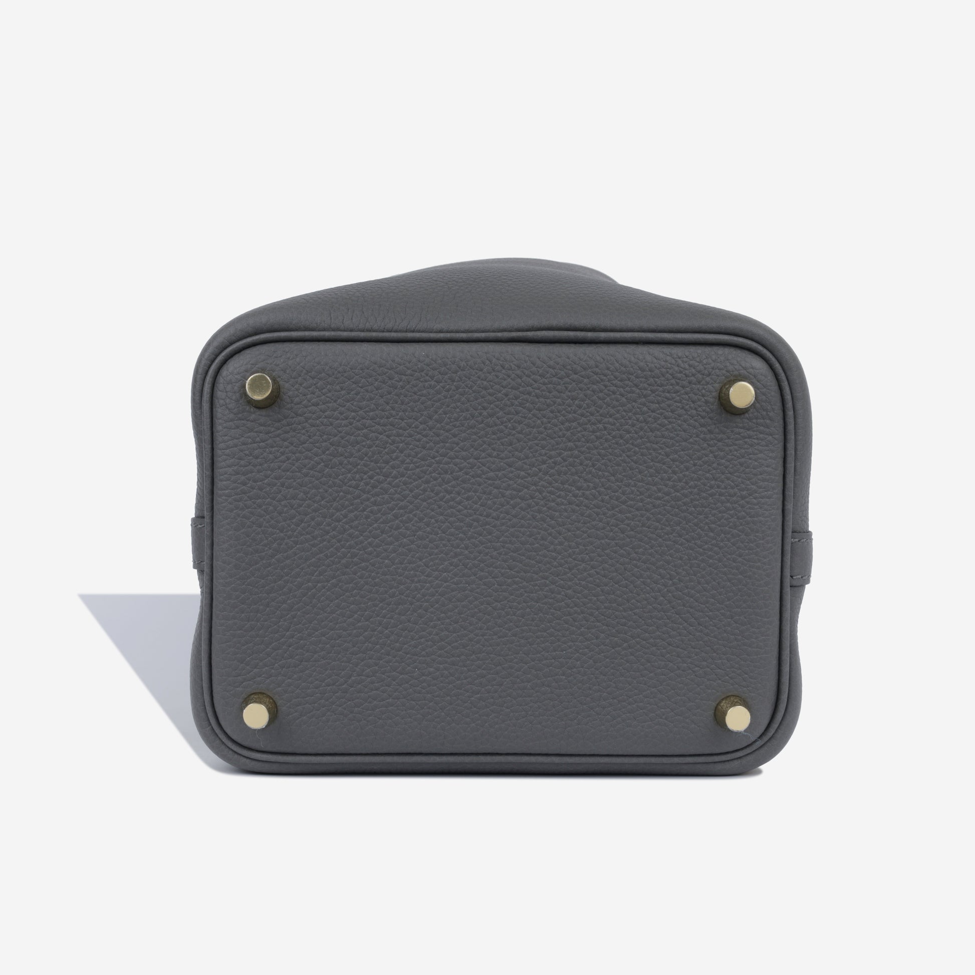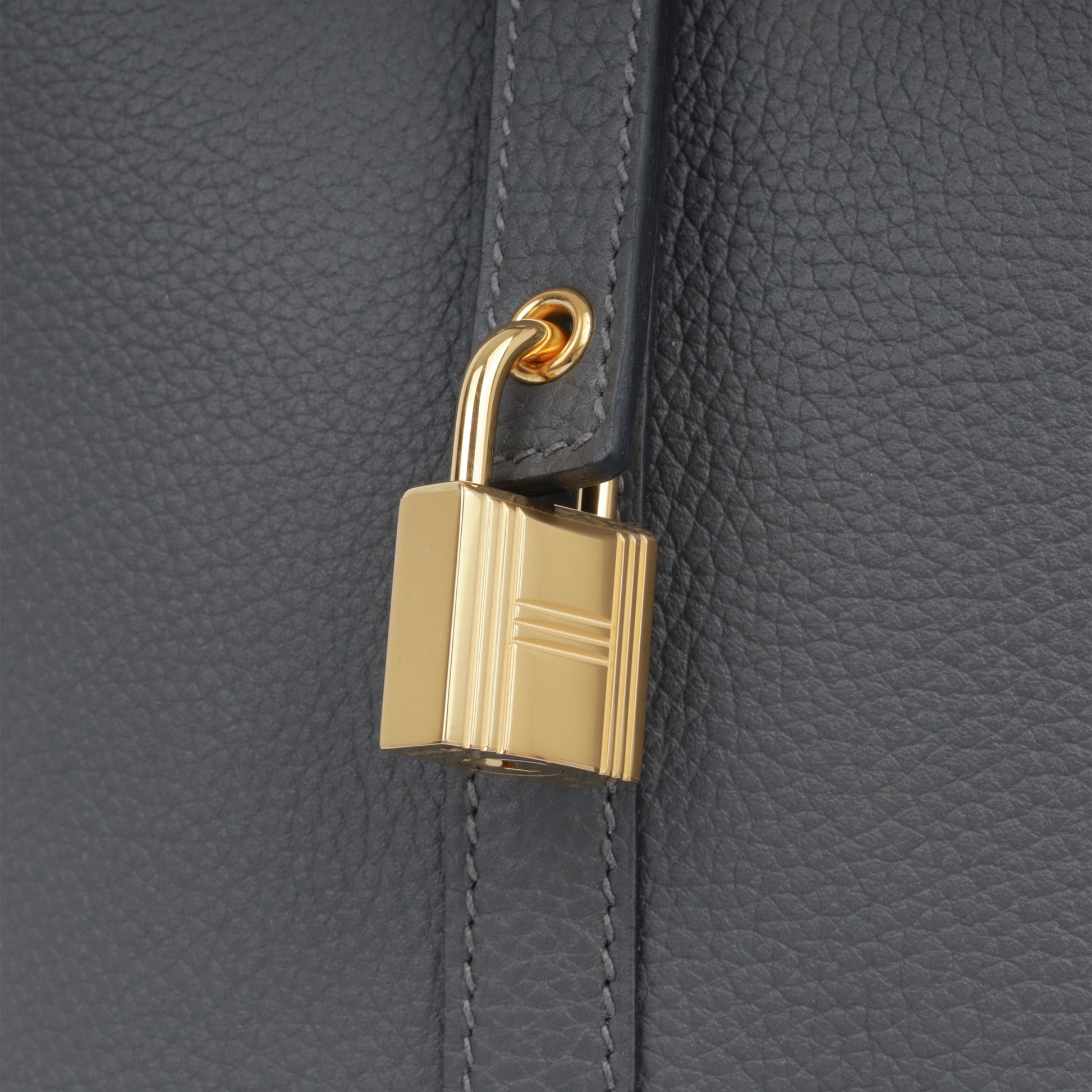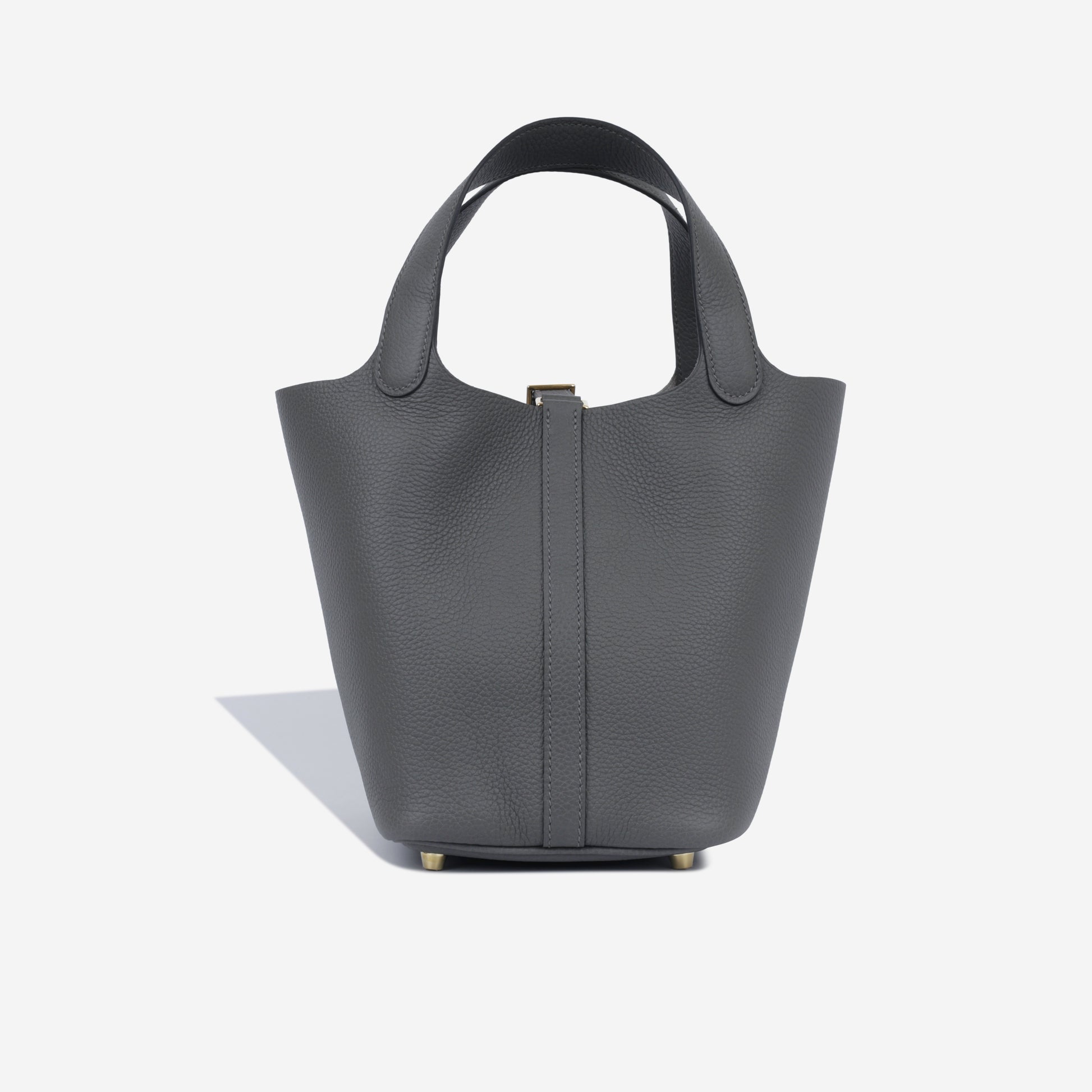 Carefully crafted from supple, Clemence leather, Hermès presents their stunning mini Picotin 18 bag in a beautiful combination of graphite grey Maurice leather and gold tone hardware. Hermès is acclaimed for their leather quality, as well as being at the very top of the fashion hierarchy. Simple, elegant, and understated, each Hermès bag is timeless and tasteful. This bag is no exception. Carry all your everyday essentials in style while remaining sleek and sophisticated. The Picotin lock exudes Hermès classic "if you know, you know" aesthetic.