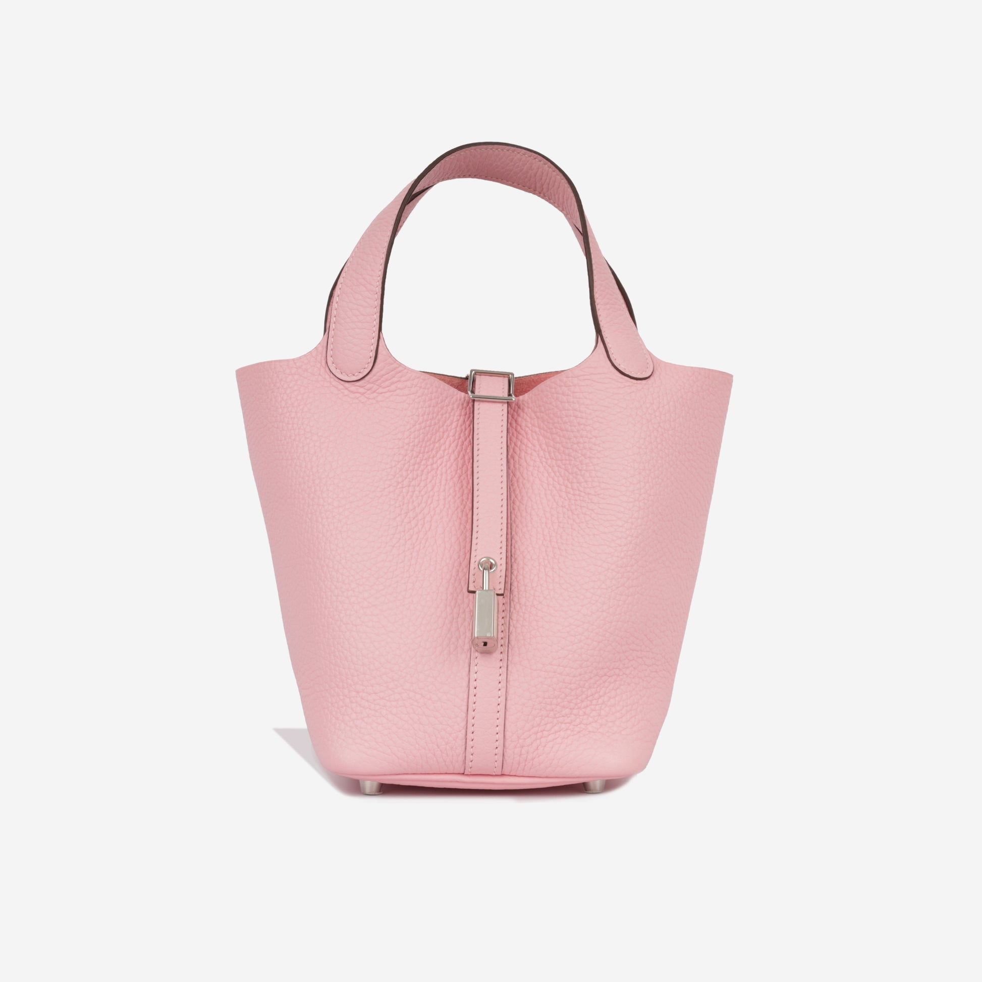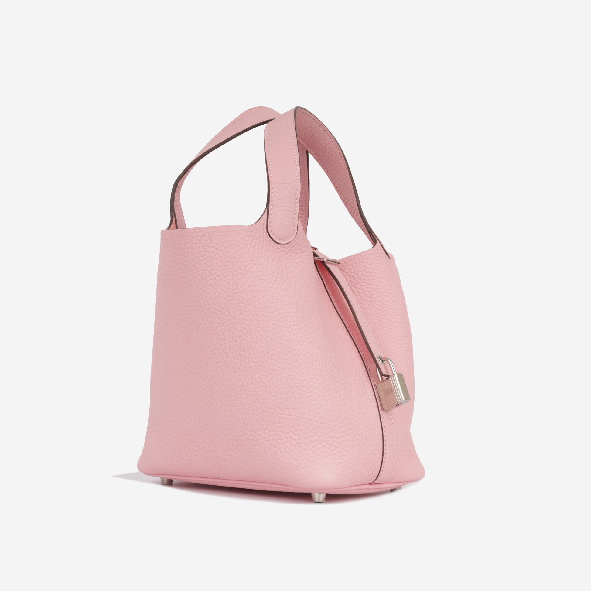 Carefully crafted from supple, textured leather, Hermès presents their stunning mini Picotin 18 bag in a beautiful combination of Rose Sakura leather and Palladium hardware. Hermès is acclaimed for their leather quality, as well as being at the very top of the fashion hierarchy. Simple, elegant, and understated, each Hermès bag is timeless and tasteful. This bag is no exception.